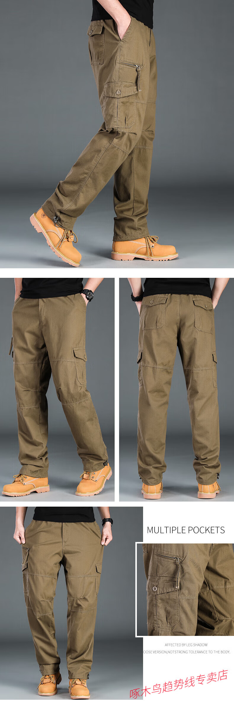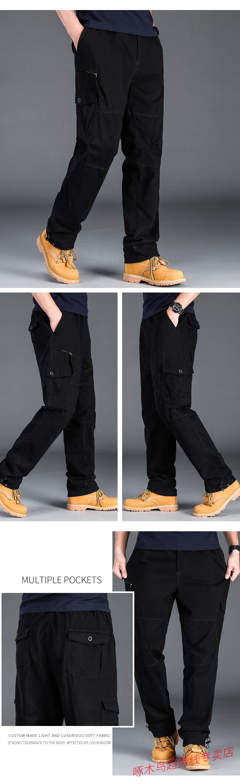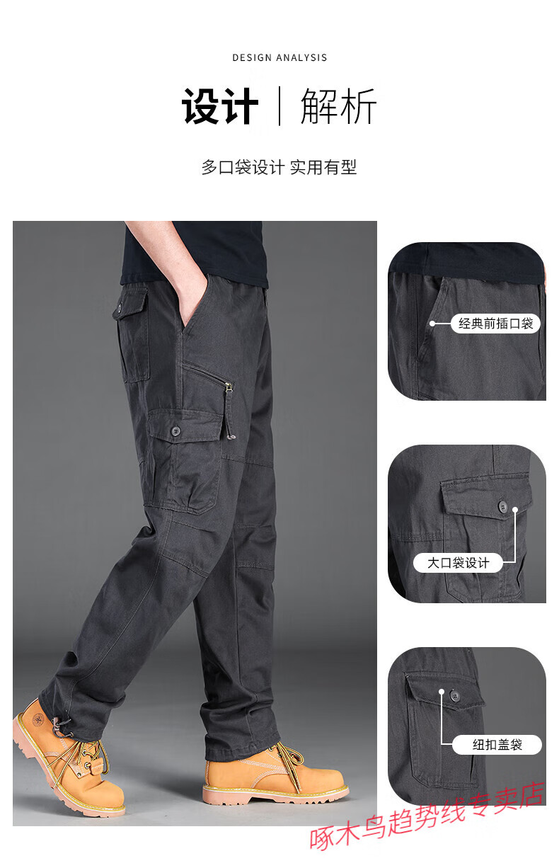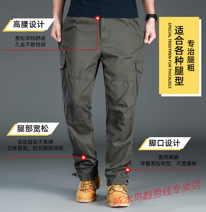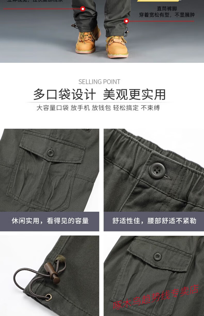 Woodpecker autumn and winter wear-resistant overalls men's cotton casual pants outdoor sports pants multi-pocket work pants labor protection trousers dark green pure cotton wear-resistant XL 150~170Jin Jin equals 0.5 kg