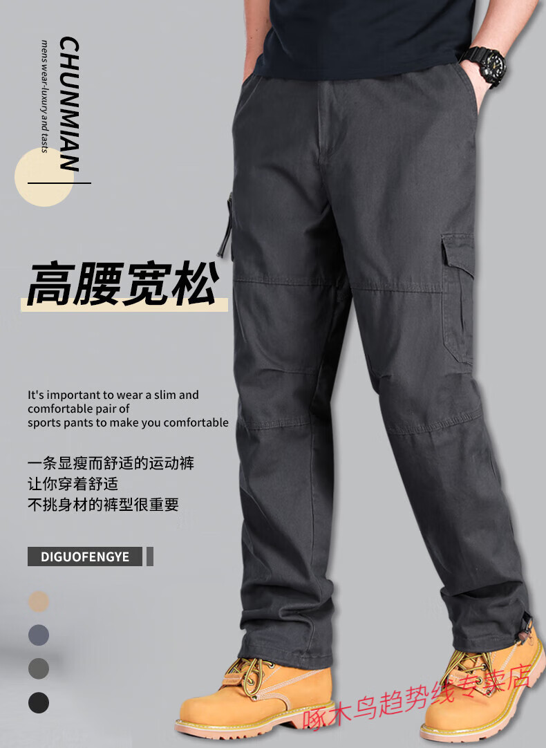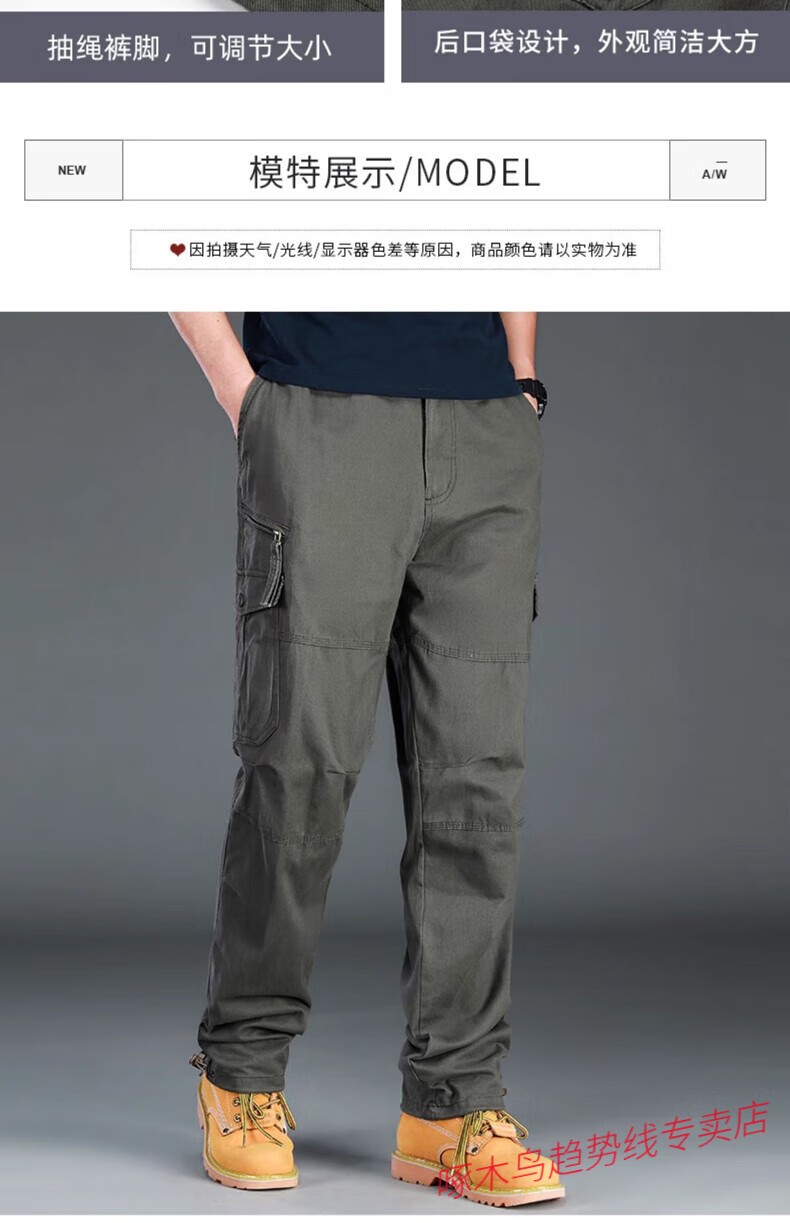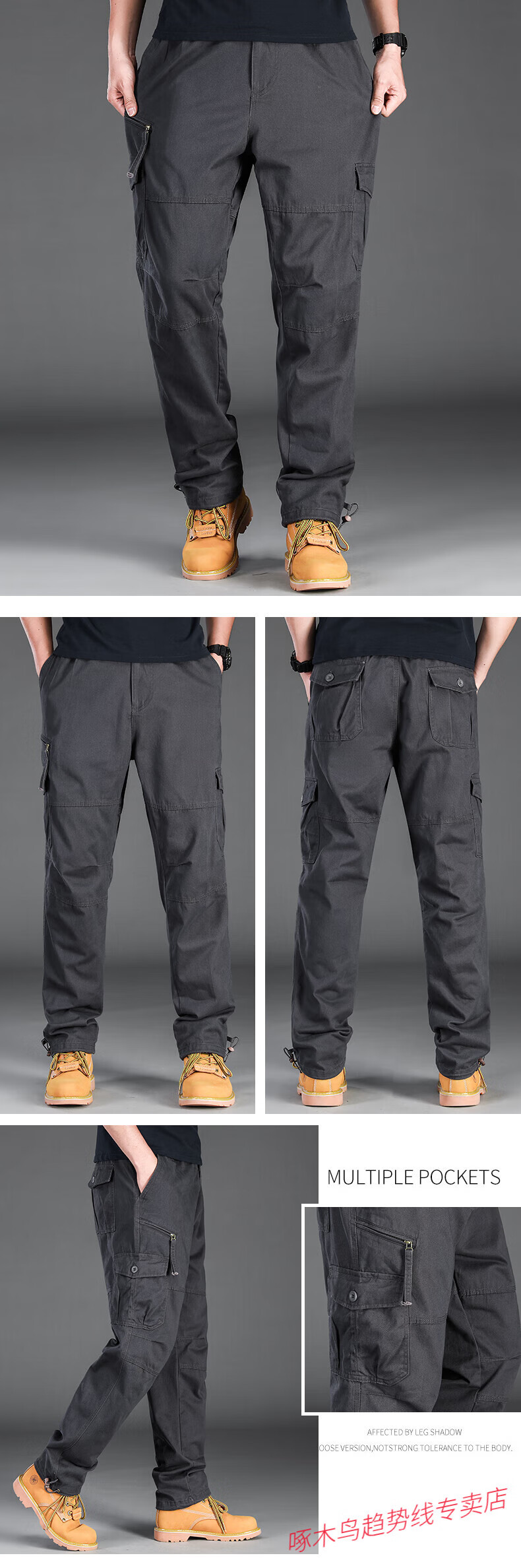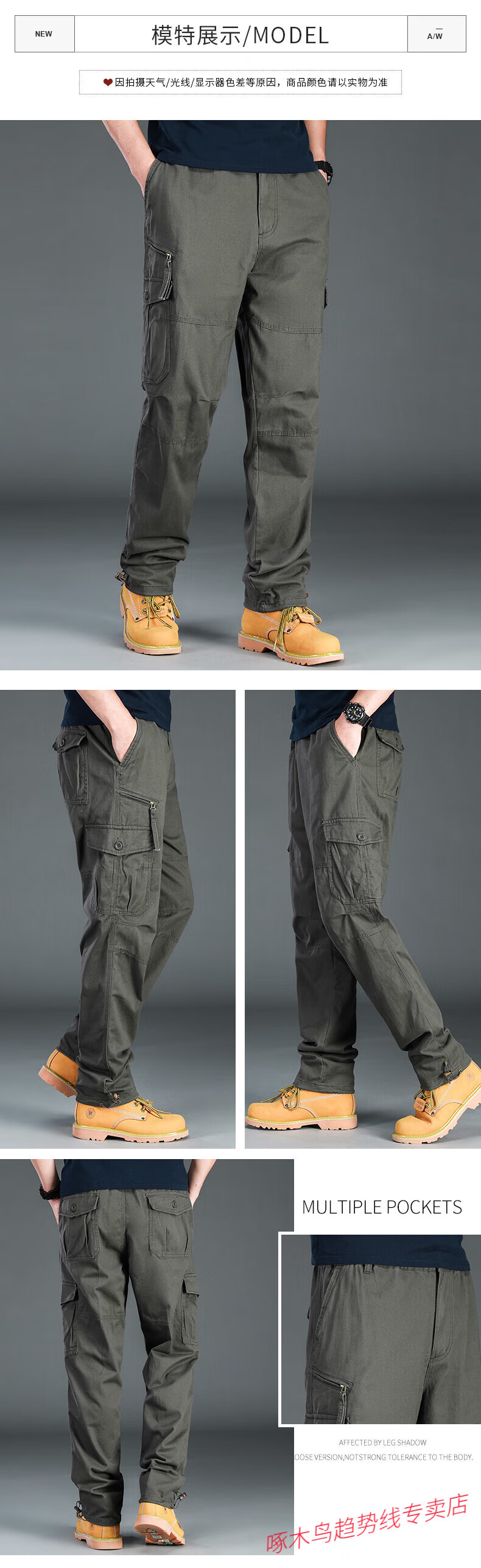 Woodpecker autumn and winter wear-resistant overalls men's cotton casual pants outdoor sports pants multi-pocket work pants labor protection trousers dark green pure cotton wear-resistant XL 150~170Jin Jin equals 0.5 kg