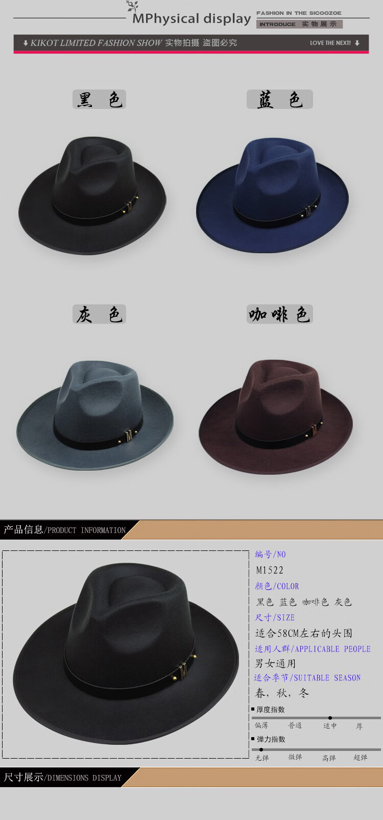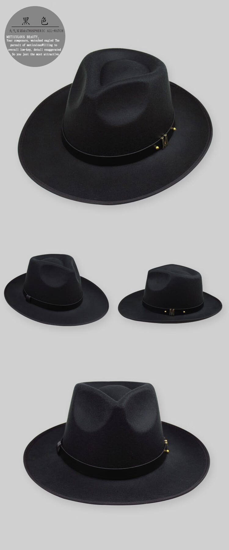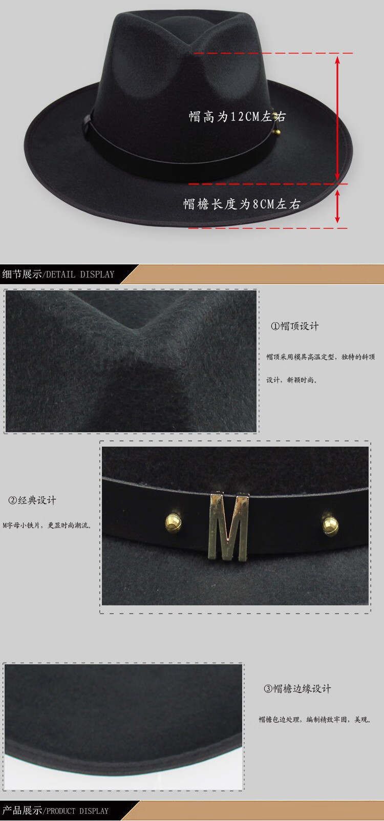 Kuiying top hat men's Shanghai beach hat Xu Wenqiang's same style British top hat groom's official hat classic wool felt hat black M (56-58cm)