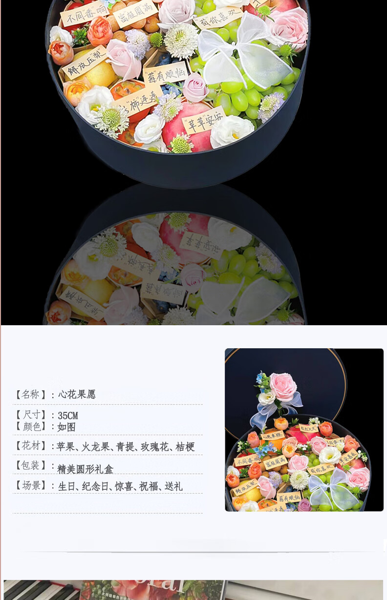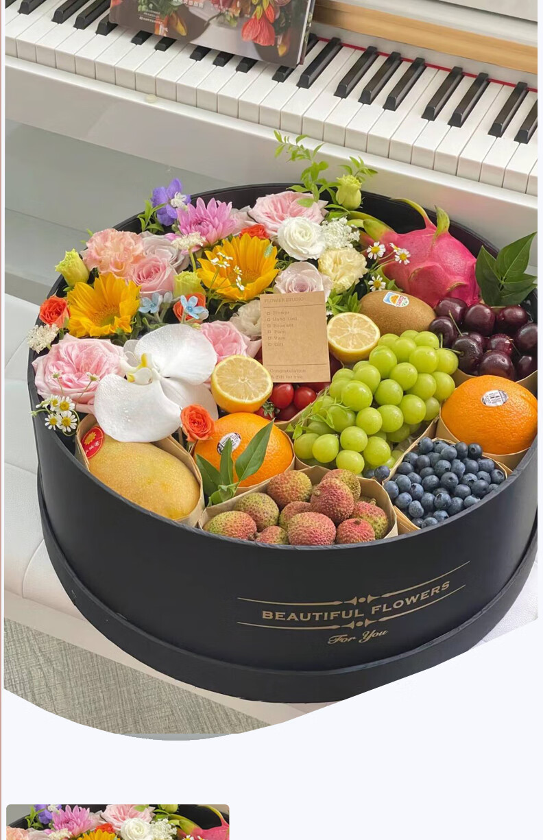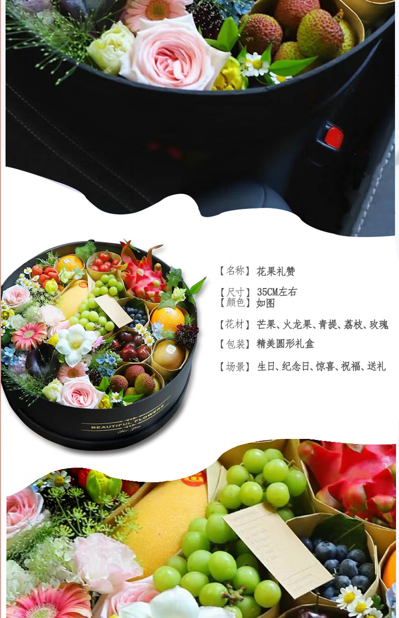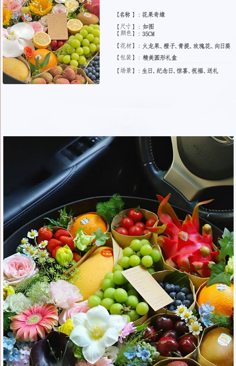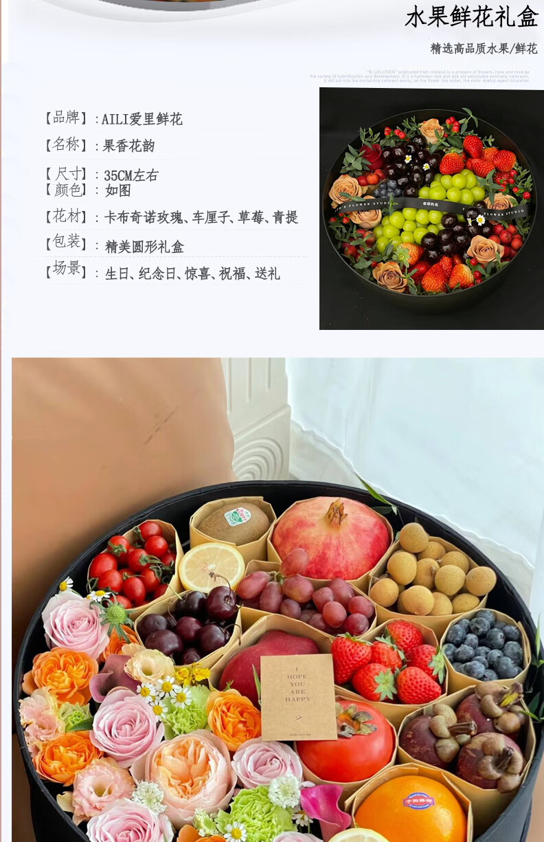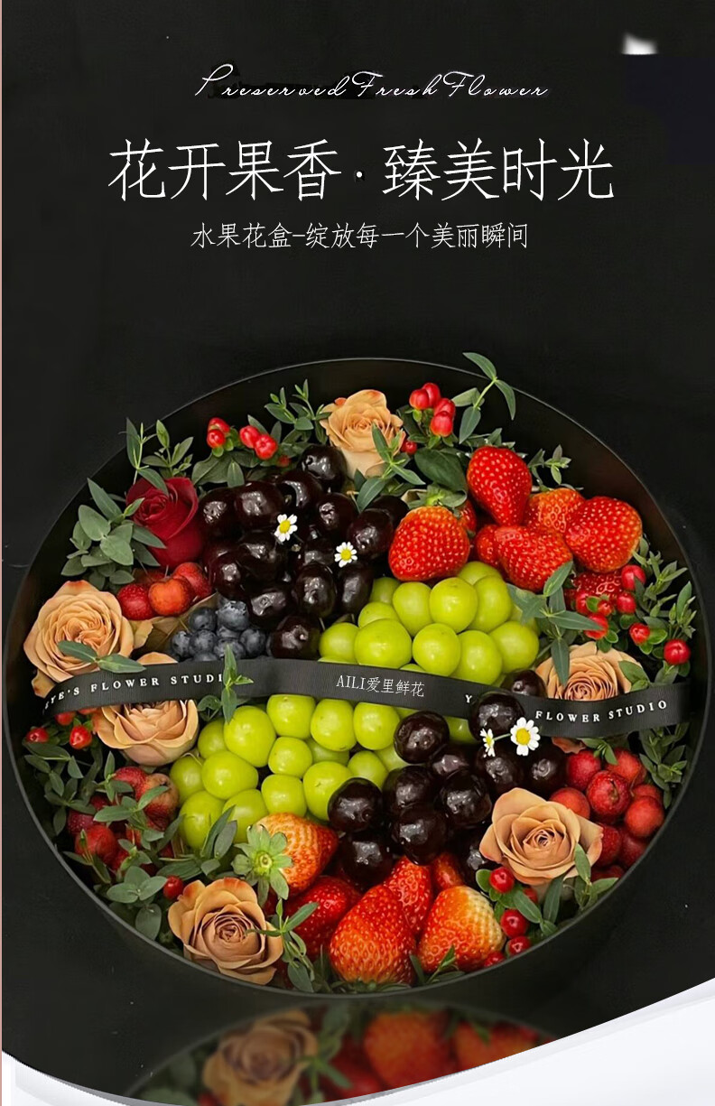 Airi Flowers and Fruits Gift Box French Fruit Gift Box Fruit Basket City Express Delivery Birthday Gifts for Elders Wife and Girlfriend Flower and Fruit Fate Green Grape Apple Persimmon Longan Pitaya Fruit Flower Gift Box
