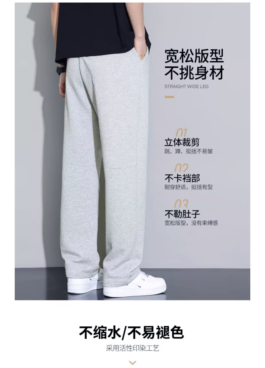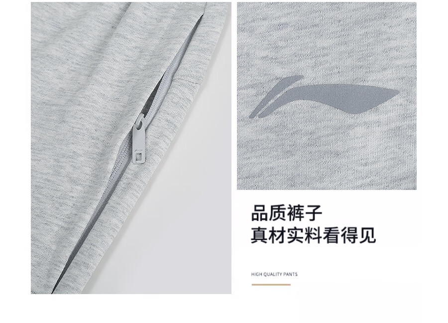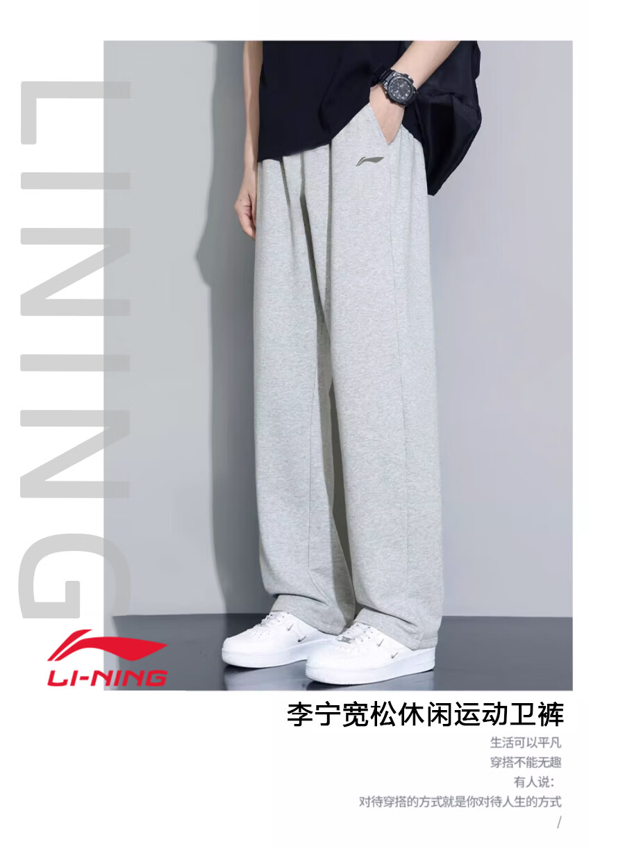 Li Ning (LI-NING) sports pants and sweatpants men's trousers spring and autumn new straight cotton loose flat casual large size casual running women light gray (flat straight pants + cotton skin-friendly) XL