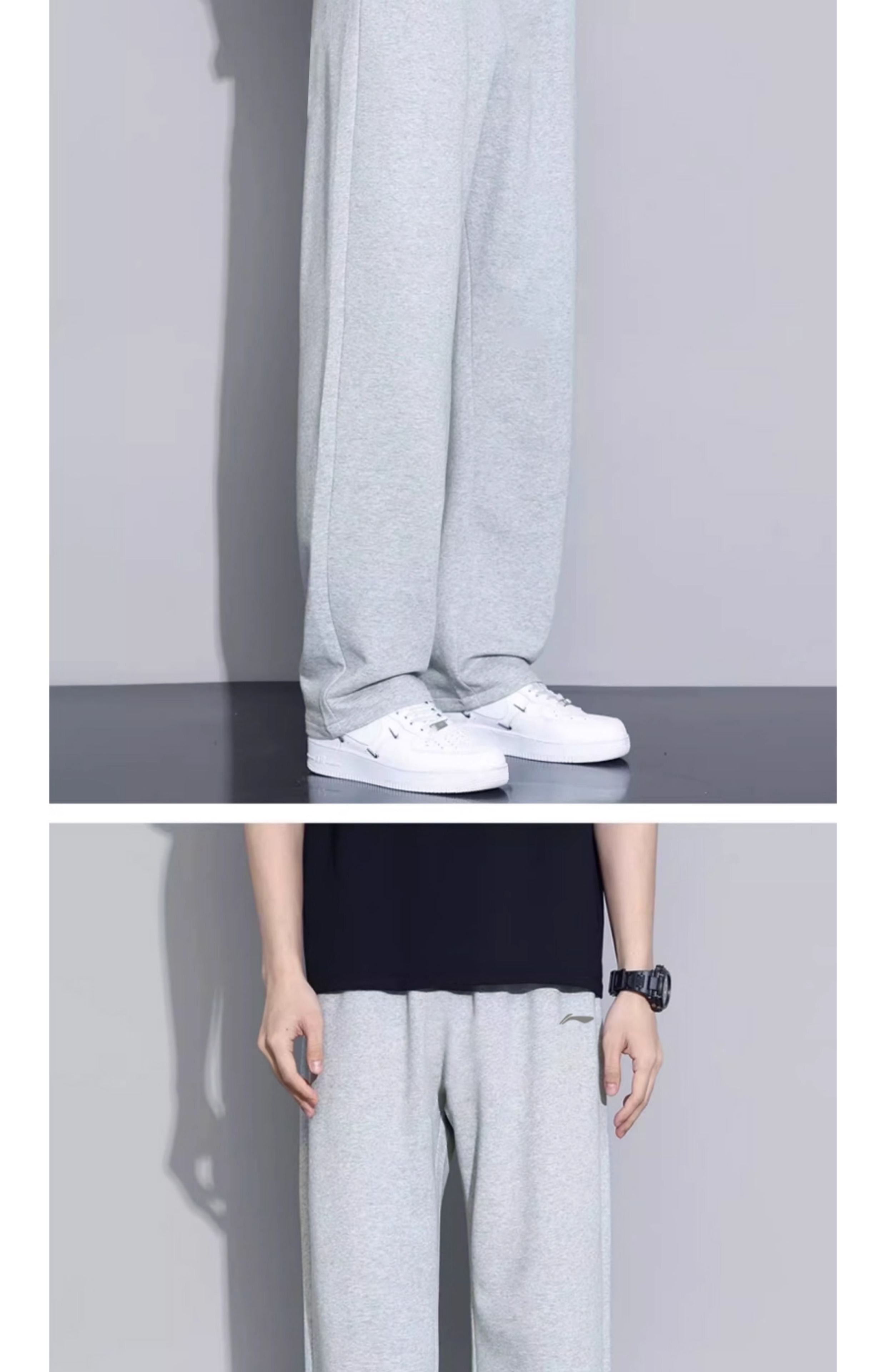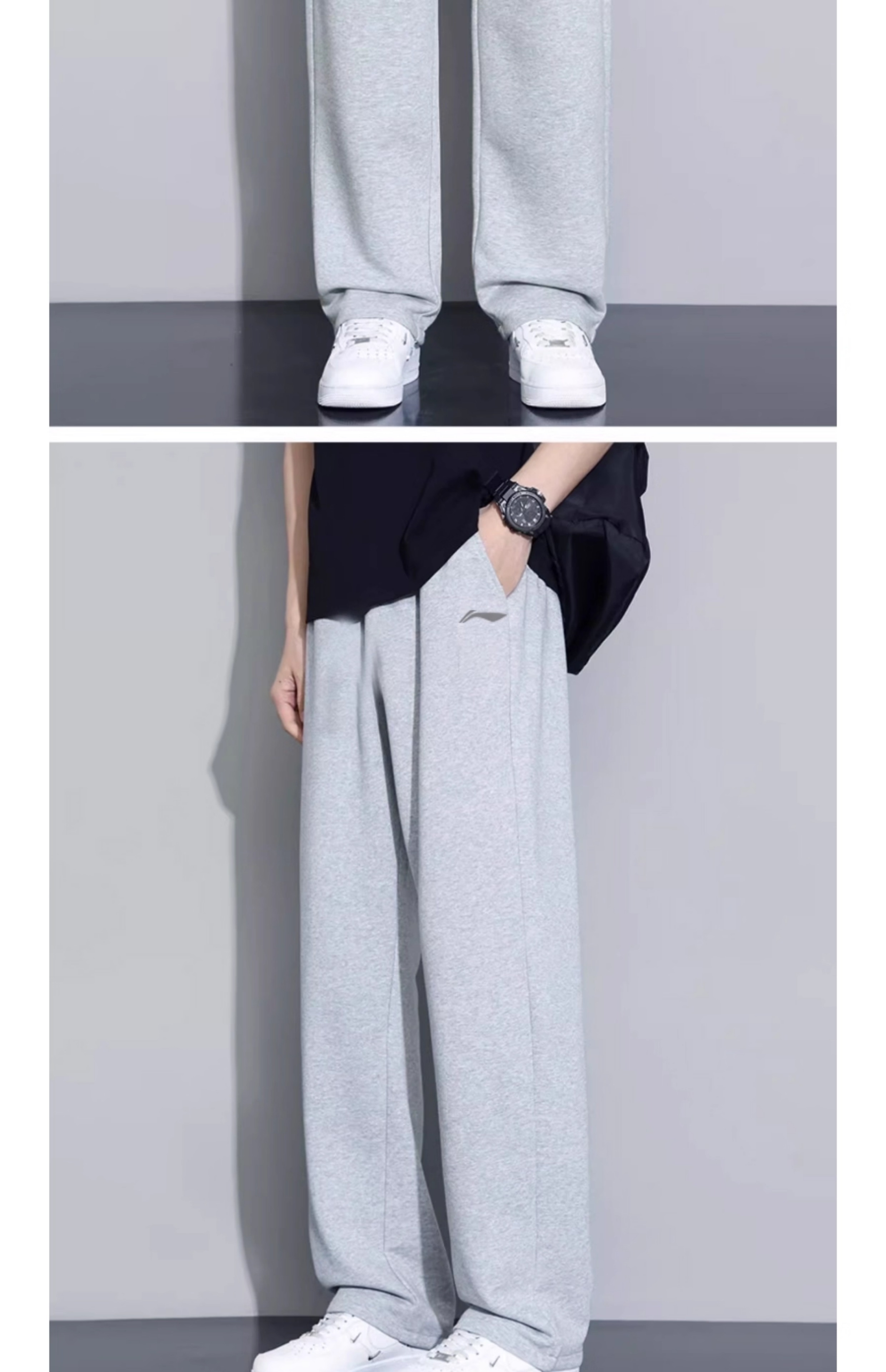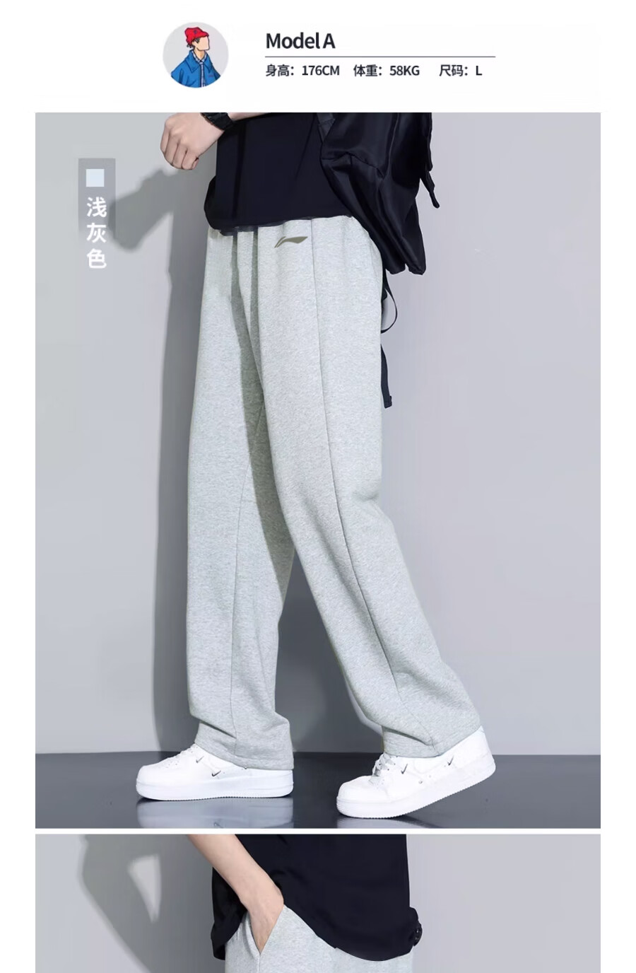 Li Ning (LI-NING) sports pants and sweatpants men's trousers spring and autumn new straight cotton loose flat casual large size casual running women light gray (flat straight pants + cotton skin-friendly) XL