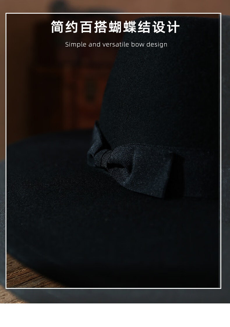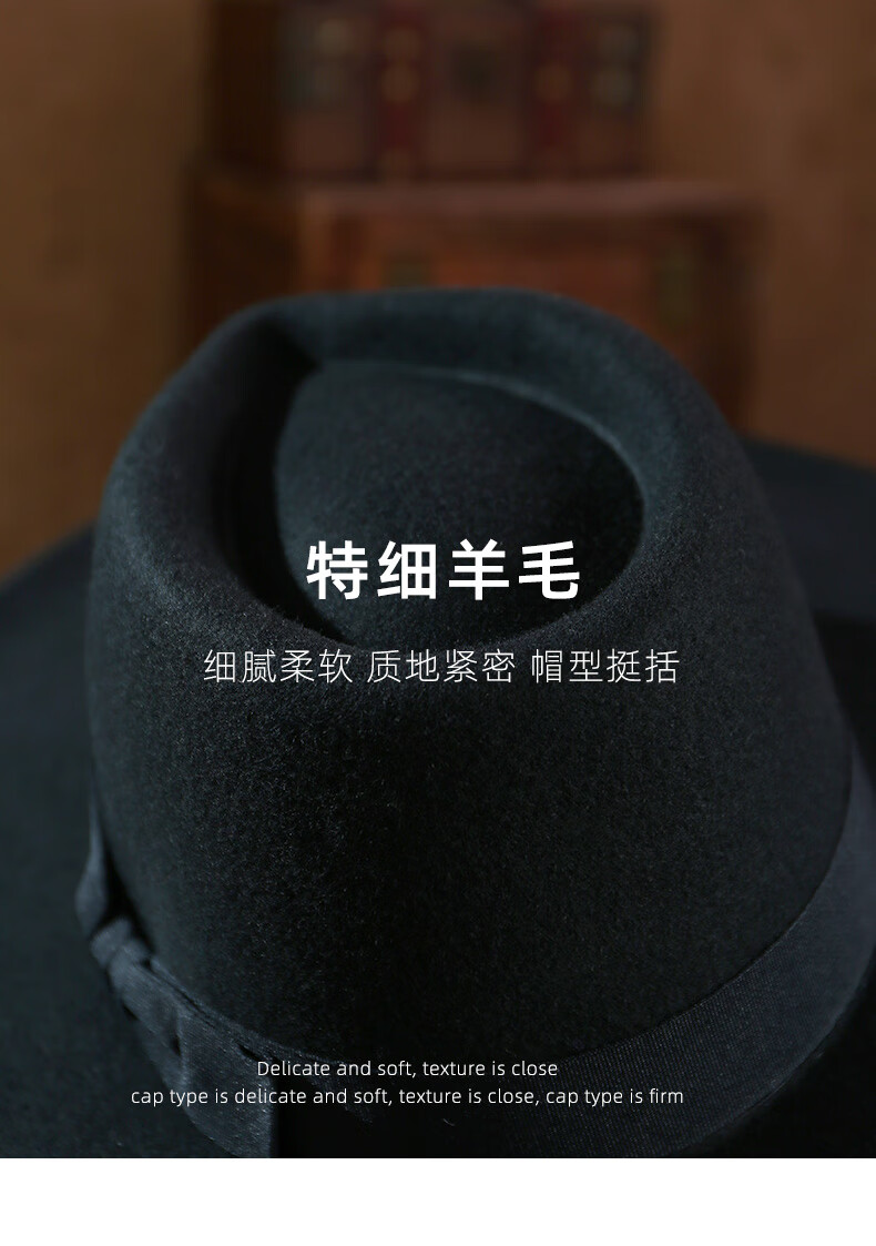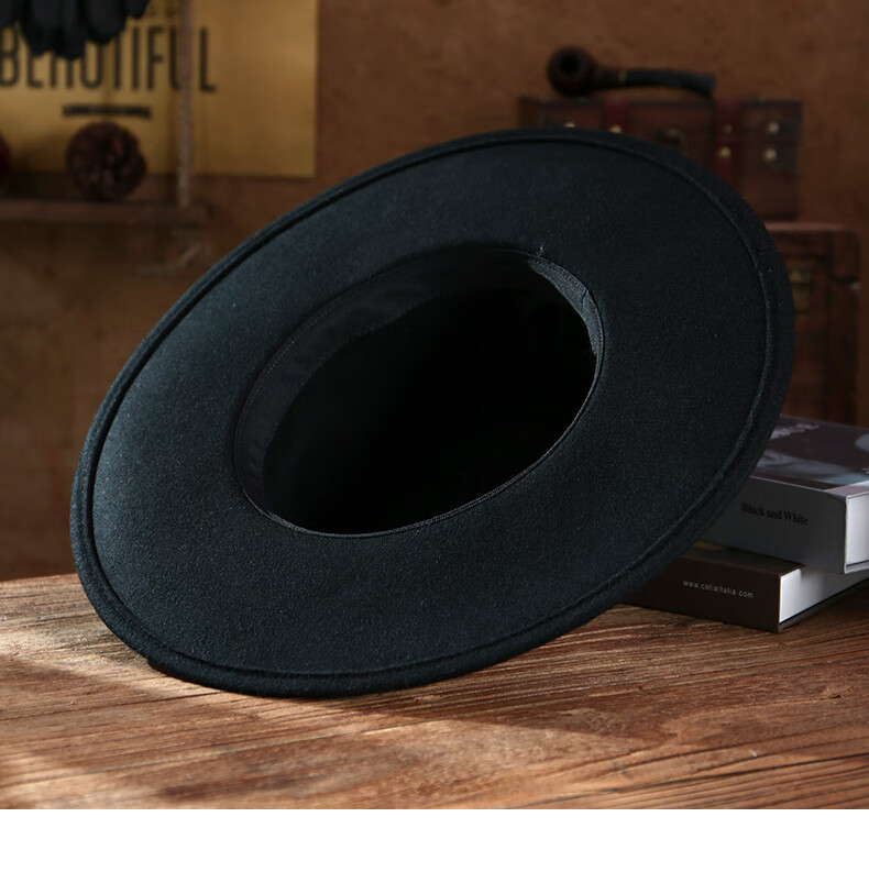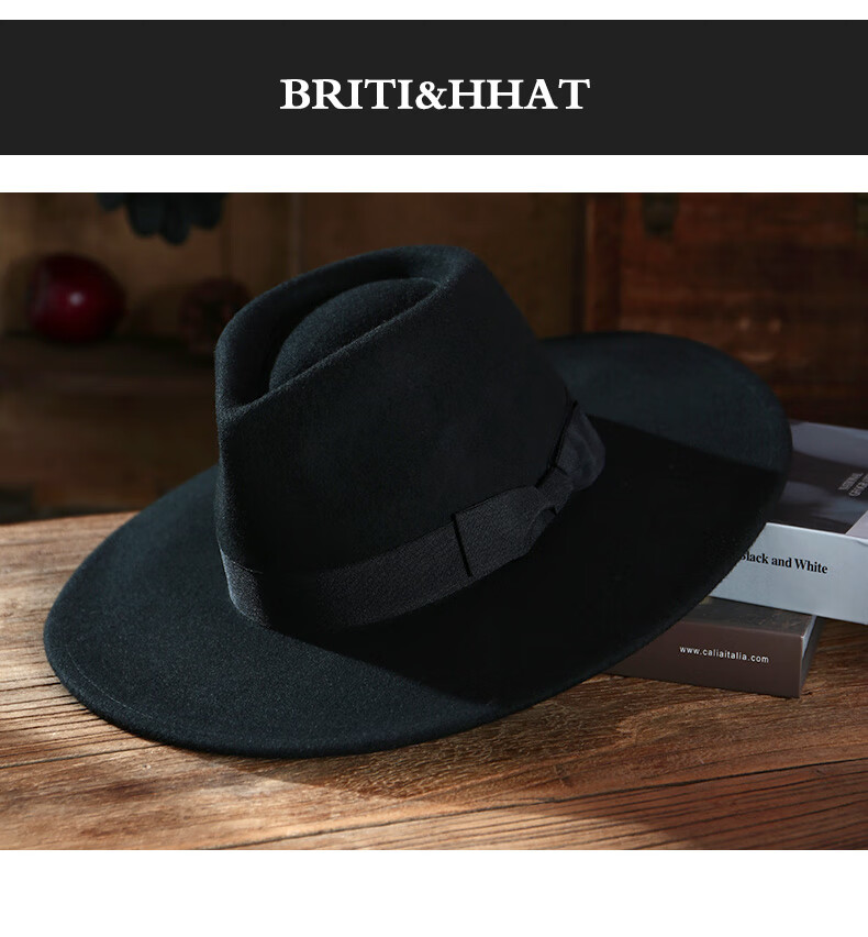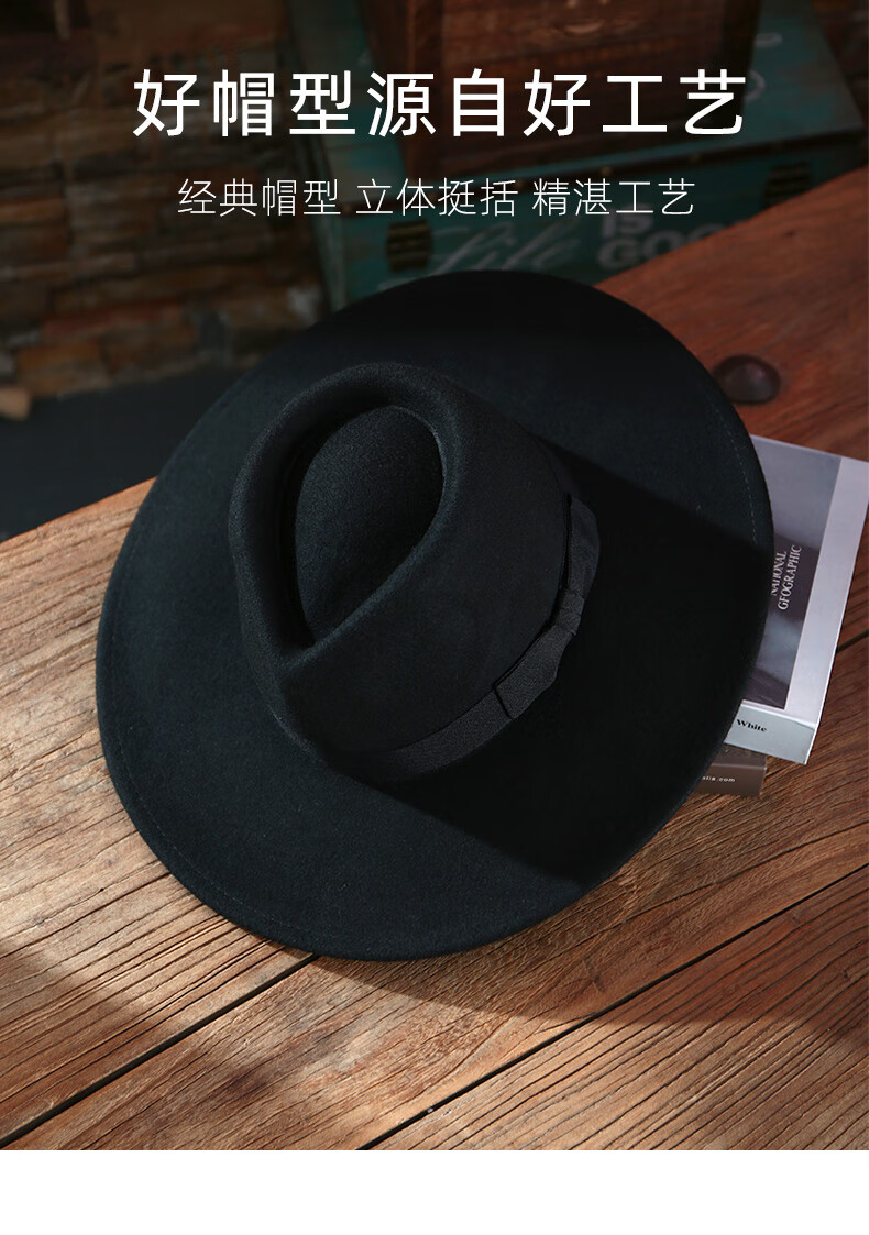 Kui Ying Oppenheimer hat same style big brim gentleman British retro wool Panama hat wide brim suit jazz hat classic black M (56-58cm suitable for 85% of head circumference)