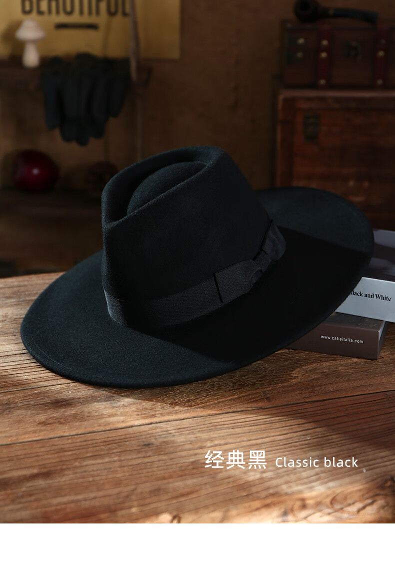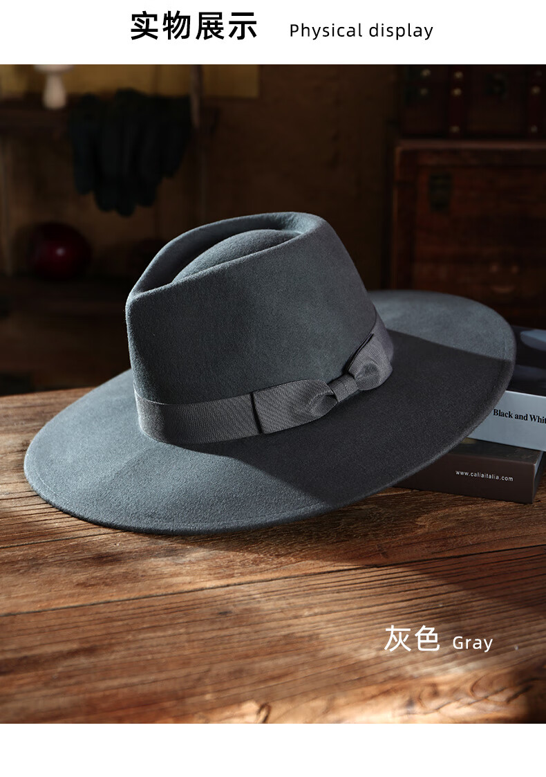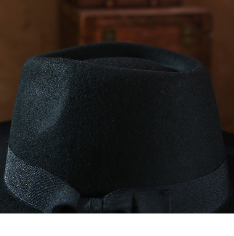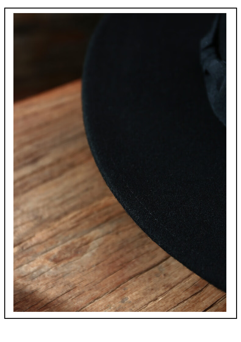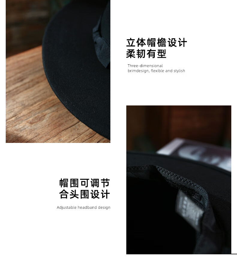 Kui Ying Oppenheimer hat same style big brim gentleman British retro wool Panama hat wide brim suit jazz hat classic black M (56-58cm suitable for 85% of head circumference)