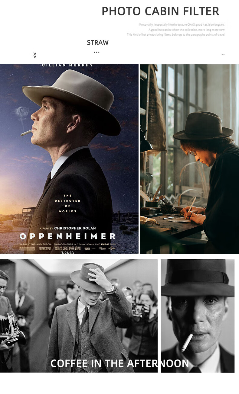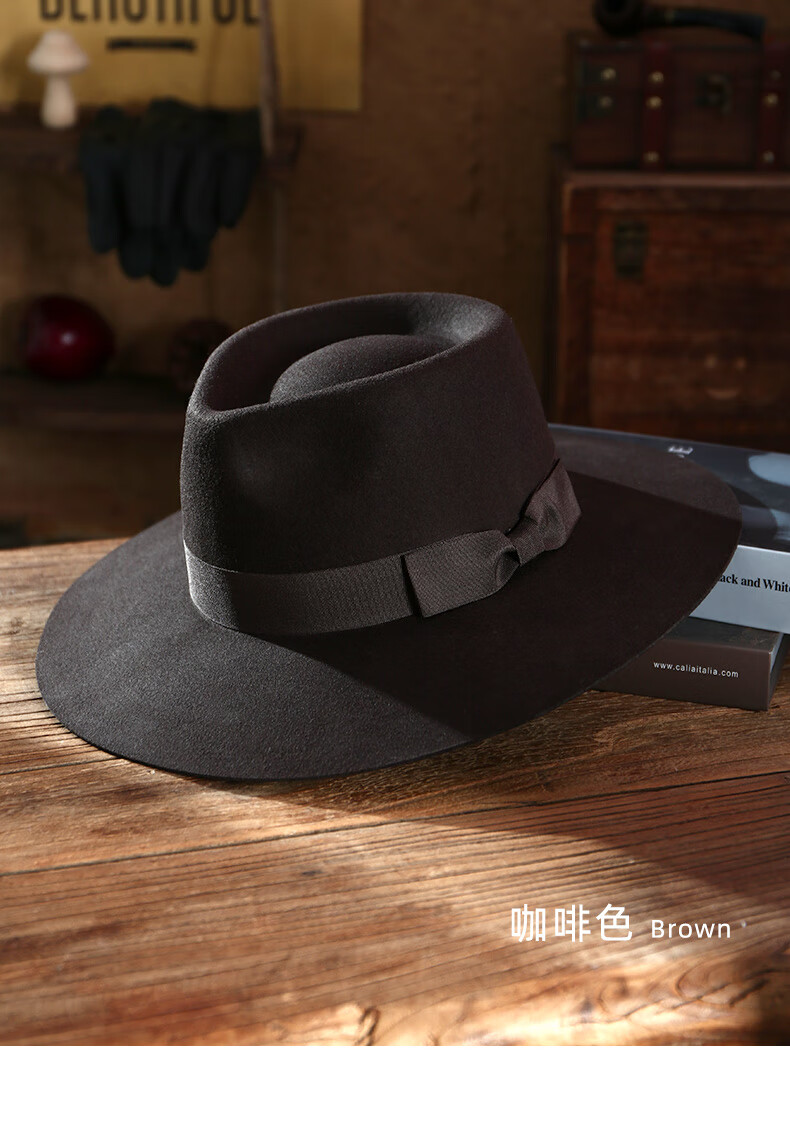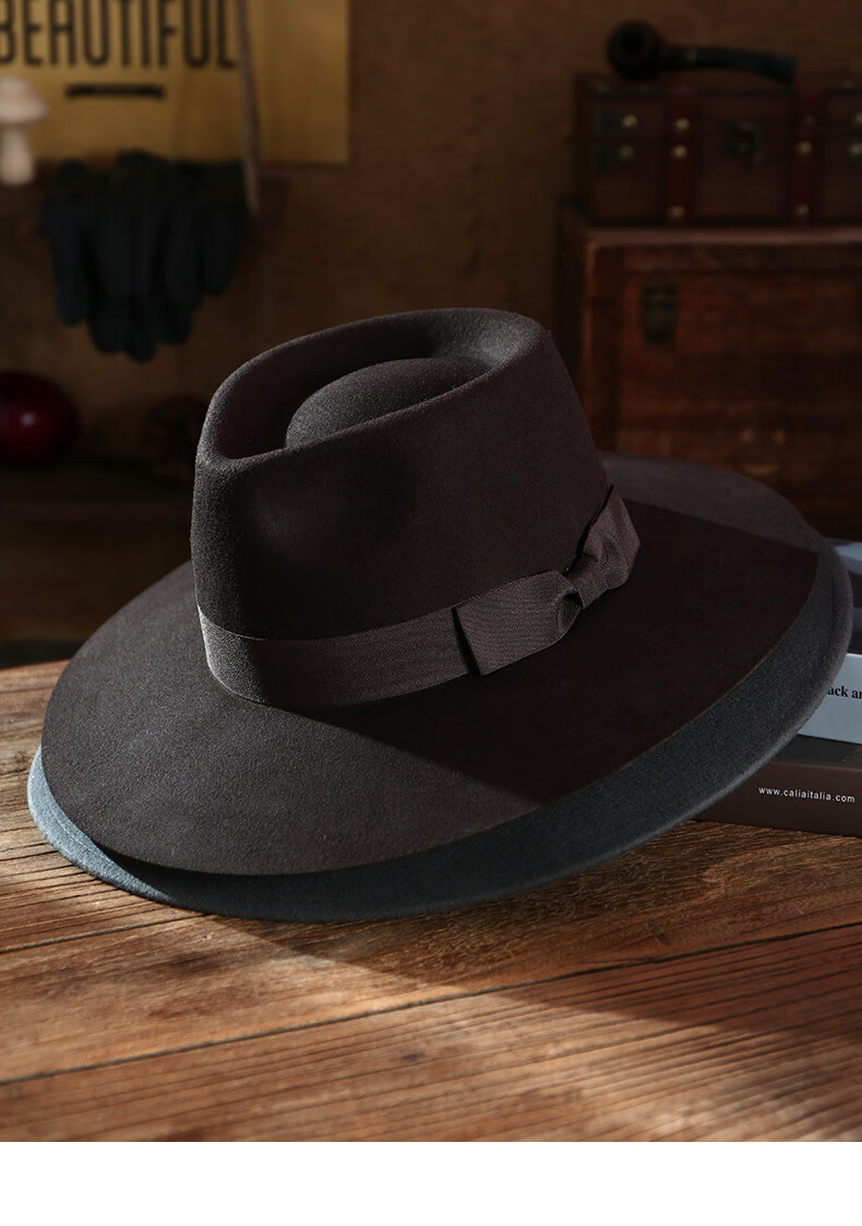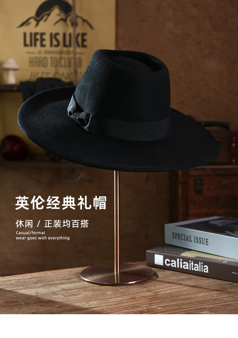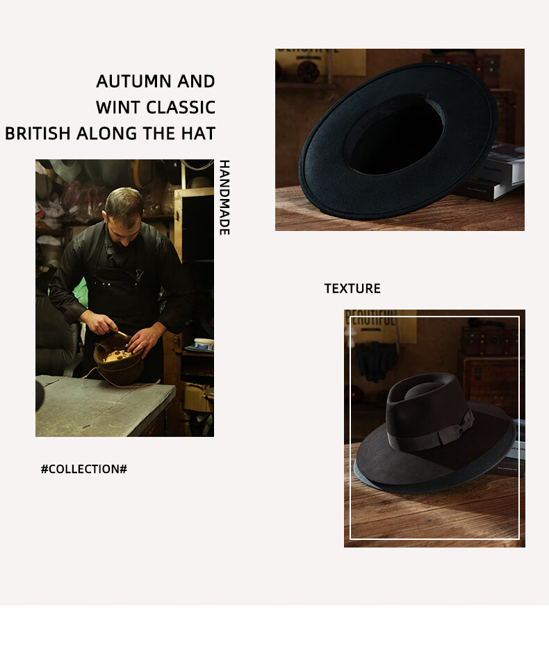 Kui Ying Oppenheimer hat same style big brim gentleman British retro wool Panama hat wide brim suit jazz hat classic black M (56-58cm suitable for 85% of head circumference)