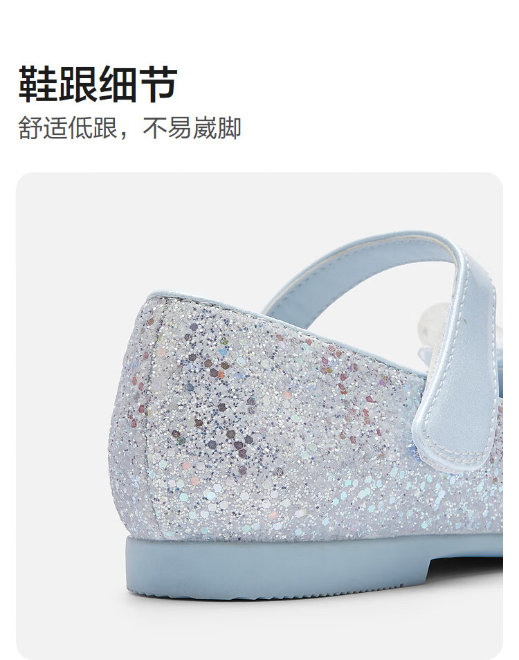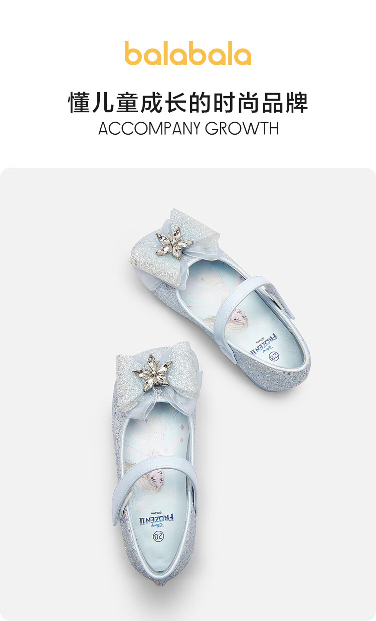 Balabala Aisha IP children's shoes children's princess shoes Disney shoes girls performance shoes spring and autumn sweet smoke gray silver 20301 28