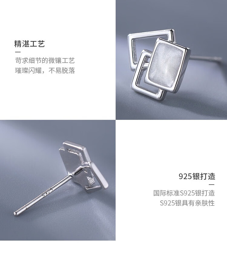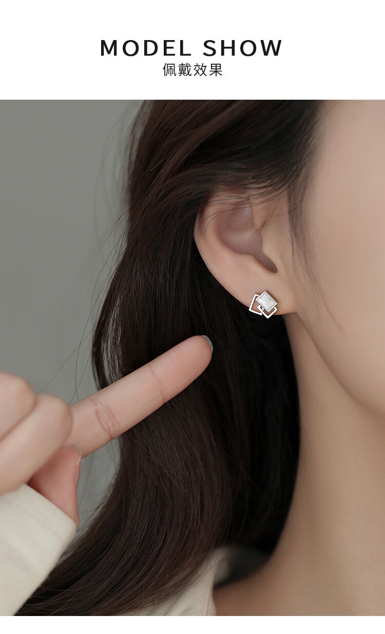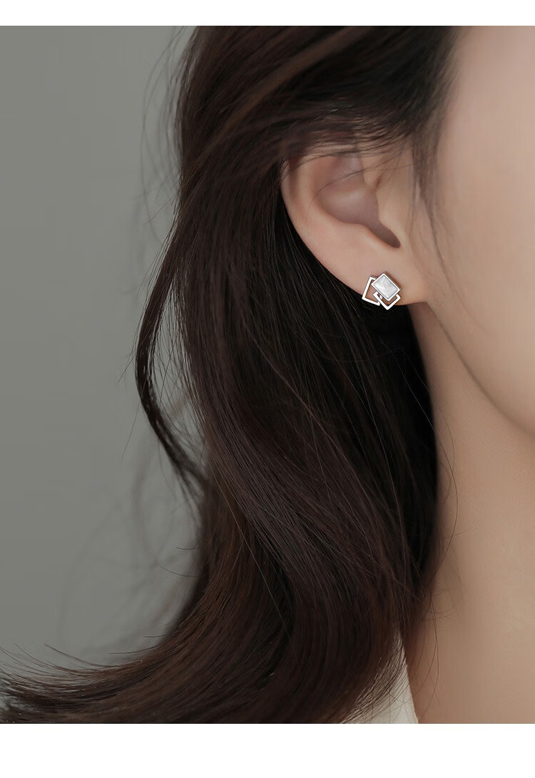 Holycat cat in arms s925 silver geometric square earrings girl birthday Valentine's Day gift earrings cool style high-end earrings for girlfriend 925 silver geometric square earrings