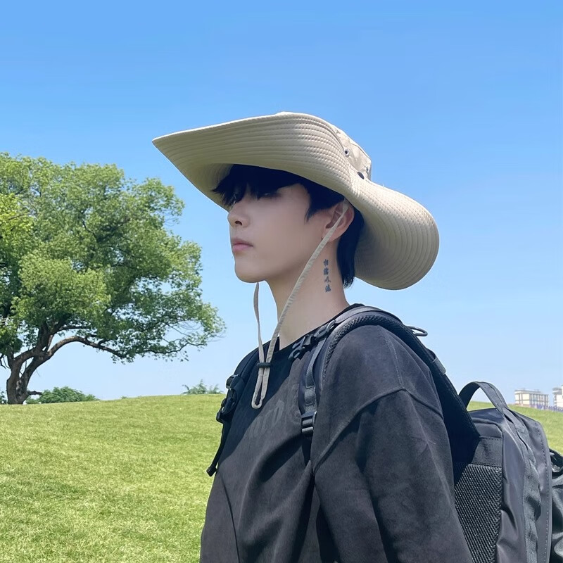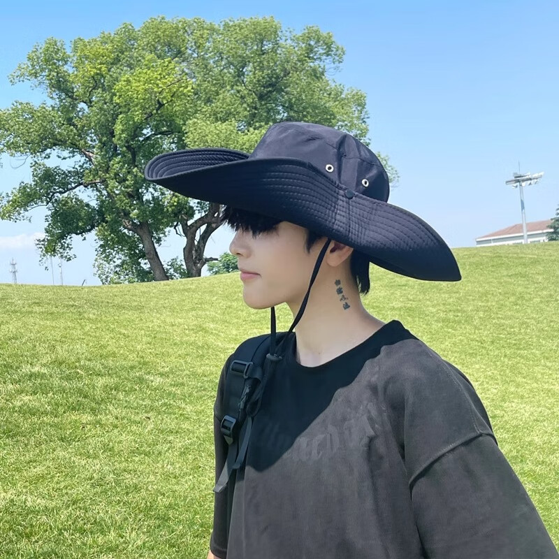 Memaru summer outdoor sun hat men's sun hat sun hat large brim mountaineering hat fishing fisherman hat men's khaki