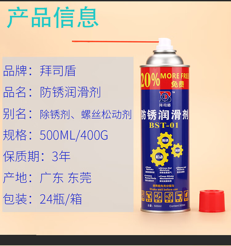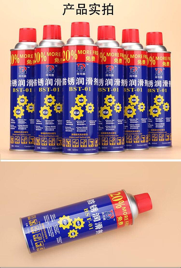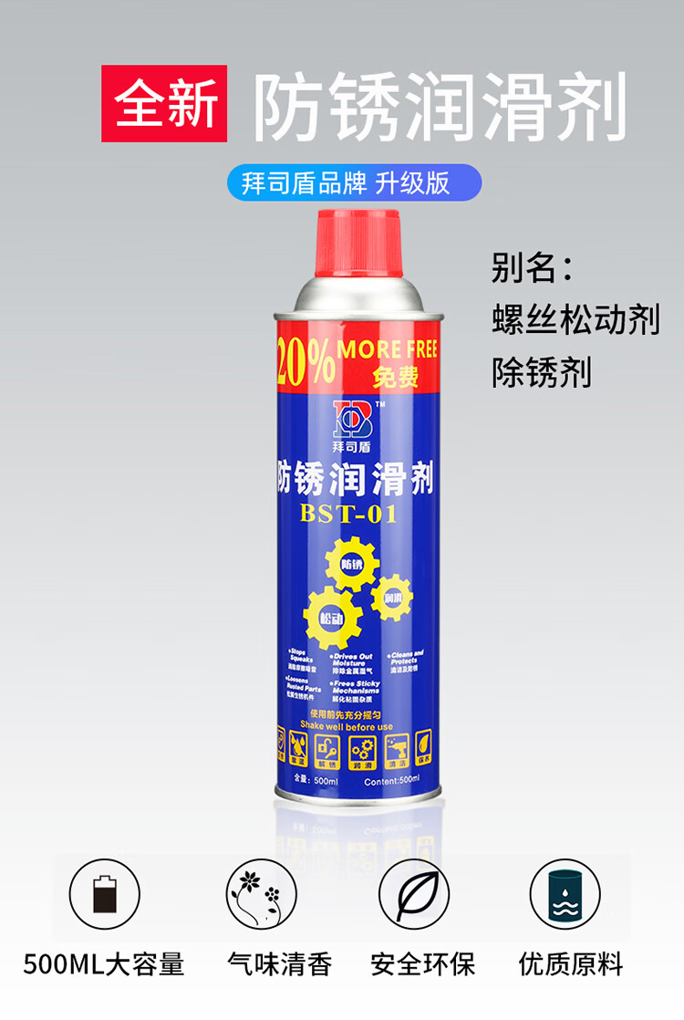 Baishi shield rust remover, anti-rust lubricant, multi-functional dehumidification and anti-show oil, rust remover and loosening agent 500ml 1 bottle