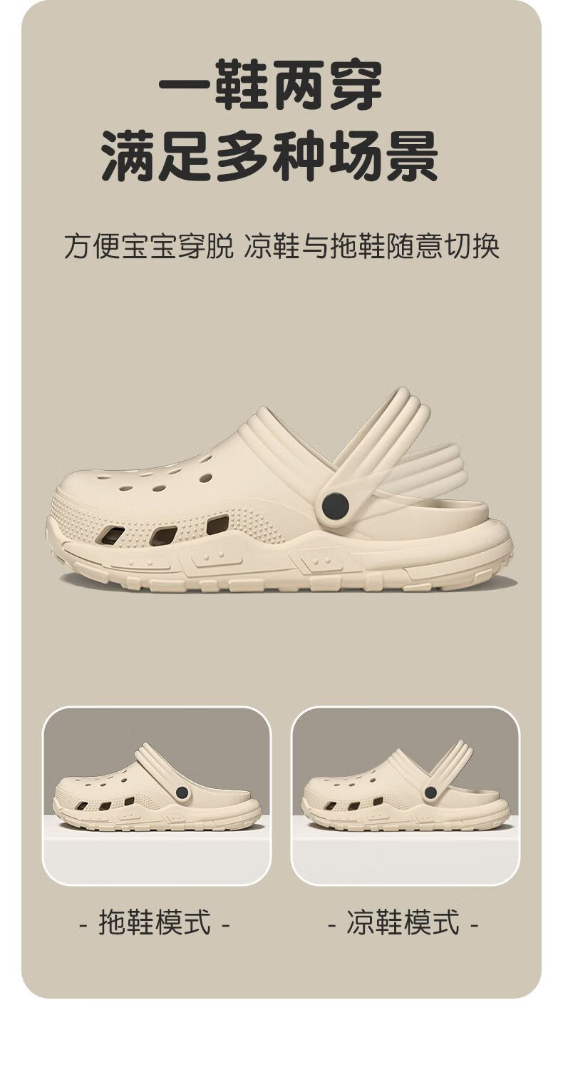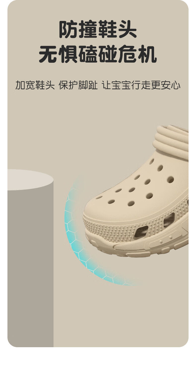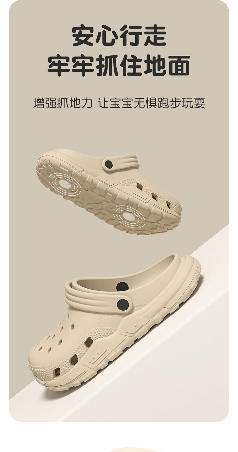 Gongmao children's Crocs for boys and girls in summer, non-slip toe-toe slippers for girls, beige, long-legged briquettes, size 34-35, inner length 22cm