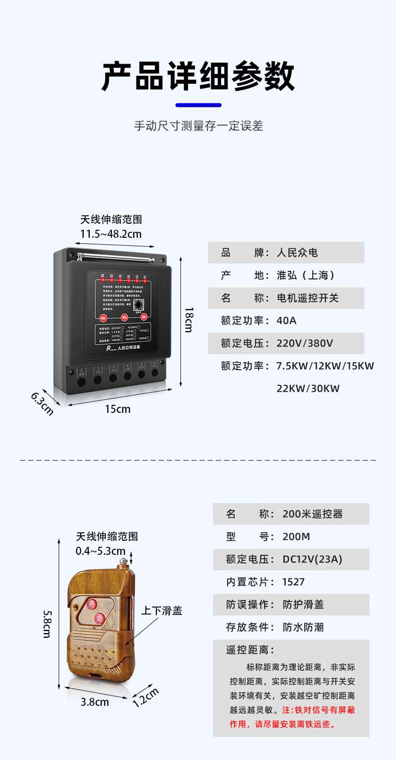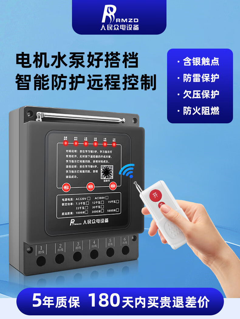 Shanghai People's 380V lightning protection ground three-phase remote control switch water pump motor wireless remote control lightning protection interference three thousand meters 380V three-phase 7.5 kilowatts