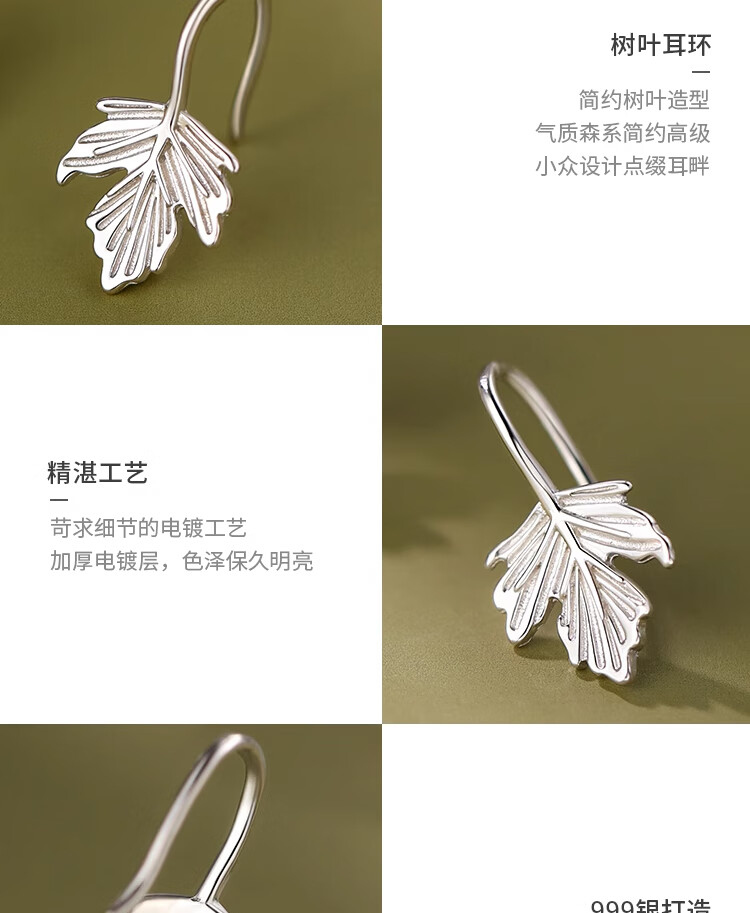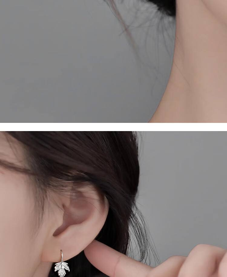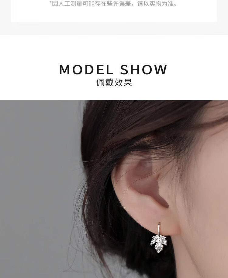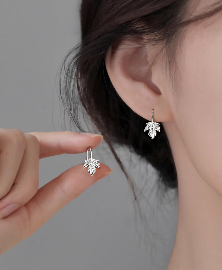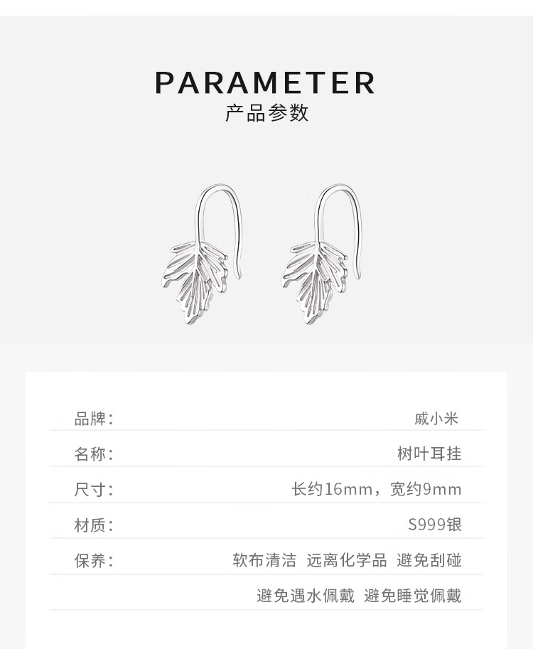 Qi Xiaomi s999 Pure Silver Maple Leaf Earrings Women's Ear Piercing Earrings Light Luxury 2025 New Earrings Niche High-end Earrings for Women 999 Silver Maple Leaf Earrings (1 Price)