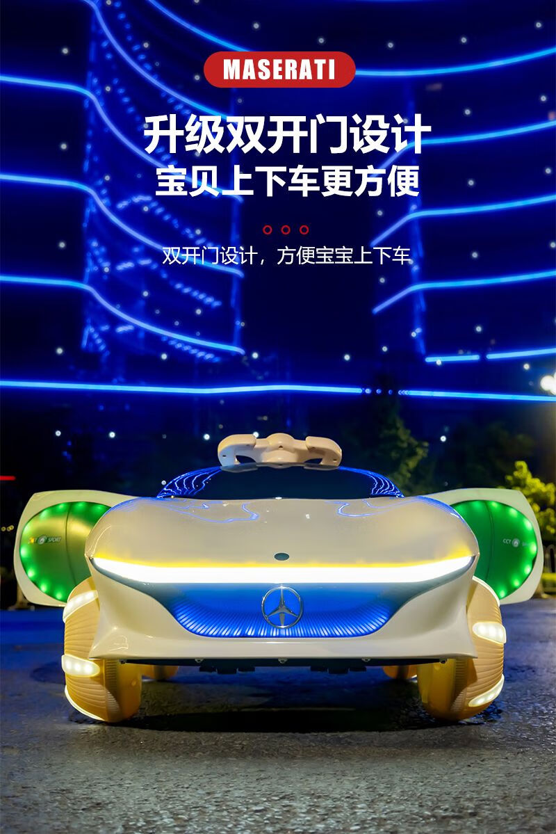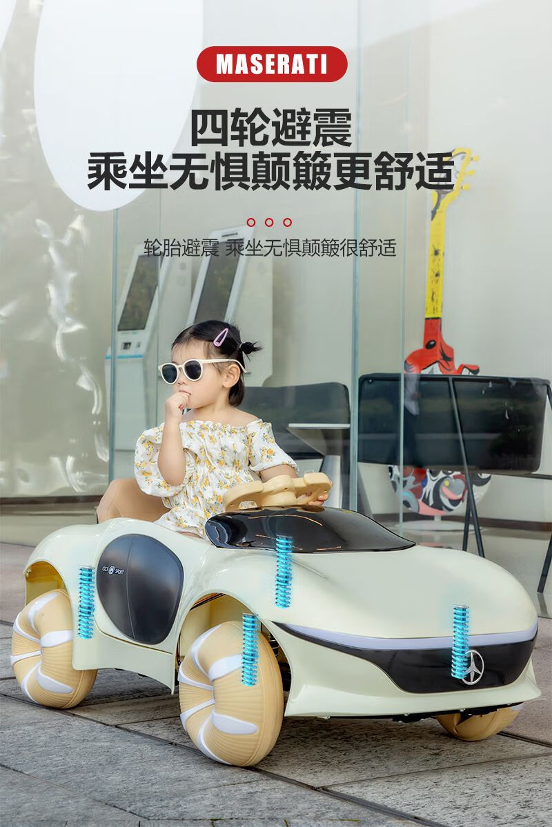 Chichengtong children's electric car four-wheeled remote control car with swing baby toy child's first birthday gift off-white dual-drive remote control wheel light