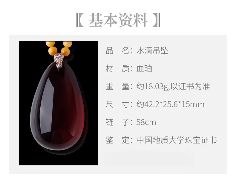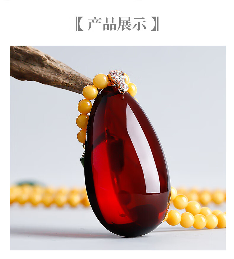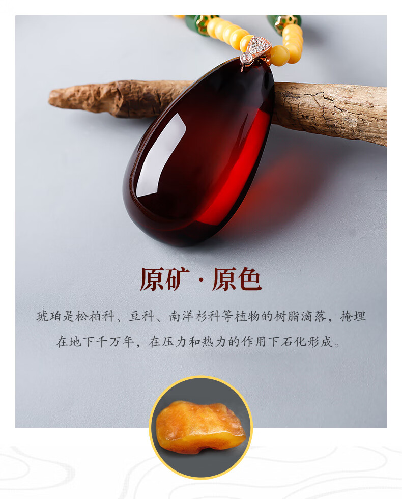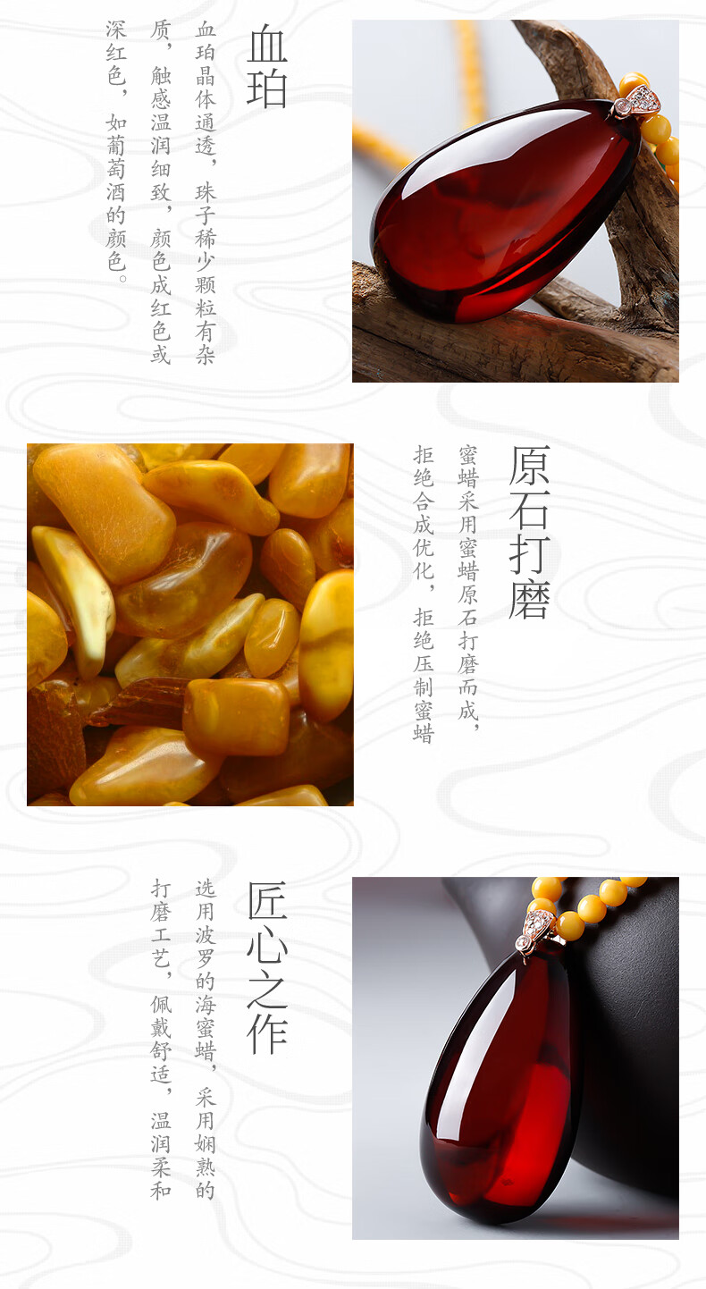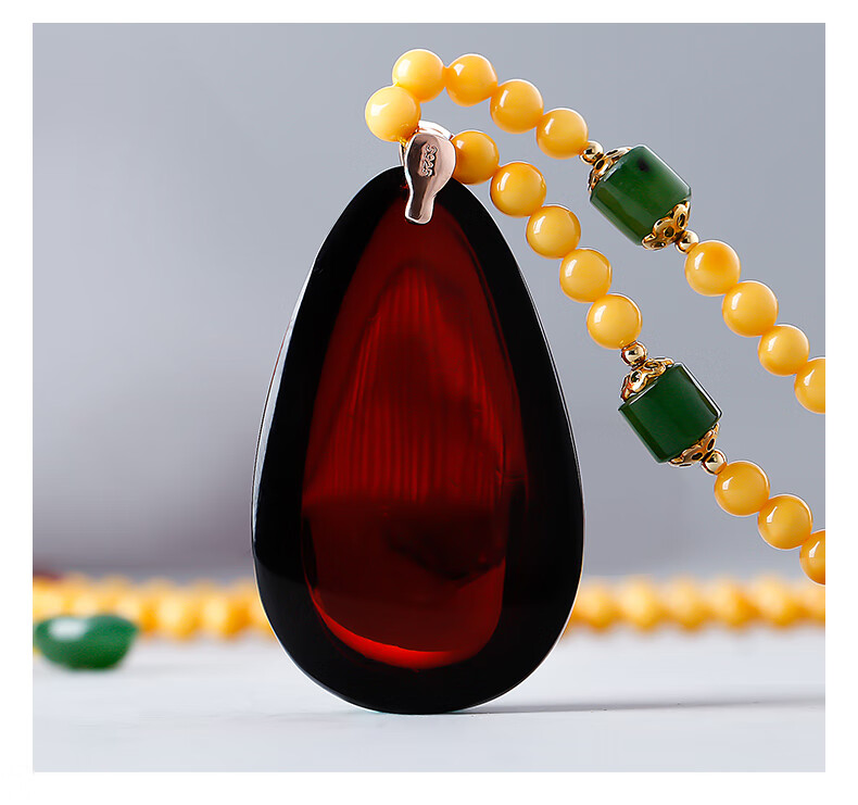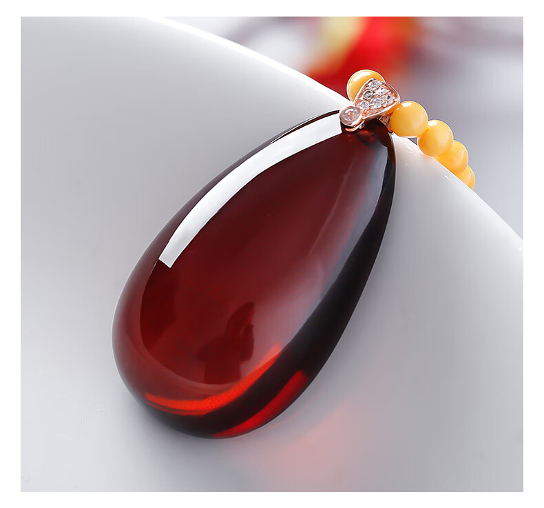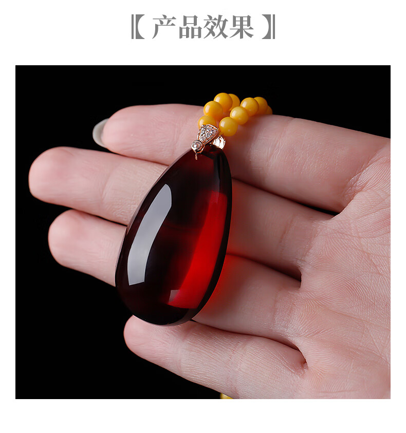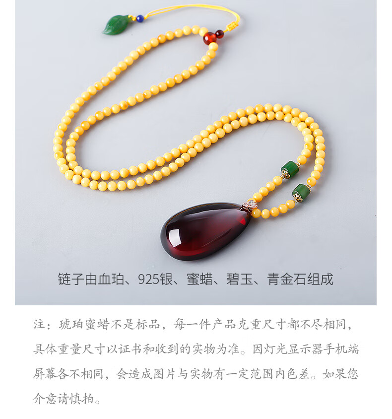 Qiongque Pavilion Beeswax Pendant Original Stone Blood Amber Water Drop Sweater Chain Natural Amber Pendant Beeswax Necklace Men's and Women's Clavicle Chain
