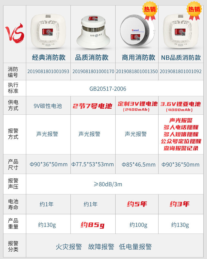 Hanwei smoke alarm, smoke detector, fire protection certification, sound and light alarm, smoke fire detector certification, quality fire protection model (fire protection certification)