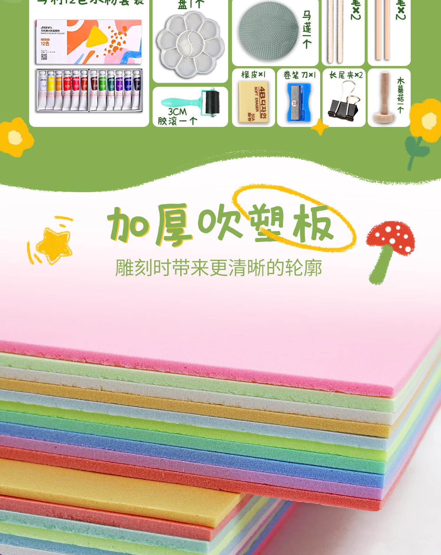 Art blow molding paper 4mm primary school student a4 rubbing blow molding board children diy blow molding paper printmaking tool set Minghua (MINGHUA) 8K blow molding board mixed color 20 sheets free bamboo pen
