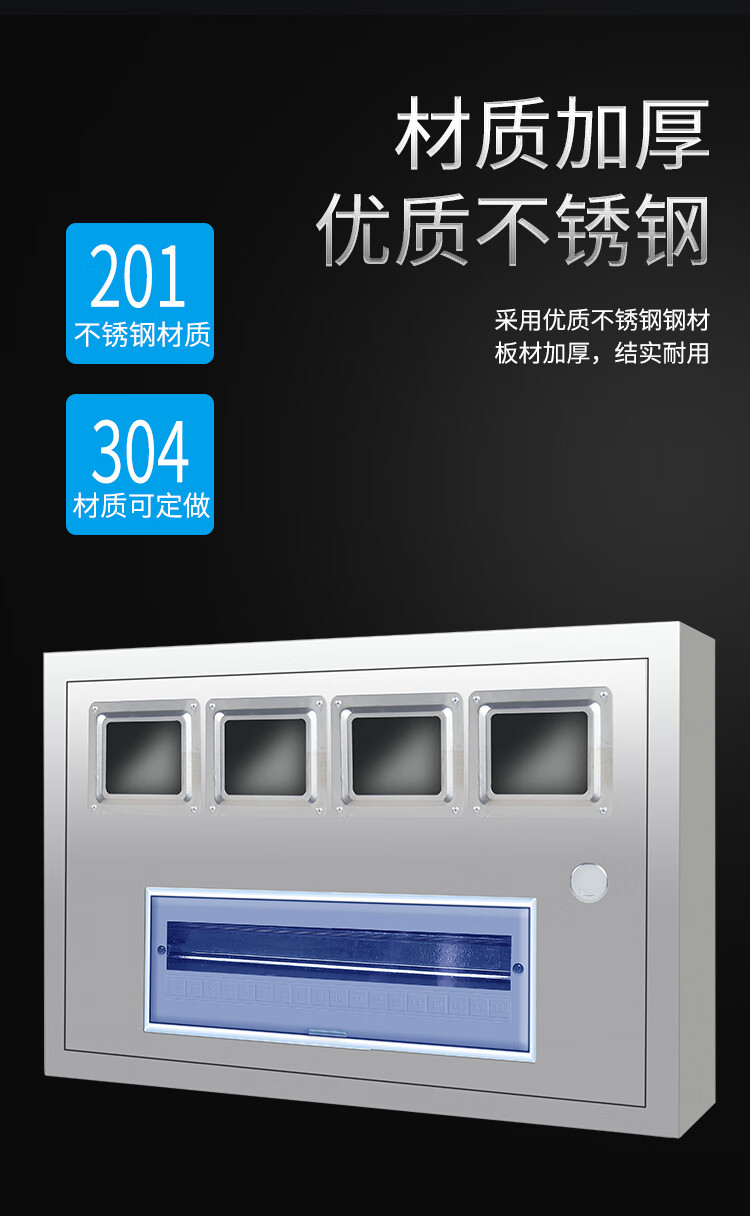 304 stainless steel meter box, exposed and concealed single-phase electrical box box, household distribution box, outdoor indoor shell box, 201 stainless steel, concealed installation for 1 household