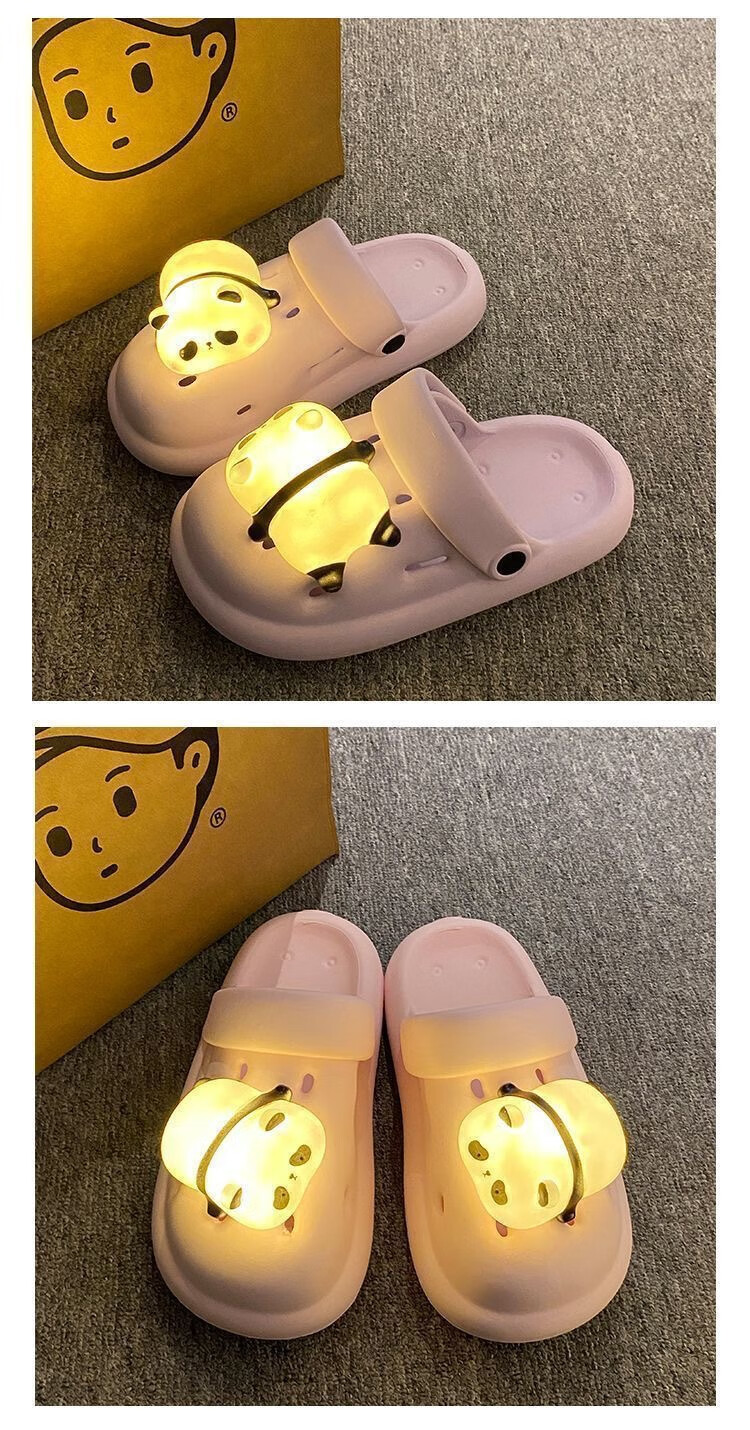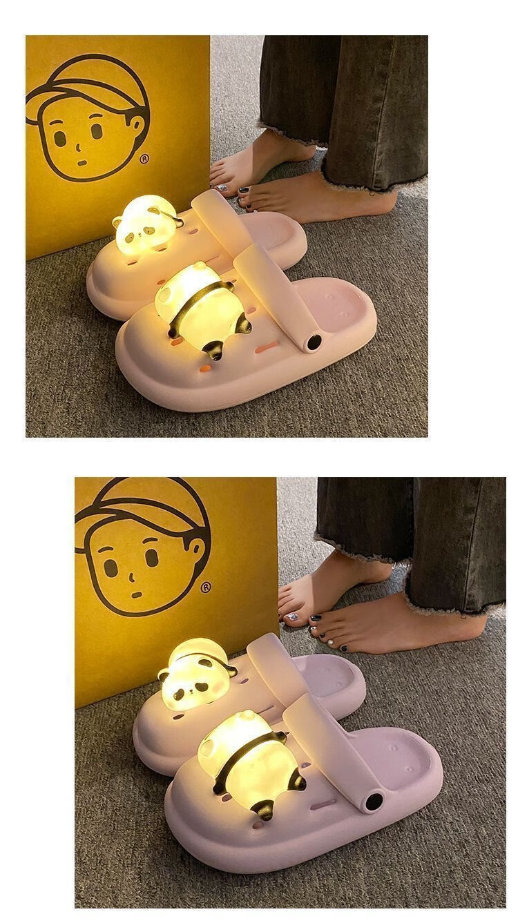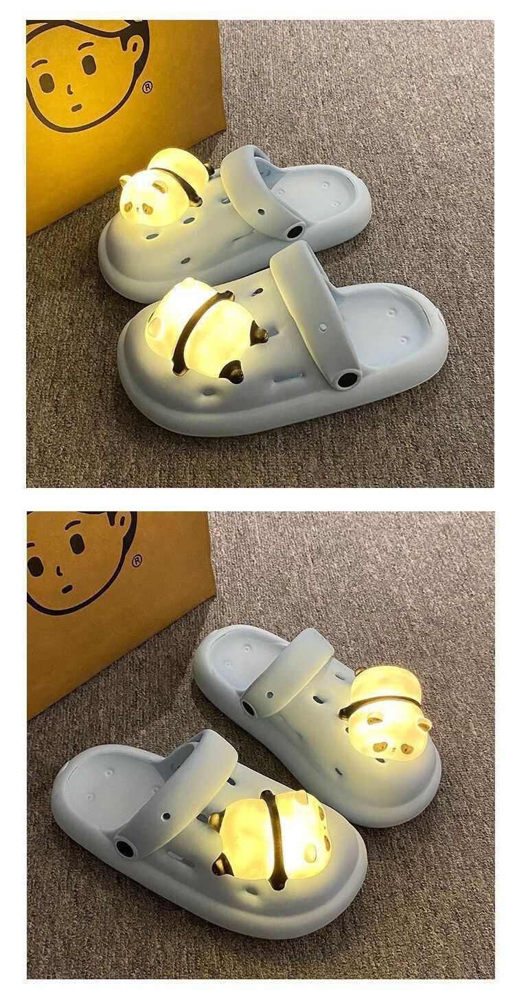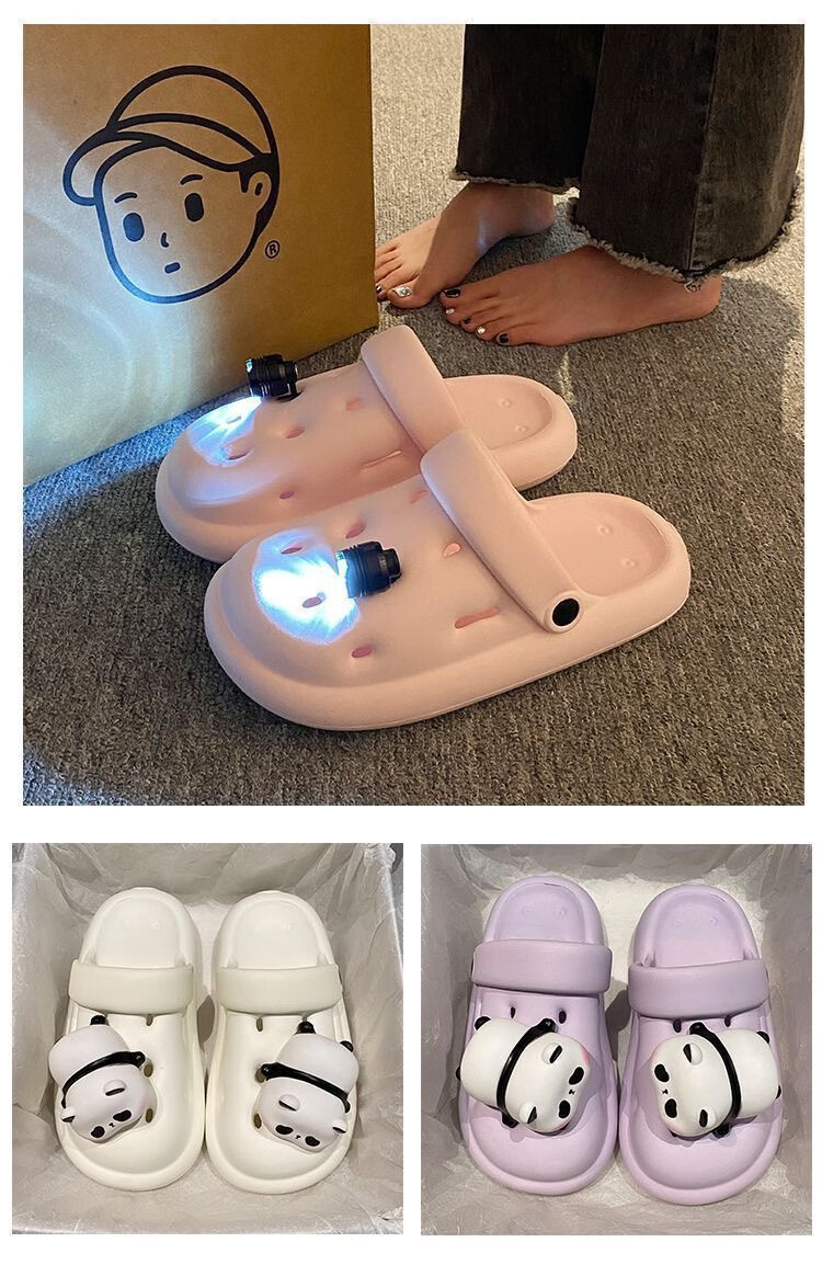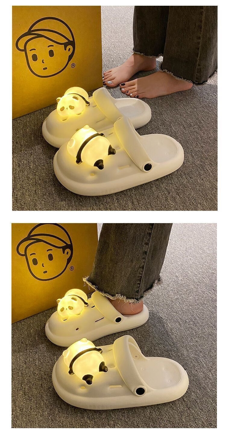 Matte luminous slippers for women summer bear cave shoes thick-soled luminous toe half slippers non-slip children's slippers white luminous panda 36 37 suitable for 35/36