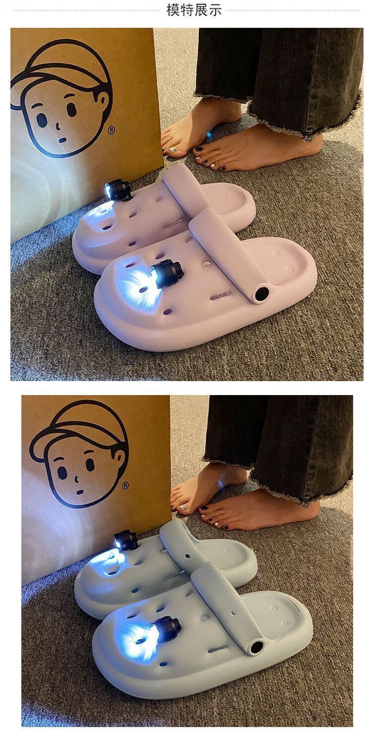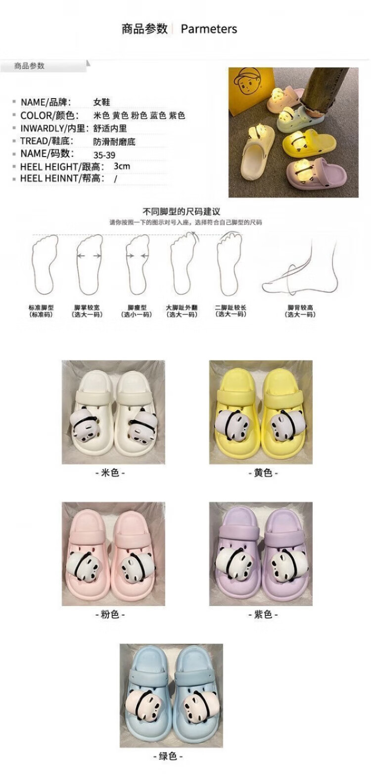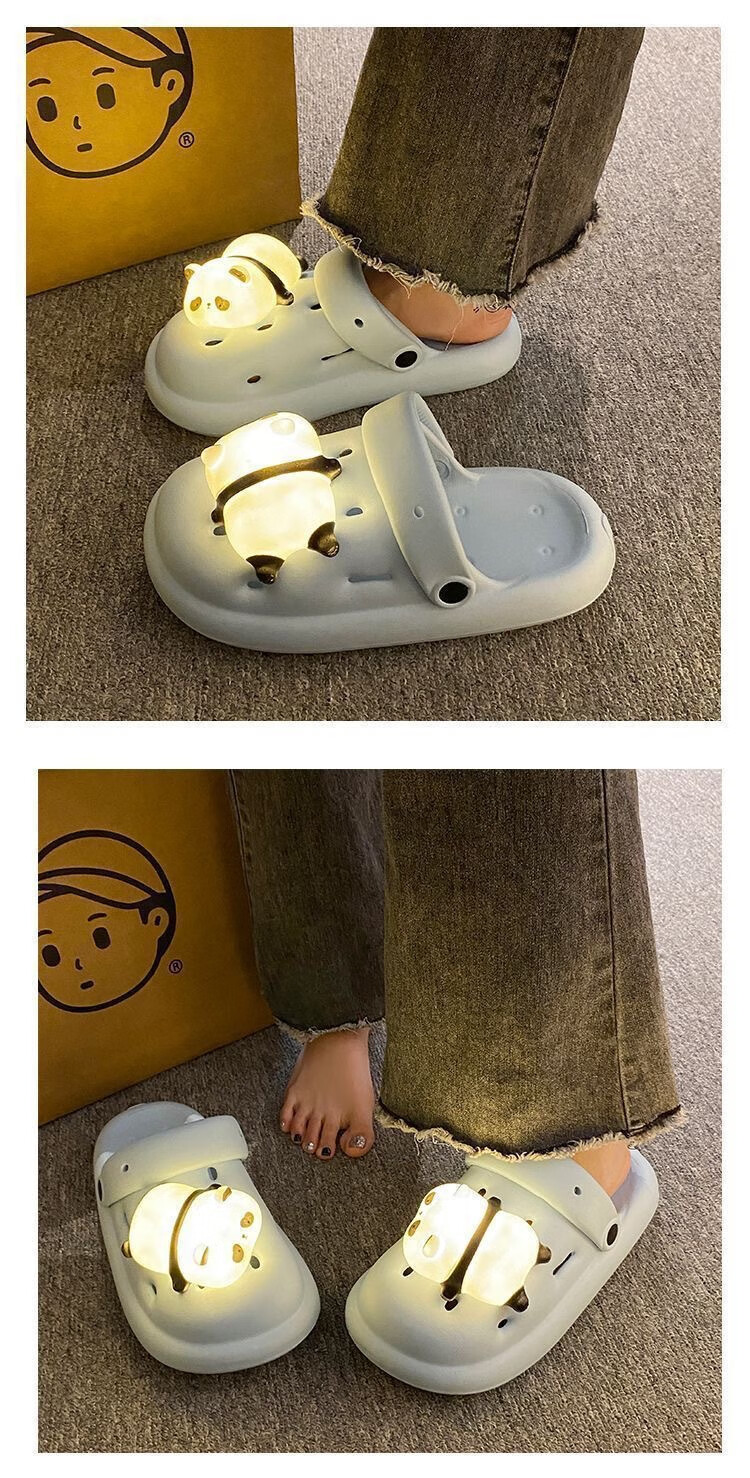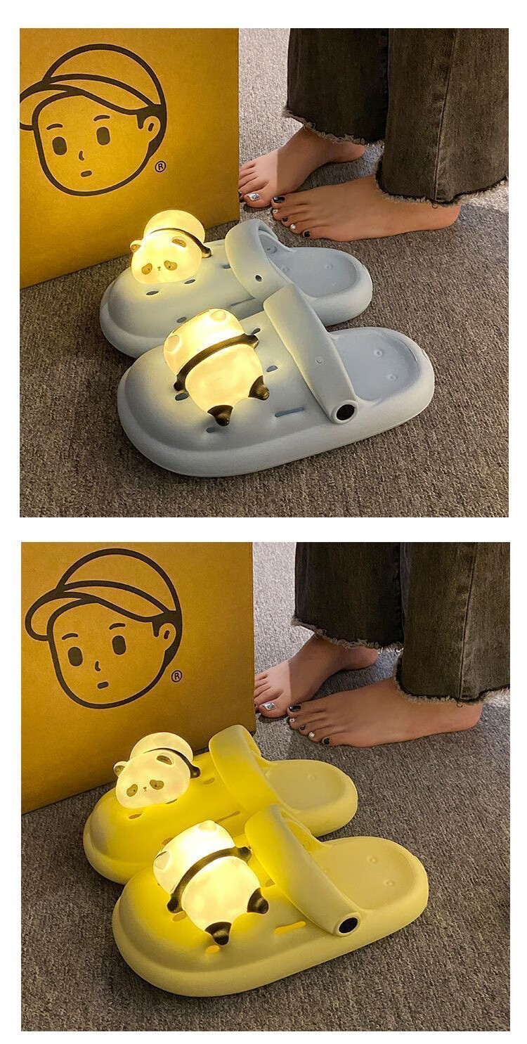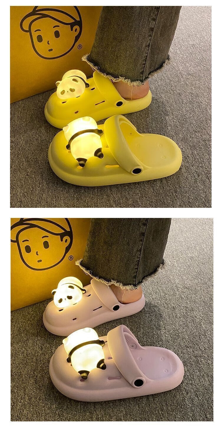 Matte luminous slippers for women summer bear cave shoes thick-soled luminous toe half slippers non-slip children's slippers white luminous panda 36 37 suitable for 35/36