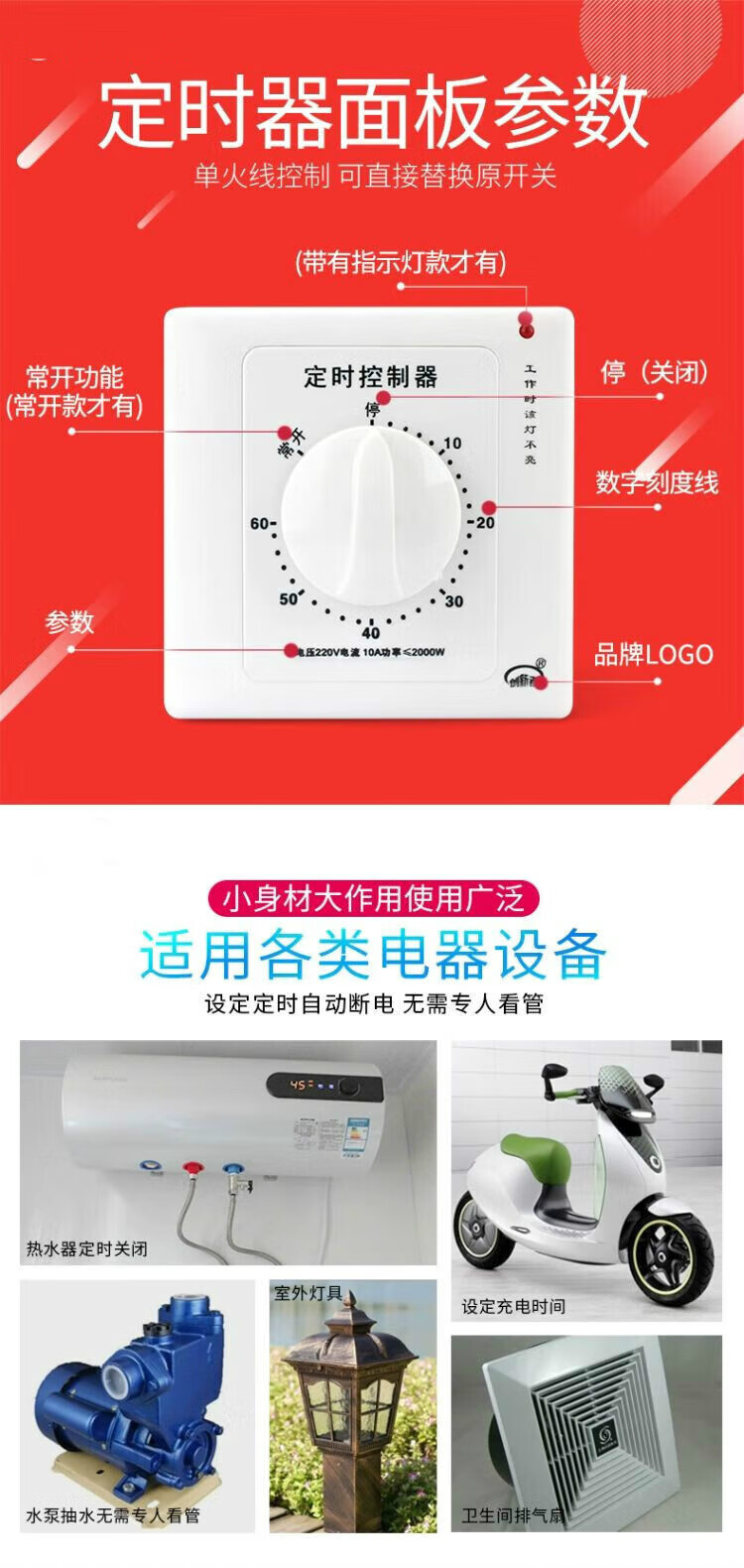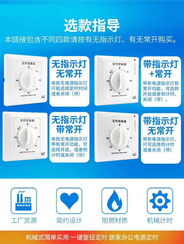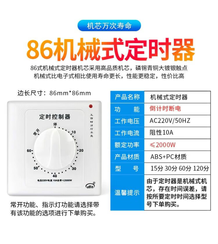 Water pump timer switch socket household power control mechanical 60-minute countdown off automatic power off 30 minutes with light without normally on function equipped
