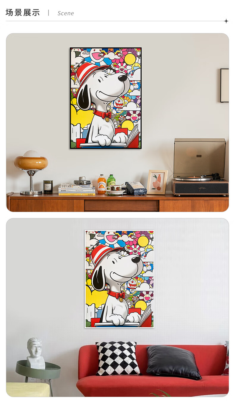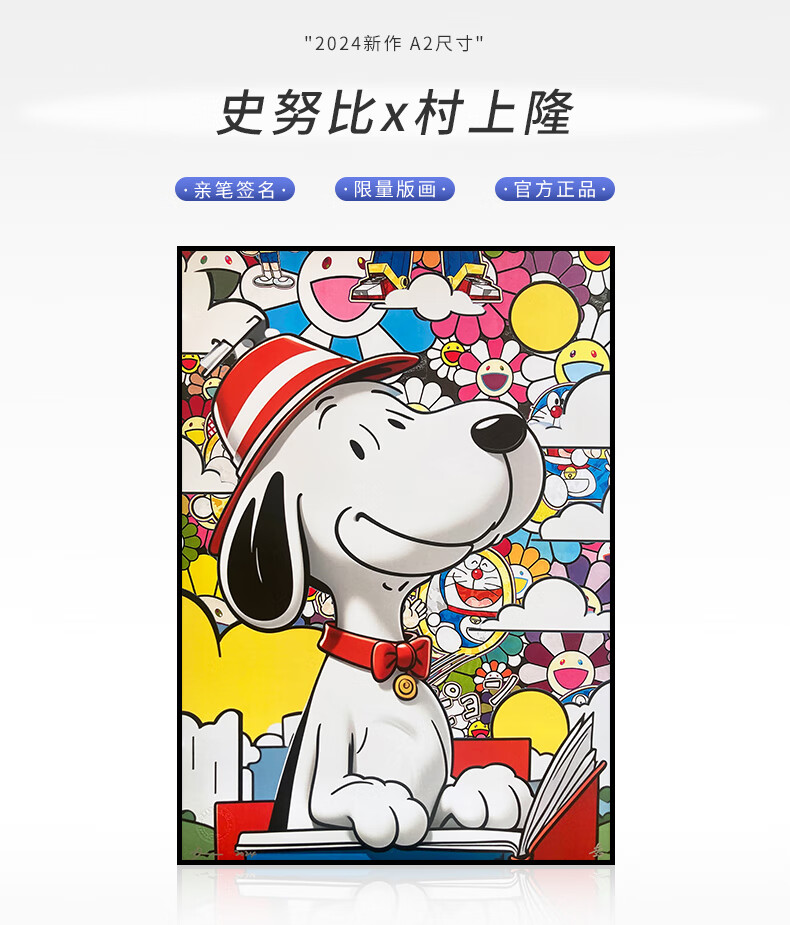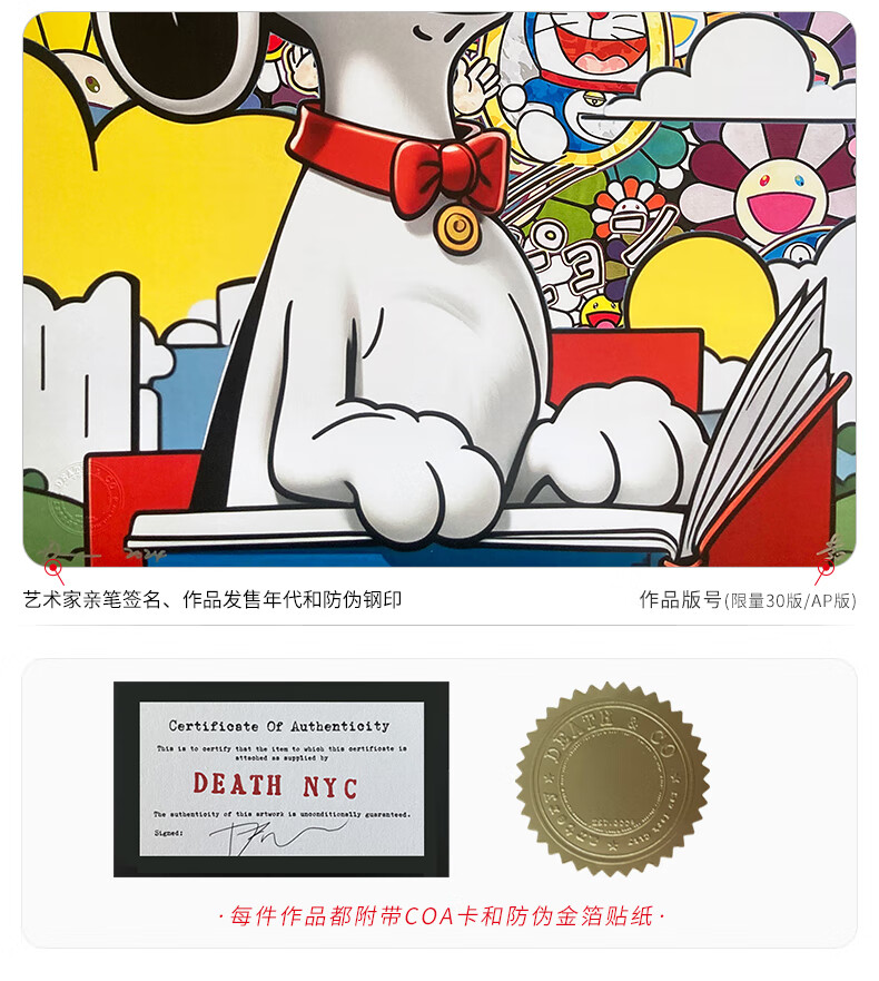 Sanwei Living Room Decoration Painting Death NYC autographed limited edition A2 series Snoopy modern trendy print cartoon animation aluminum alloy black frame 43*60.4cm