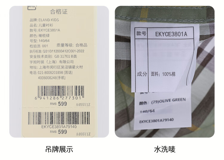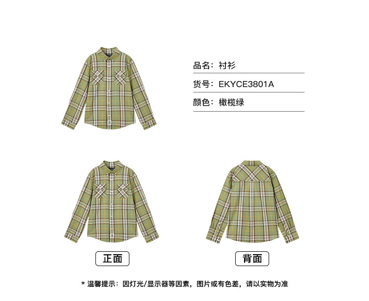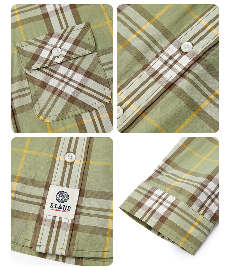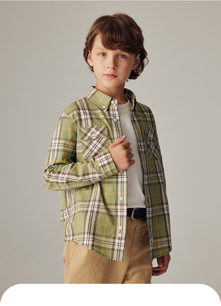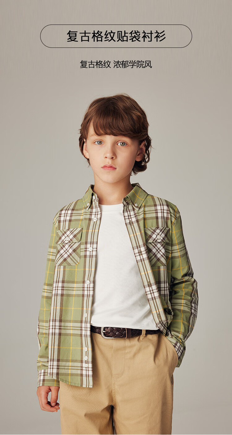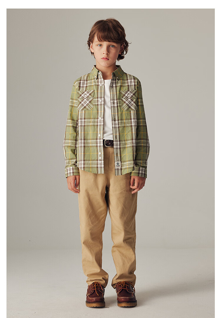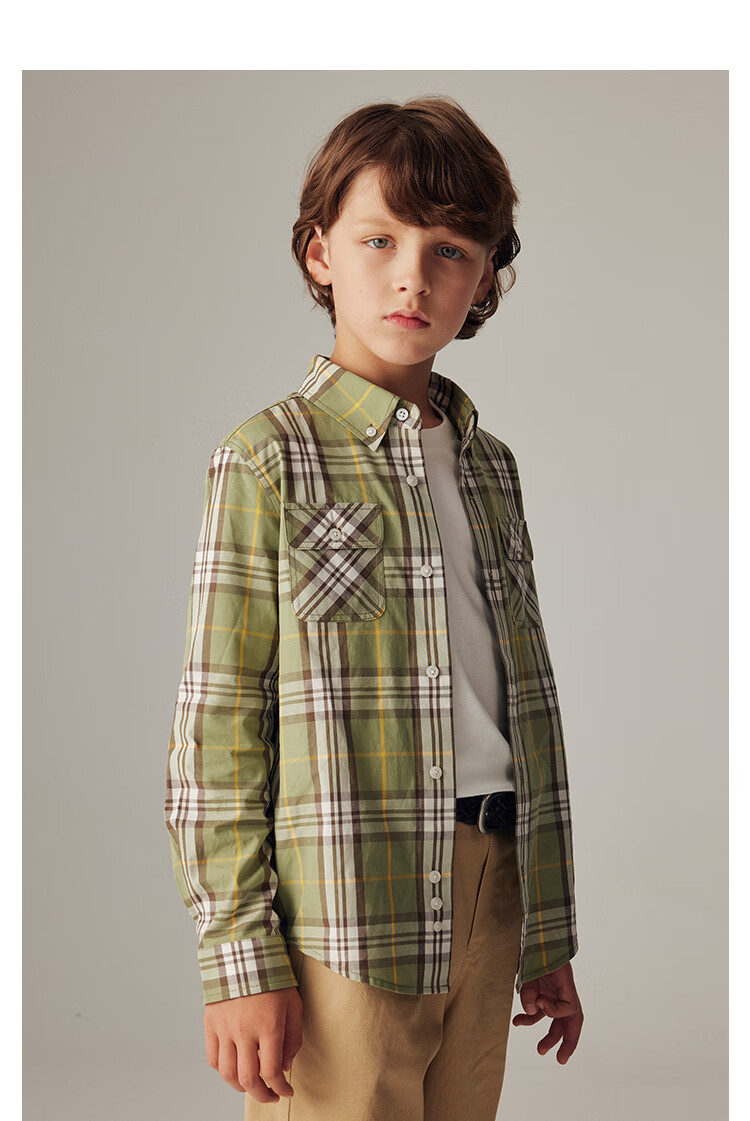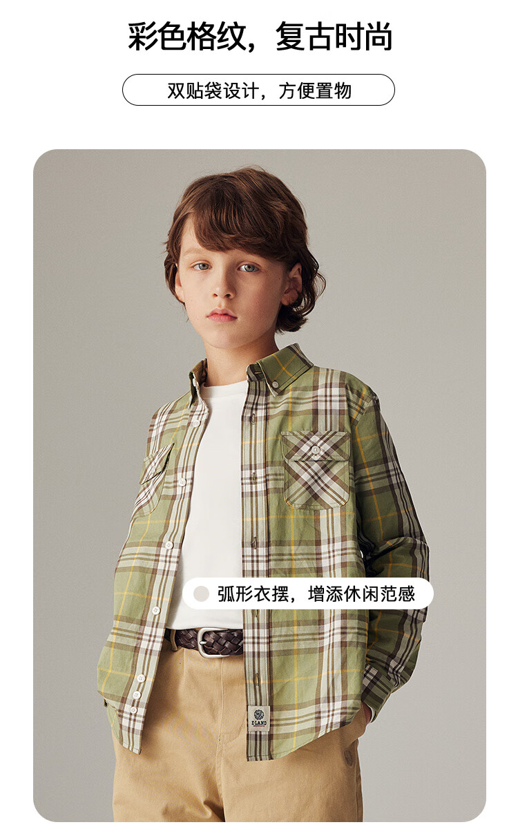 E LAND KIDS autumn new boys' college style pattern double patch pocket shirt OLIVE GREEN olive green/79 130 cm