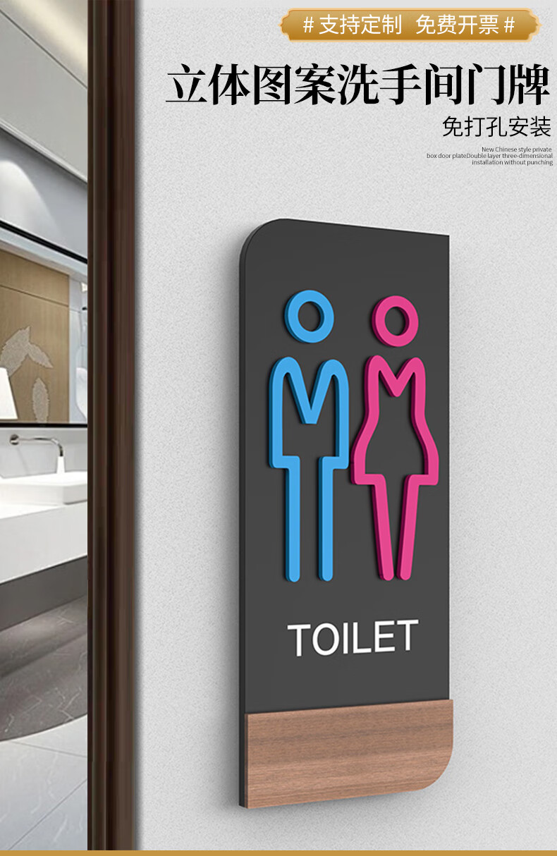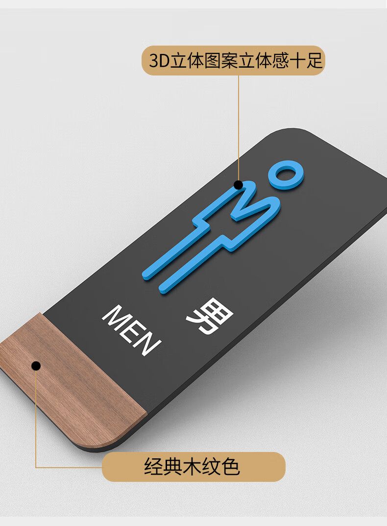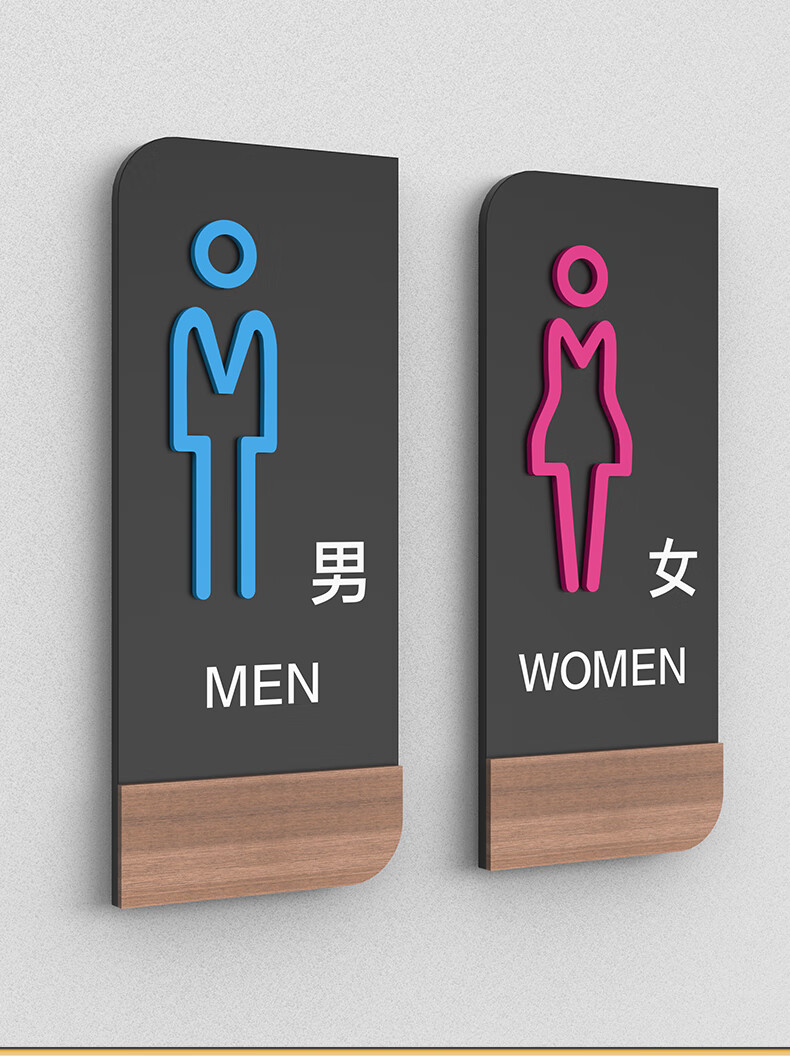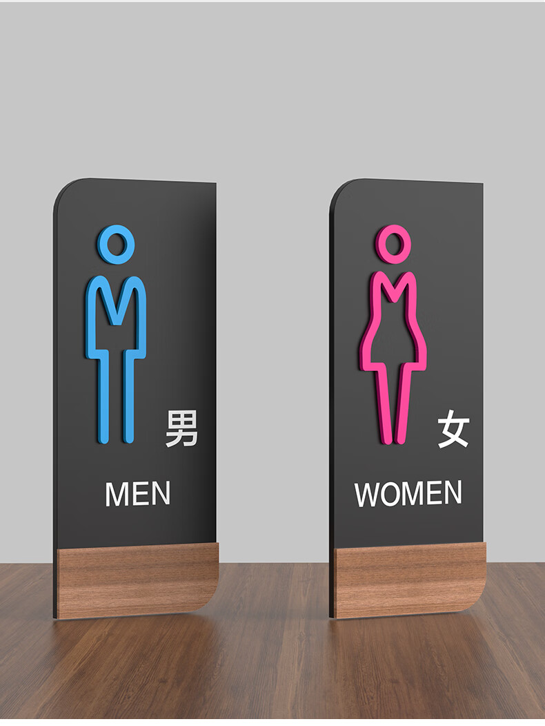 Junban restroom door sign men's and women's restroom signage customized high-end three-dimensional public restroom signage prompt sign male and female pair (one male and one female) 24*12cm