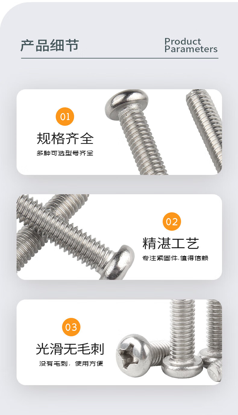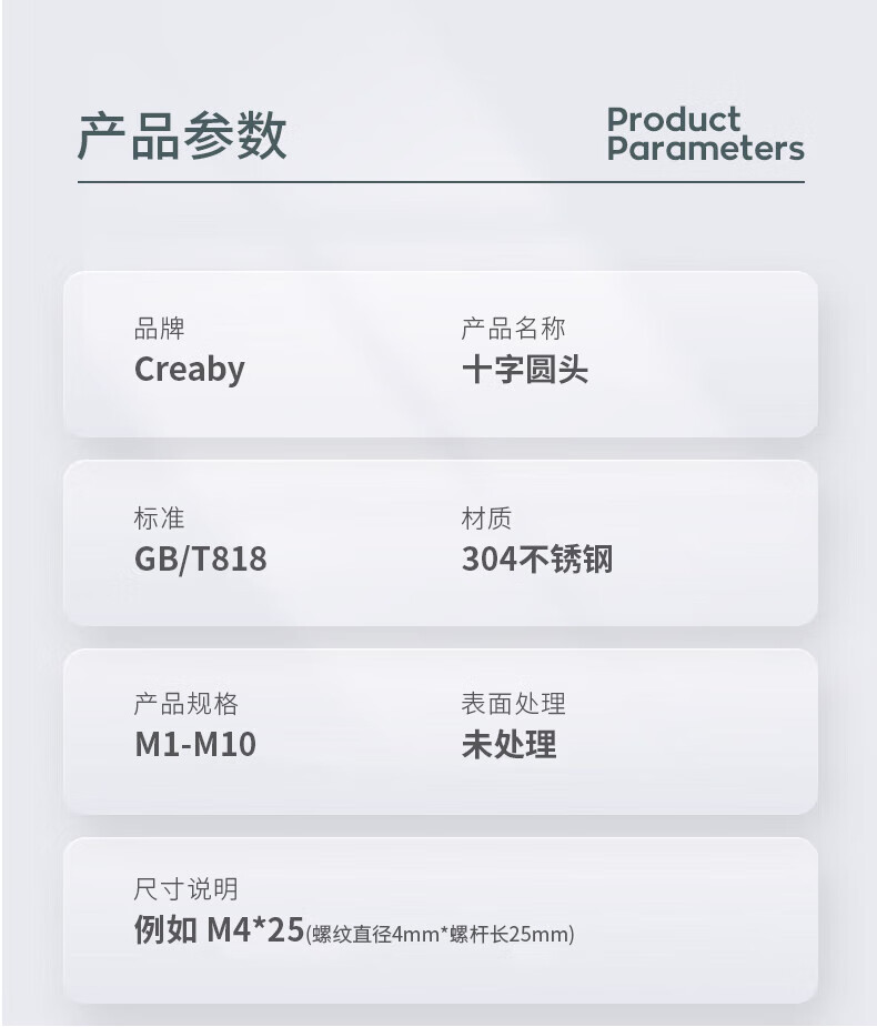 Creaby304 stainless steel cross round head screws pan head bolts screws switch socket panel machine wire M4*10 50 pieces