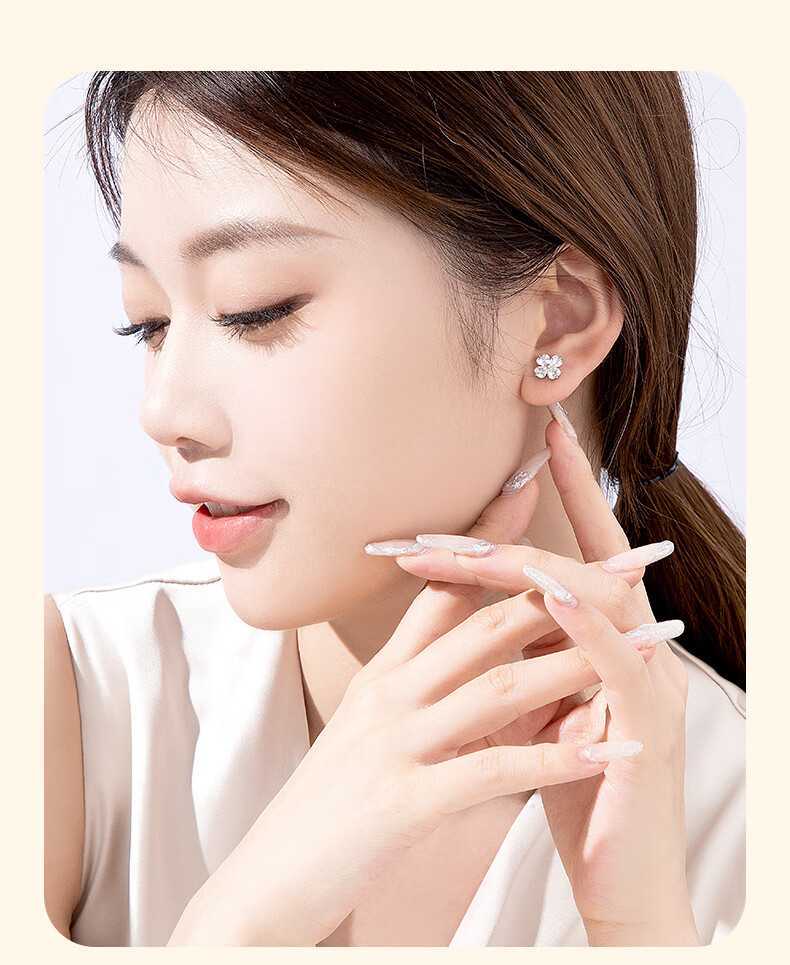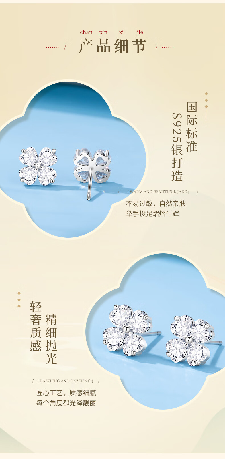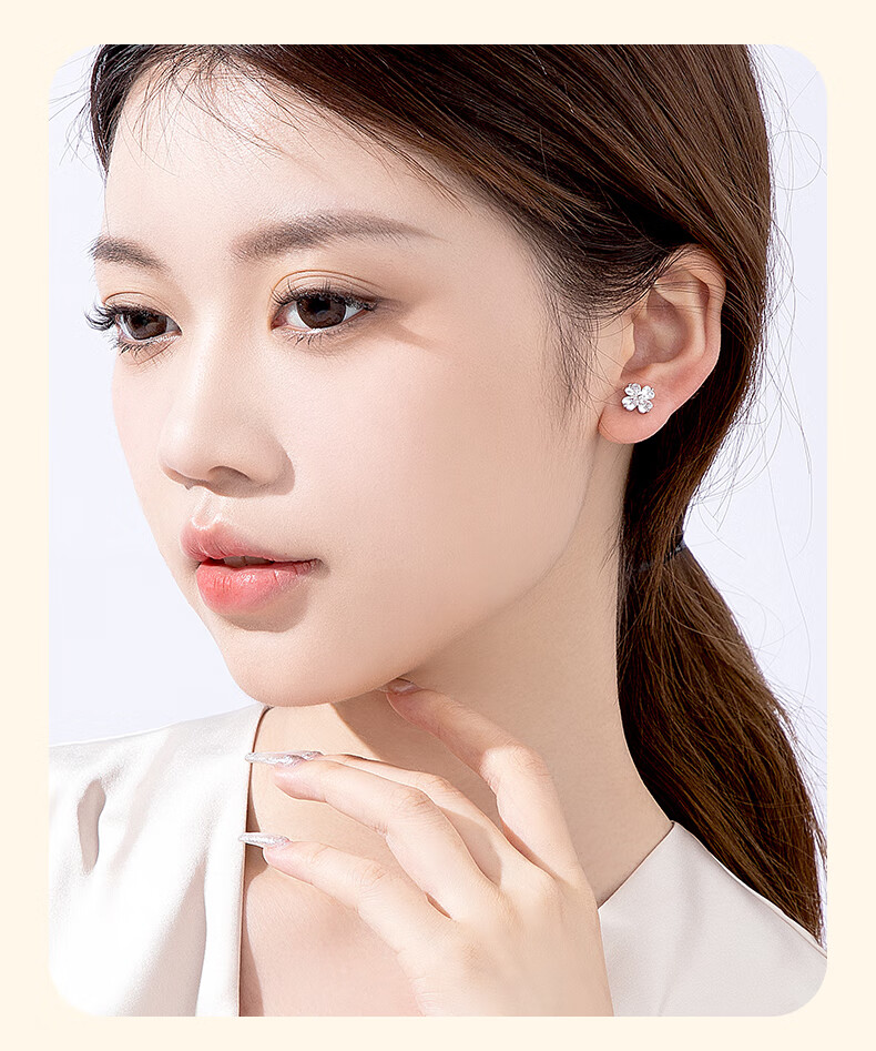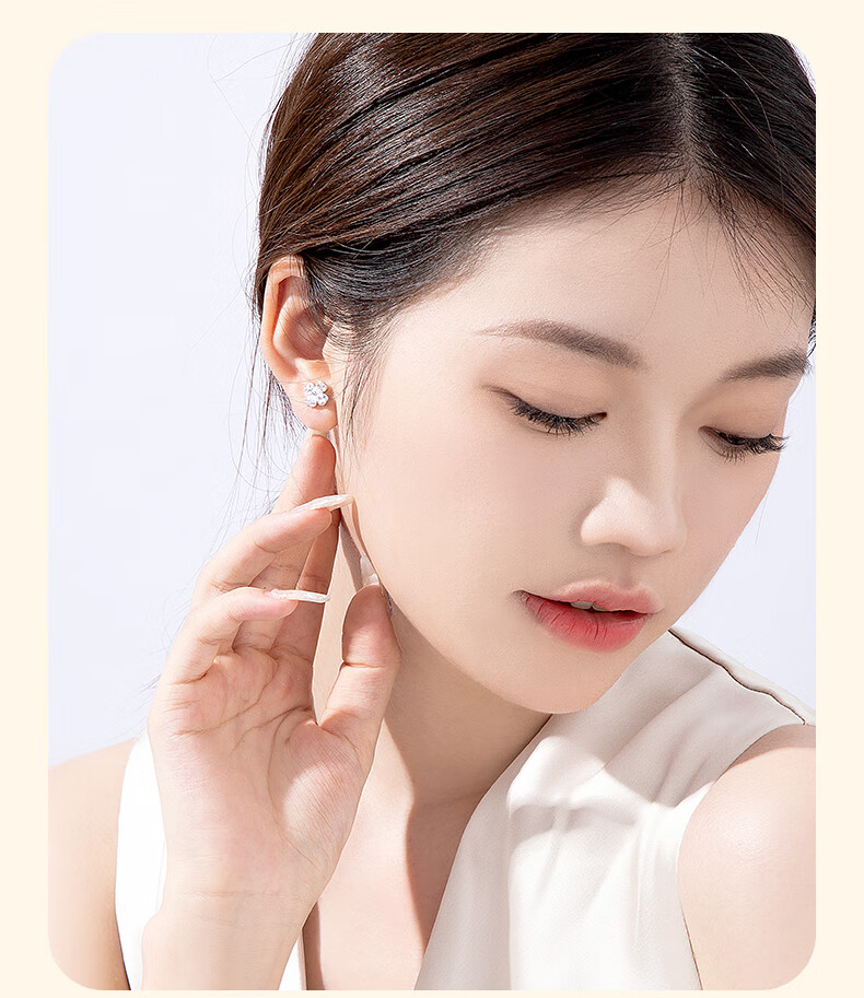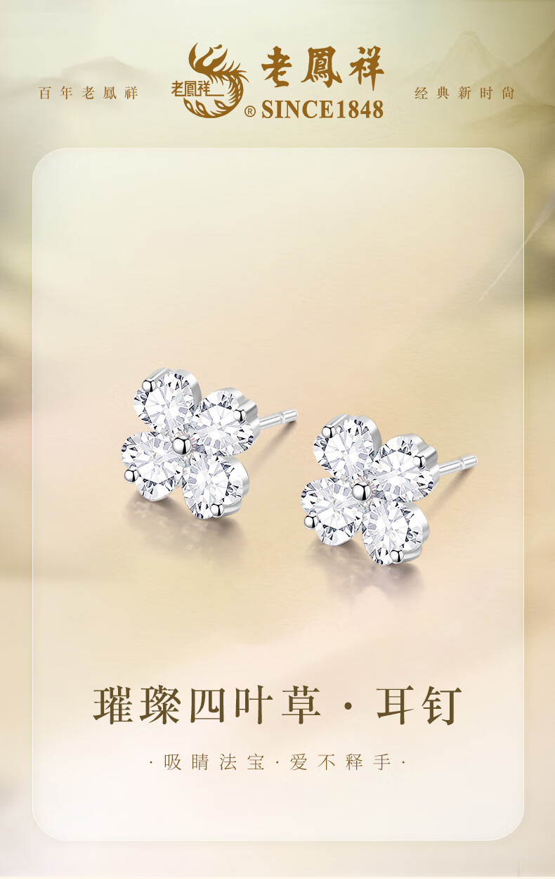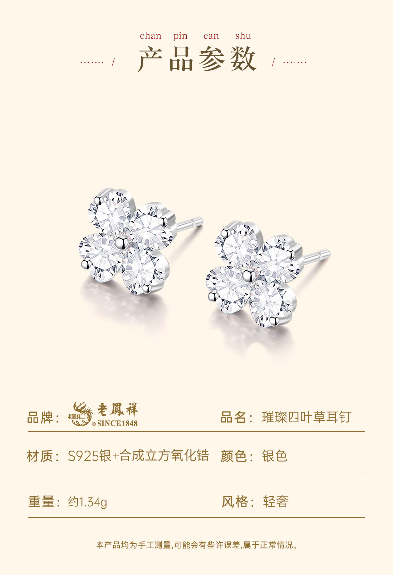 Lao Fengxiang light luxury S925 silver earrings for women, clover ear jewelry, senior birthday and anniversary gifts for girlfriends, bright clover earrings* local warehouse/delivered nearby