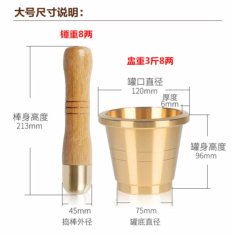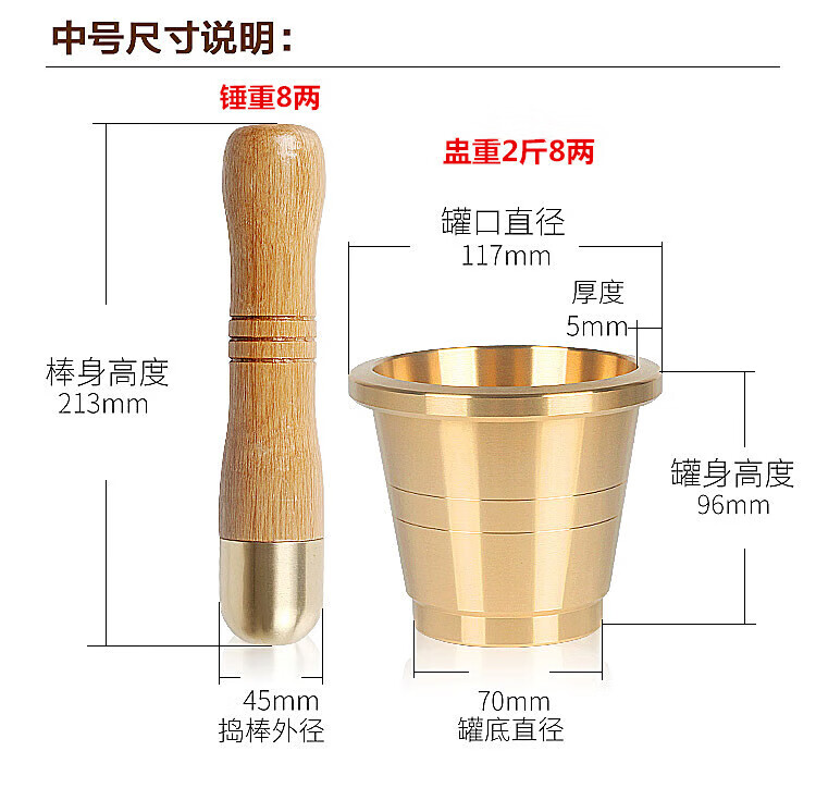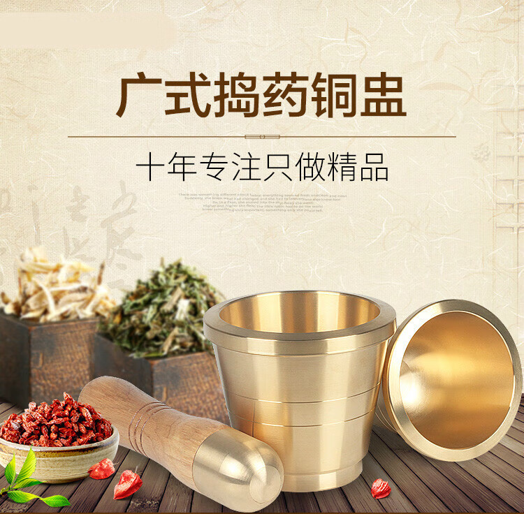 Jiudian medicine jar pure copper Cantonese solid copper cup garlic pounder medicine cup Chinese medicine pound medicine jar medicine bowl kitchen medium diameter 11.5 height 10 wall thickness 0.5 cm