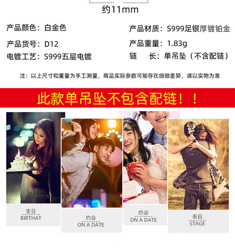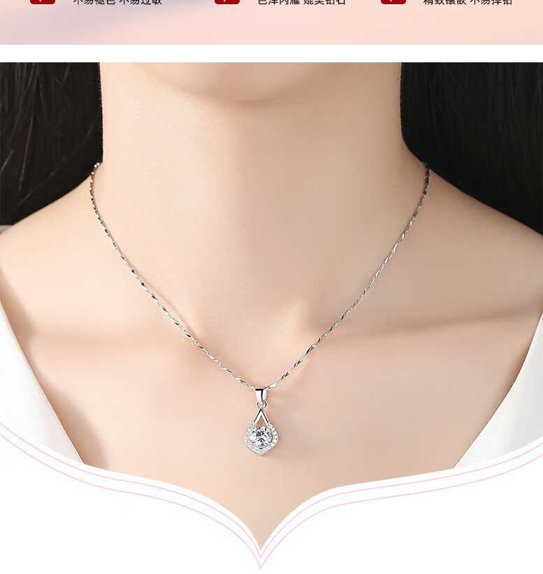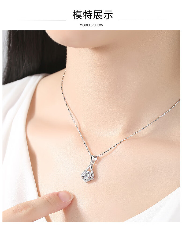 Xuanyong 950 platinum necklace, white gold pendant, women's silver necklace, simple water drop necklace, K gold jewelry, white diamond (with arrow heart chain)