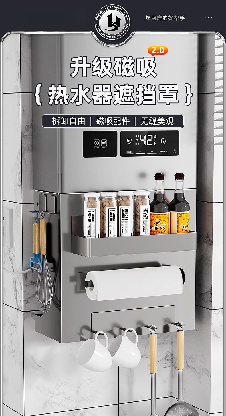 Shima kitchen water heater shield gas pipe decorative hole board natural gas wall-mounted stove cover storage rack can magnetically absorb dust-proof gun dust - 45cm wide, 40cm deep
