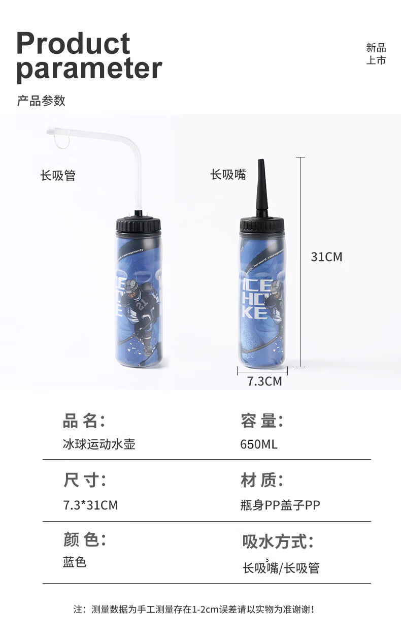 Ice hockey special kettle ice hockey sports special long mouth long straw water cup equipment peripheral 650ML United States 600ml long mouth