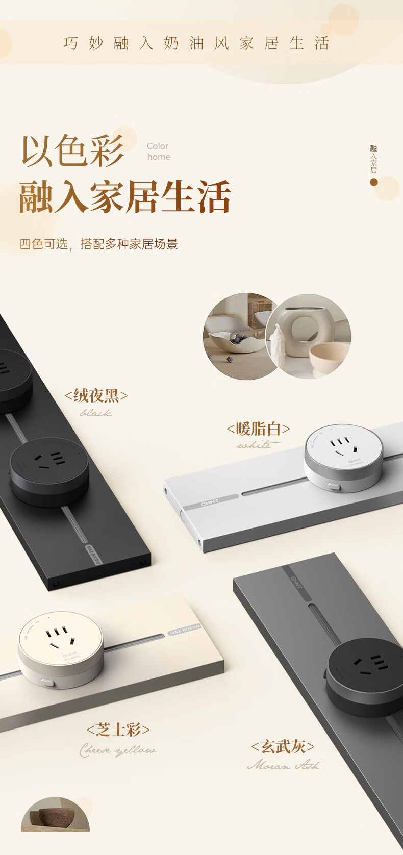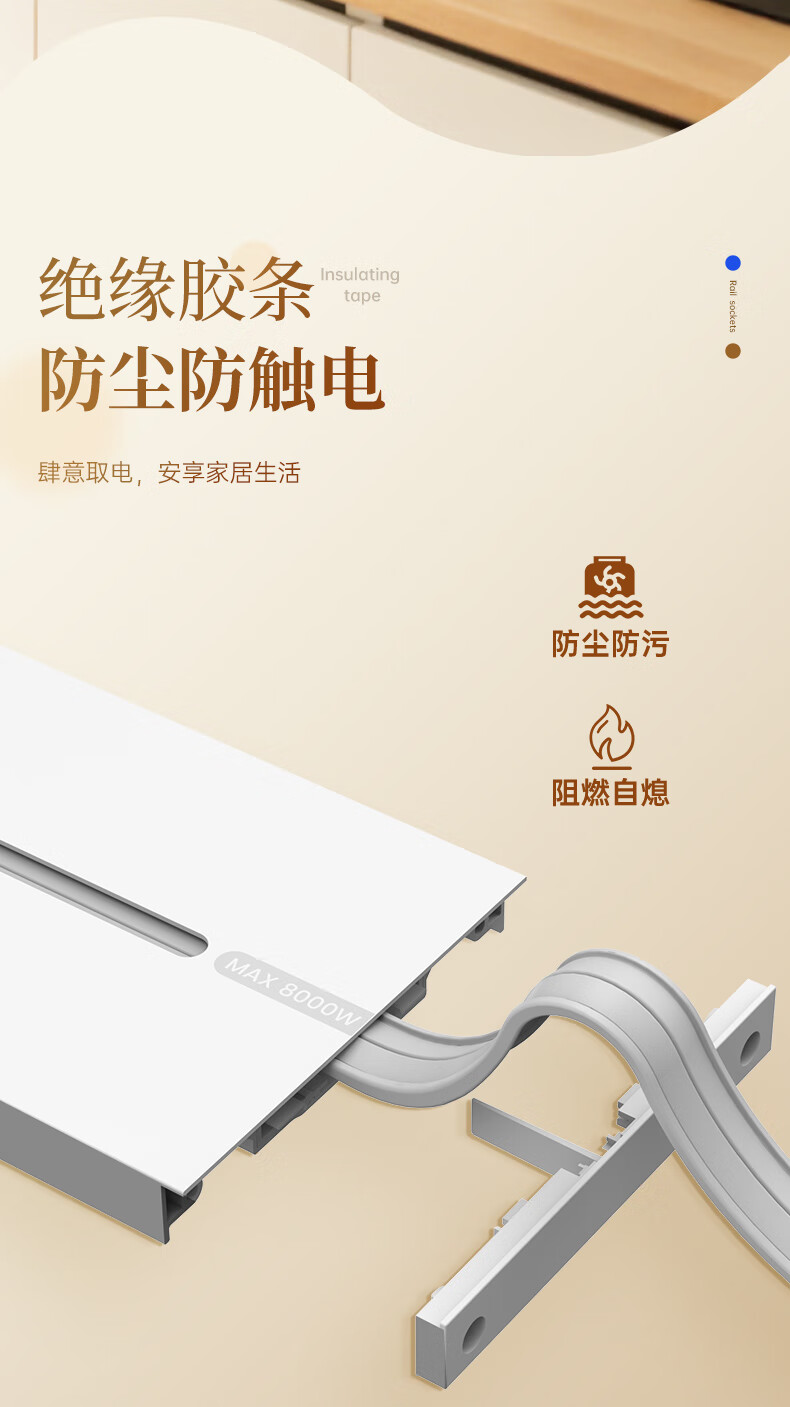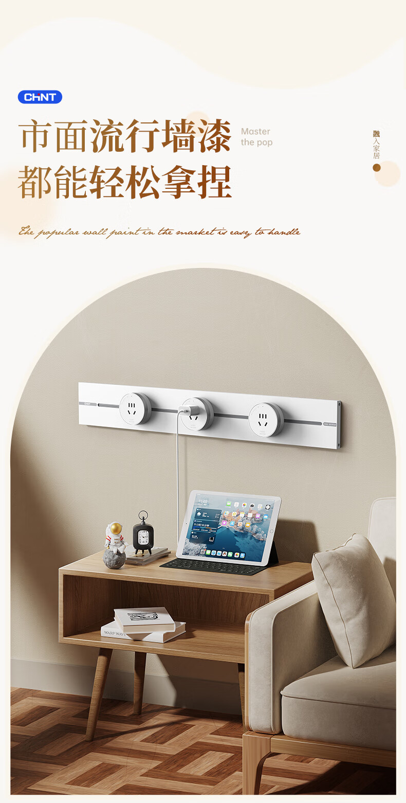 Chint (CHNT) surface-mounted track socket ultra-thin model Phantom movable wall socket wall-mounted / patch panel / wiring board multi-functional rail slide socket power track without punching Upgraded ultra-thin model black track 0.5m + 3 five holes track socket - surface mounted