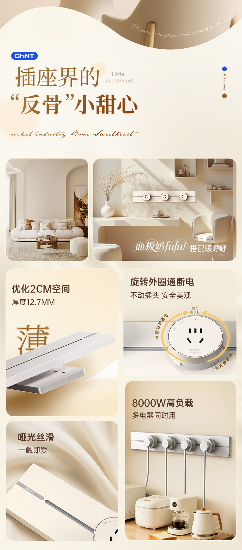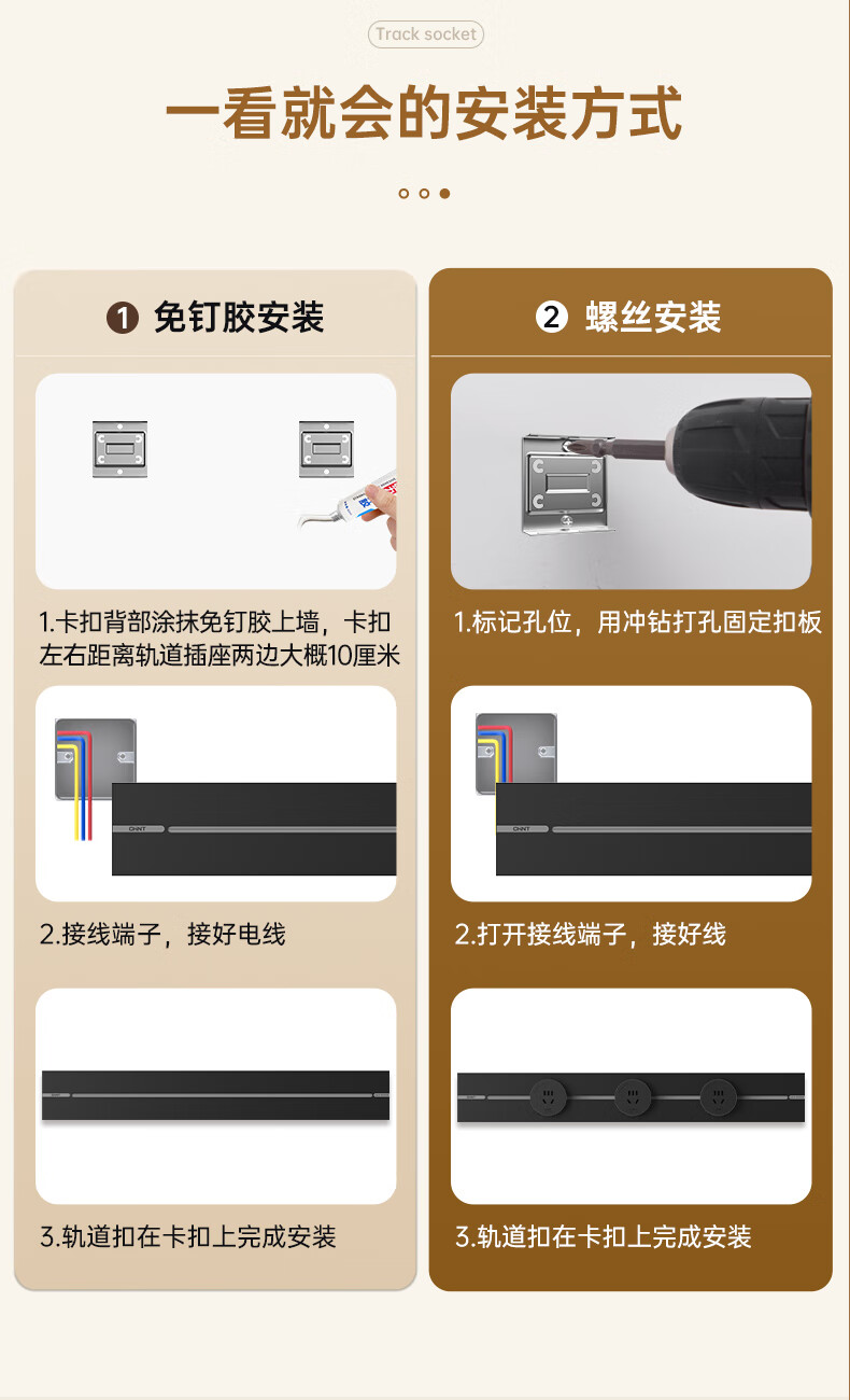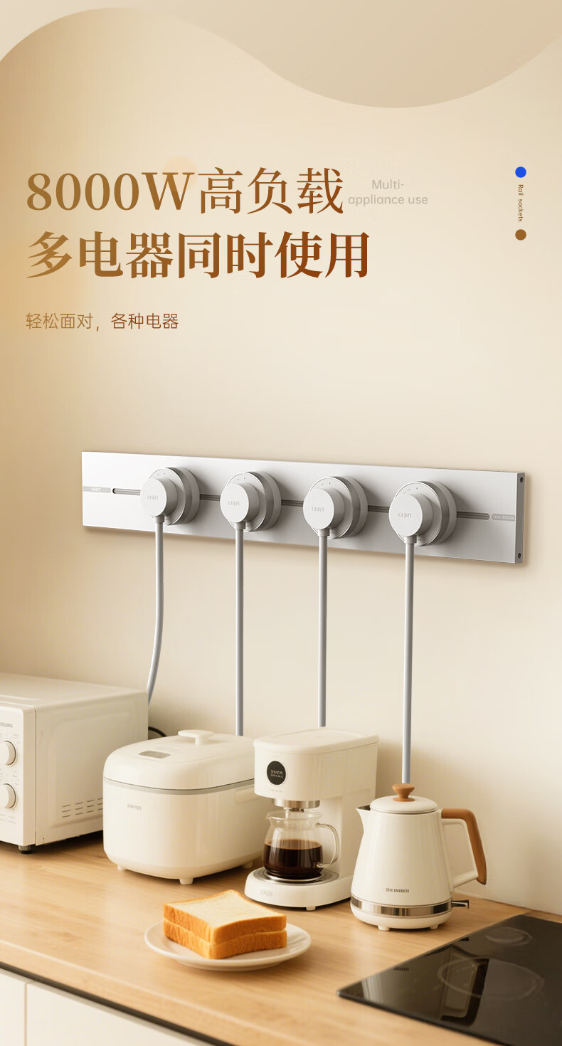 Chint (CHNT) surface-mounted track socket ultra-thin model Phantom movable wall socket wall-mounted / patch panel / wiring board multi-functional rail slide socket power track without punching Upgraded ultra-thin model black track 0.5m + 3 five holes track socket - surface mounted