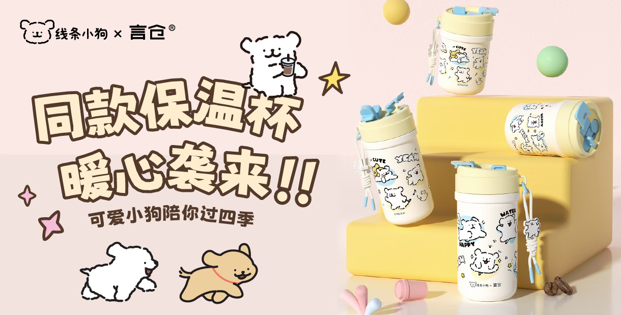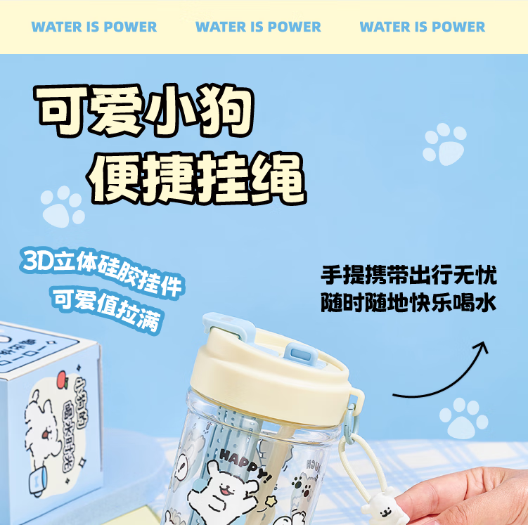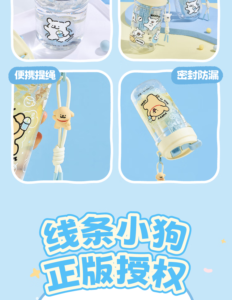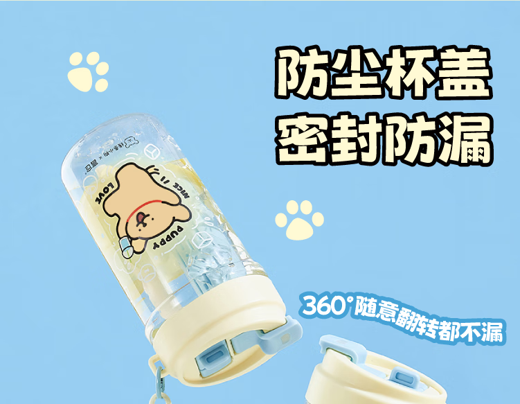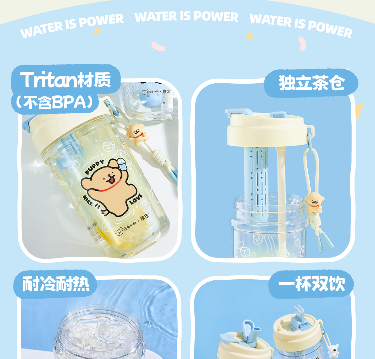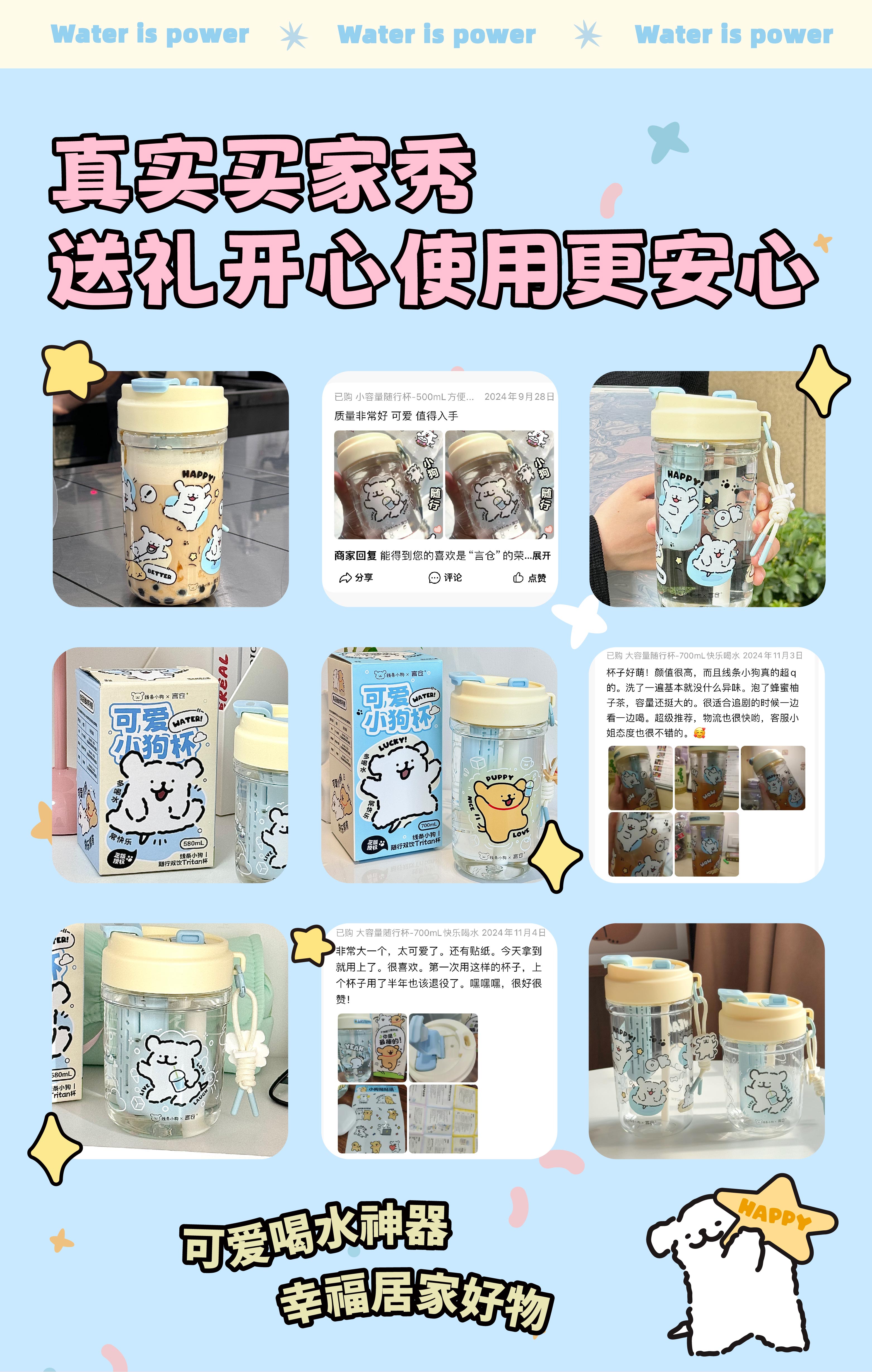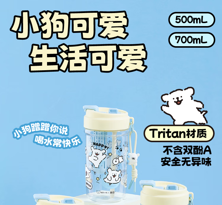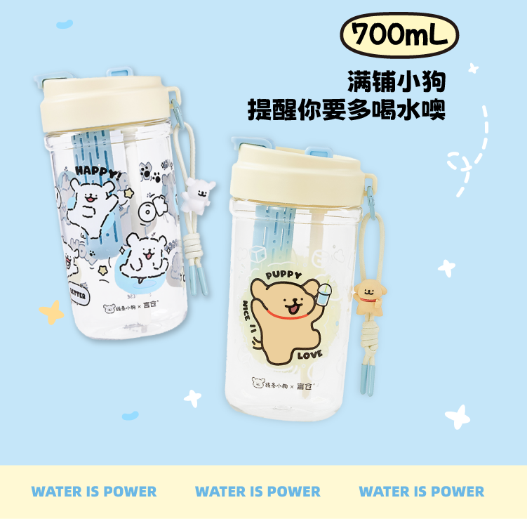Yancang line puppy travel cup tea and water separation practical double drink portable children's birthday gift plastic cup 700mL small white model