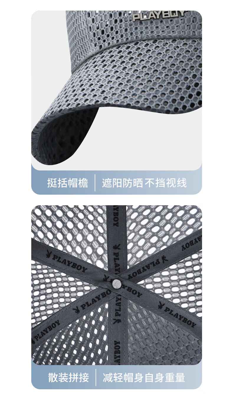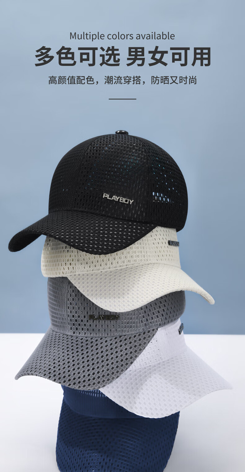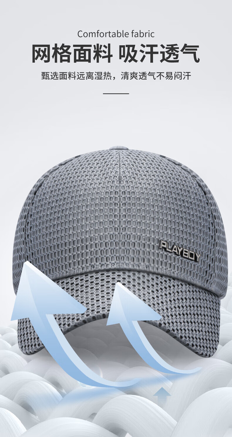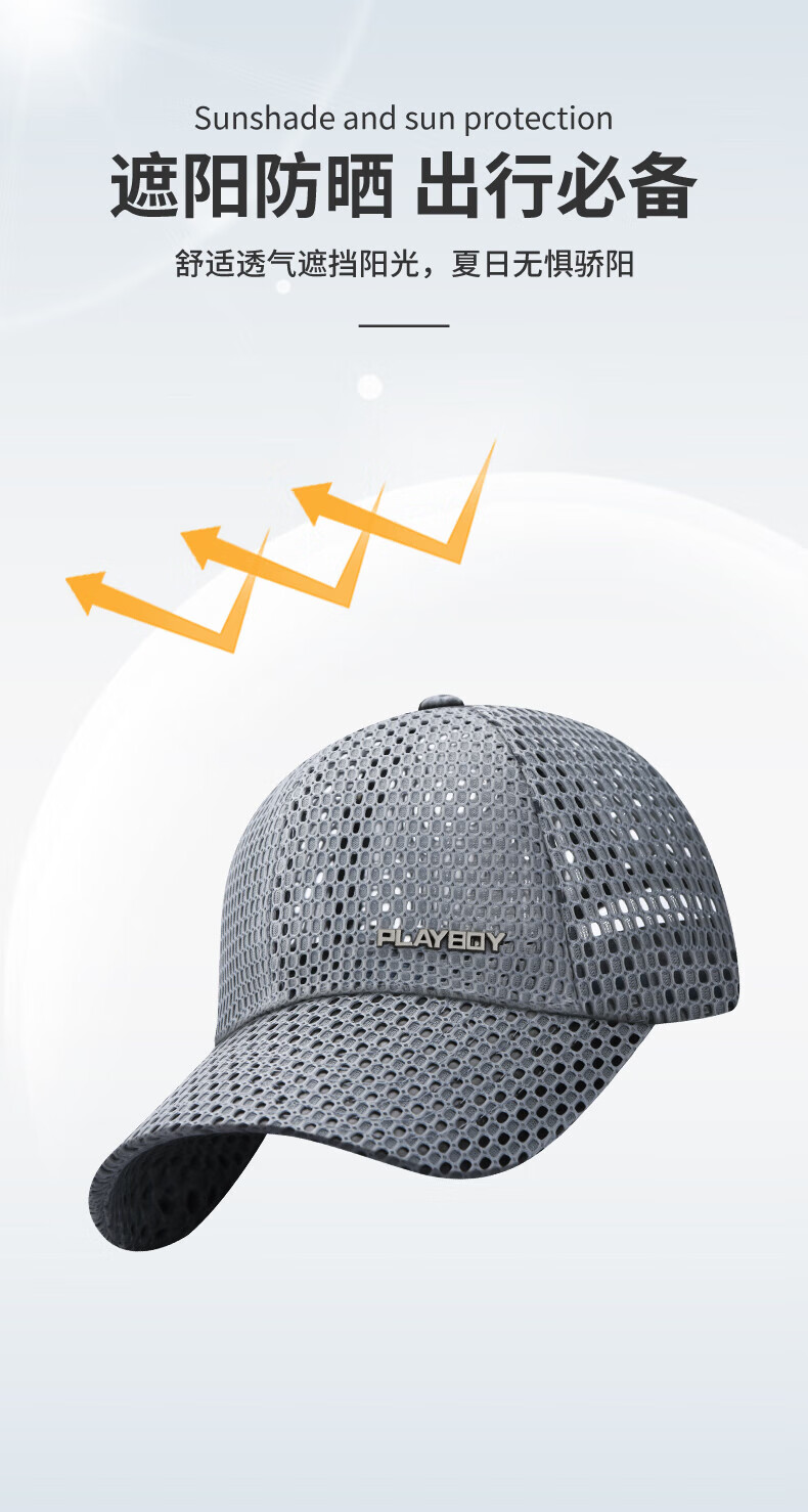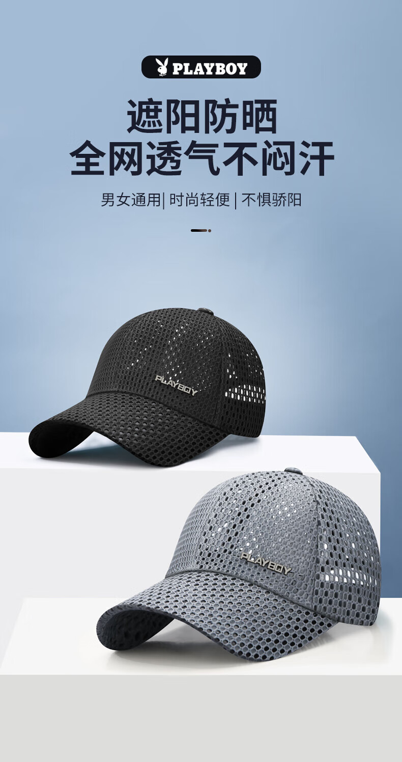 Playboy (PLAYBOY) baseball cap for men and women breathable mesh sunshade hat casual lightweight travel fishing peaked hat khaki