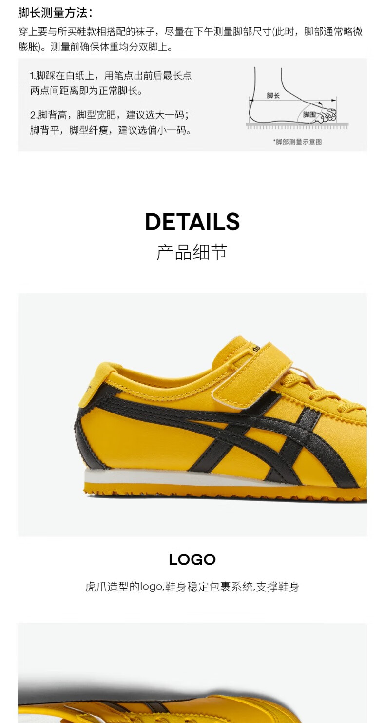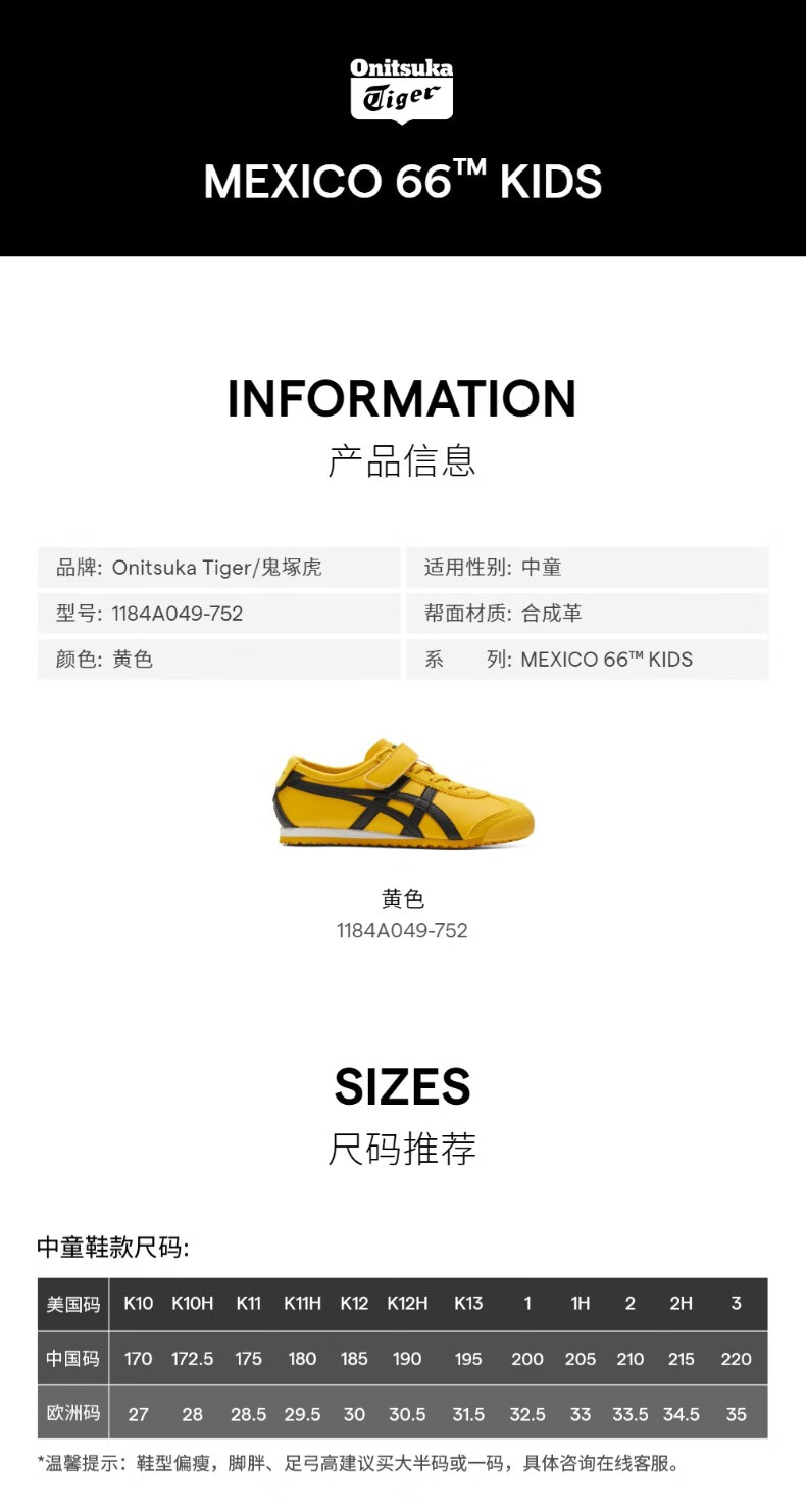 Onitsuka Tiger classic sports casual shoes for boys and girls, middle and large children's sports shoes MEXICO 66 KIDS yellow 35