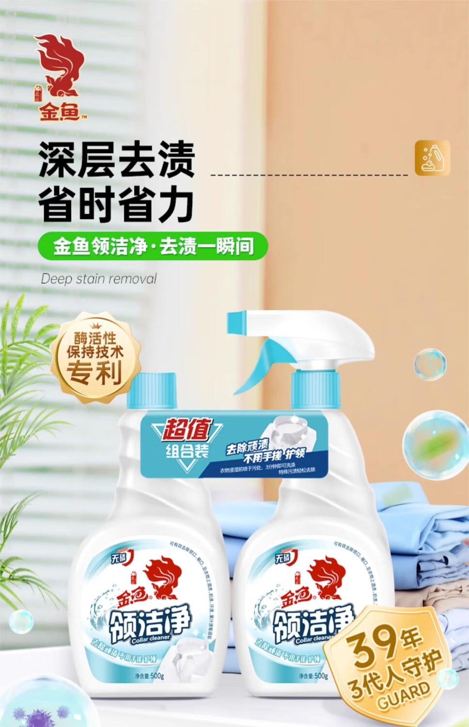 Goldfish Collar Cleansing 500g*2 Bottles Decontamination and Yellowing Cuff Collar No-Scrub Cleaning Dry Cleaner Clothing Care Family Pack 1kg (500g*2)
