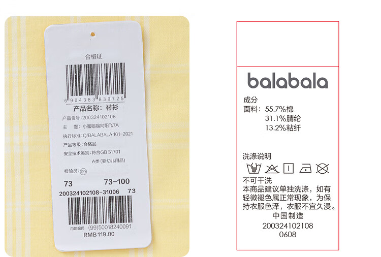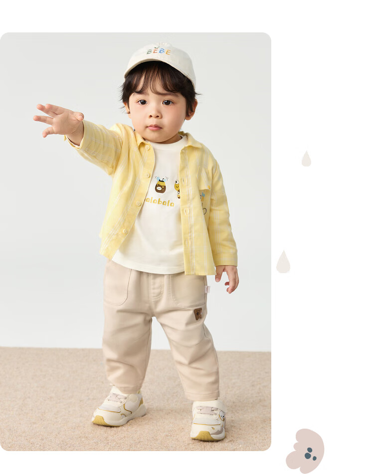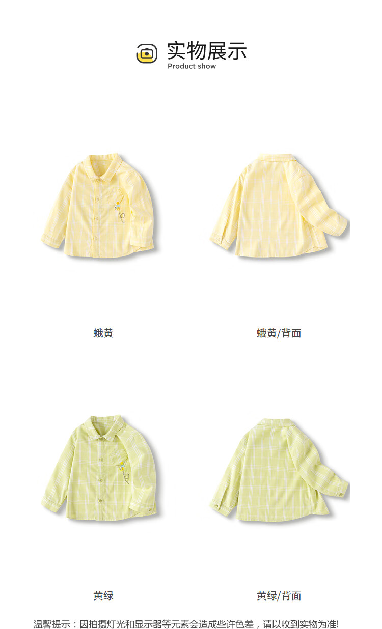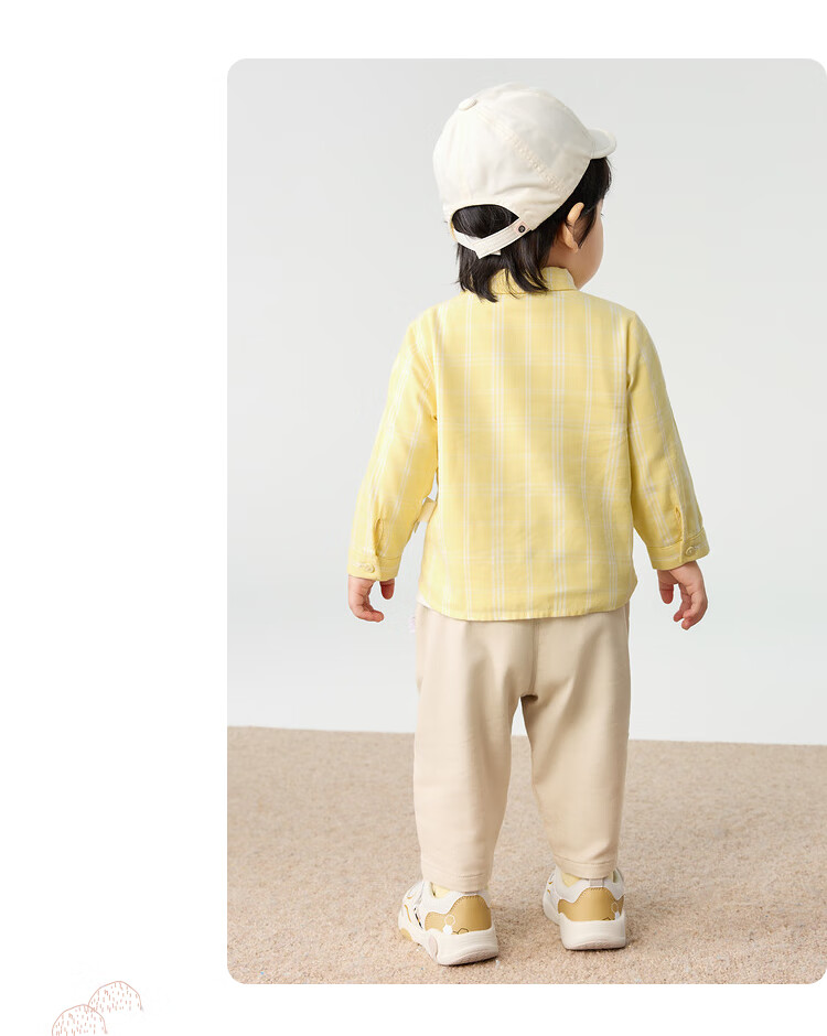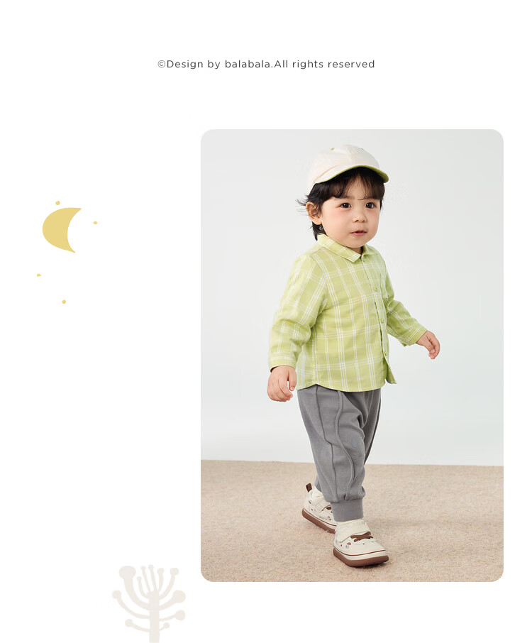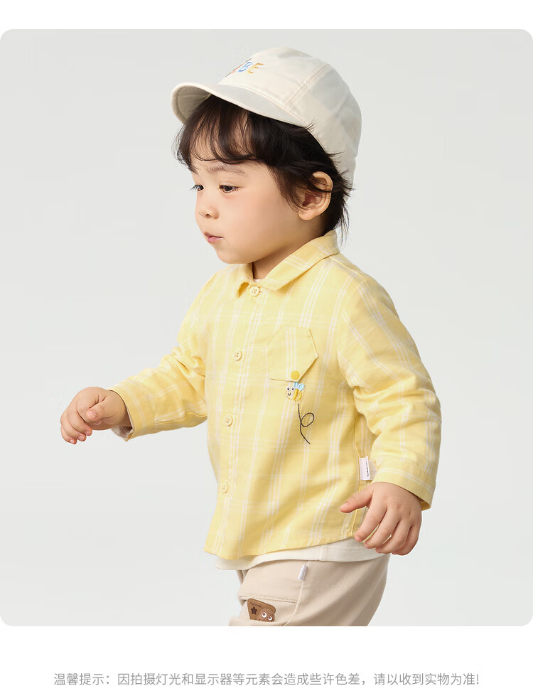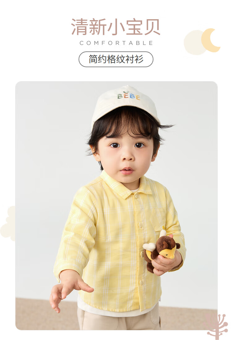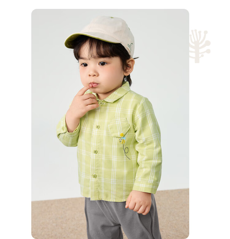 Balabala baby shirt long-sleeved baby top thin autumn clothing literary boys and children yellow green 41122 73cm