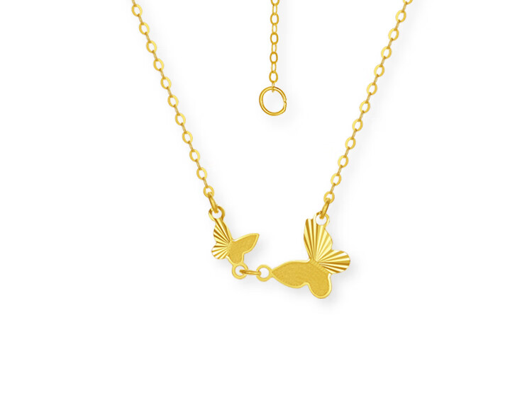 Saturday Blessing Yellow 18K Gold Necklace for Women Butterfly Pendant Colorful Fashion Accessories for Girls 40+5cm Tail Chain