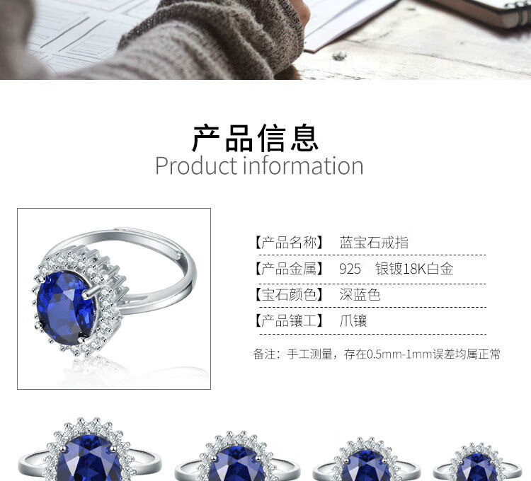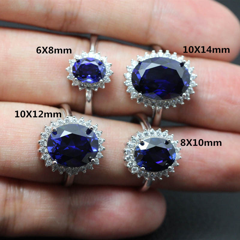 Xingtang Princess Diana Sapphire Ring Women's Silver Live Mouth Classic Dark Blue Colored Gemstone Jewelry Tanzanite Picture Color 14mm Main Stone (10X) 1