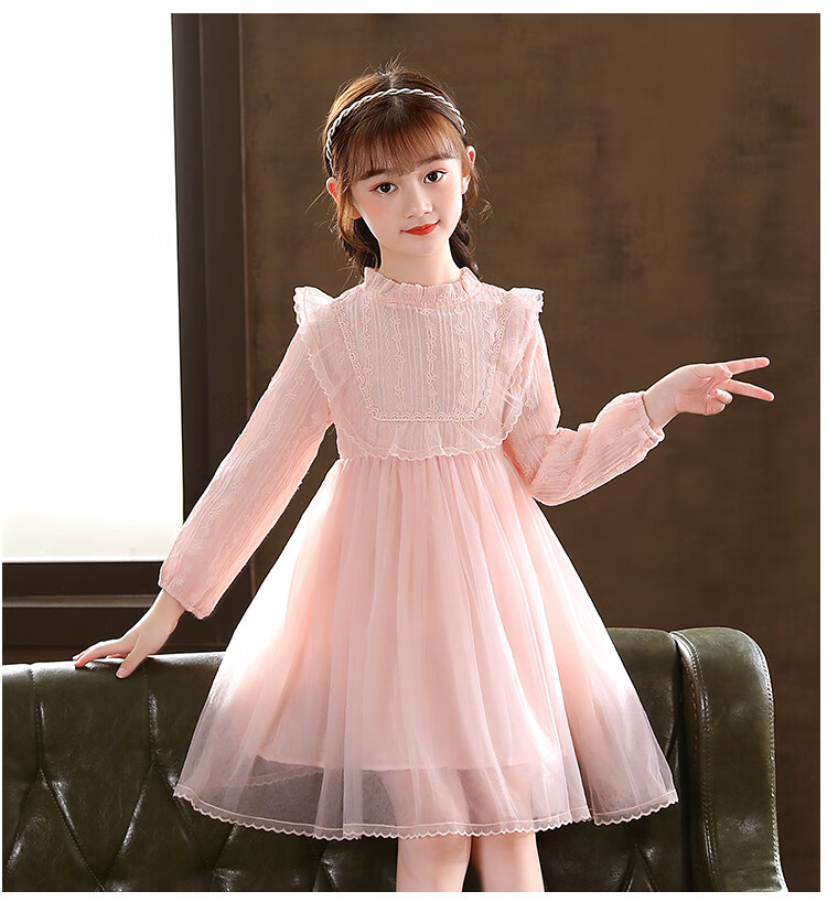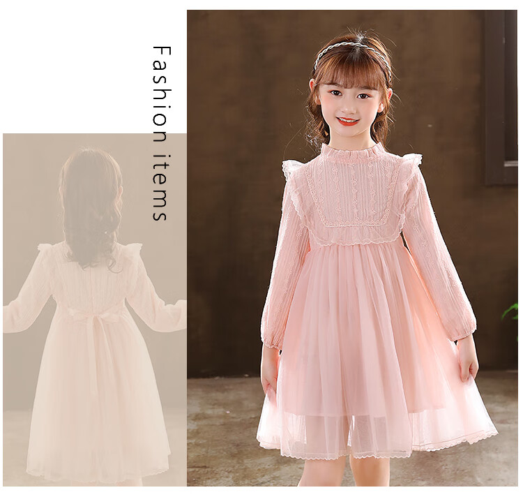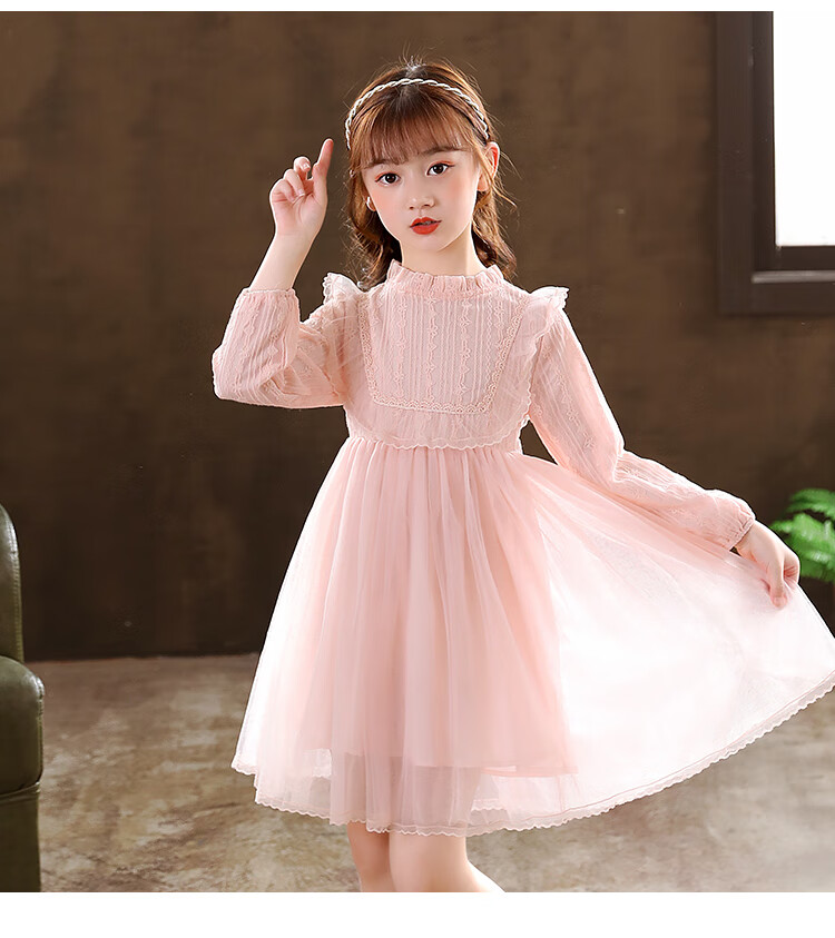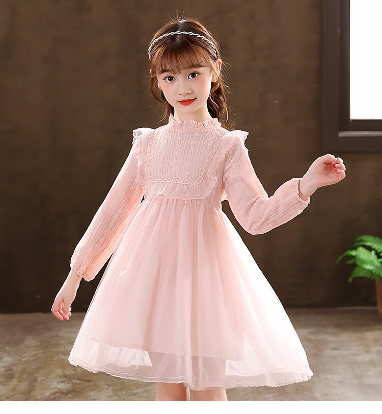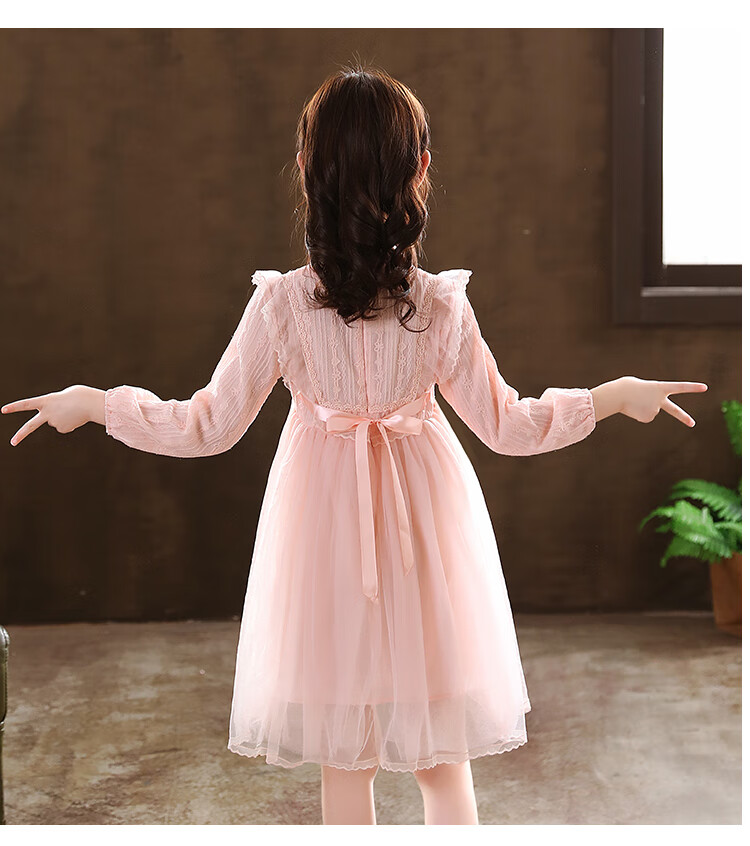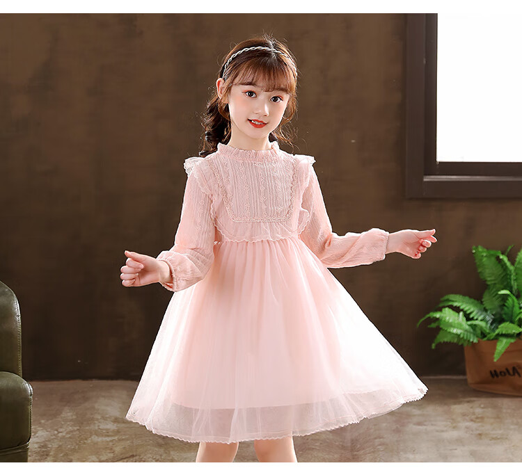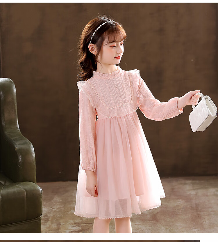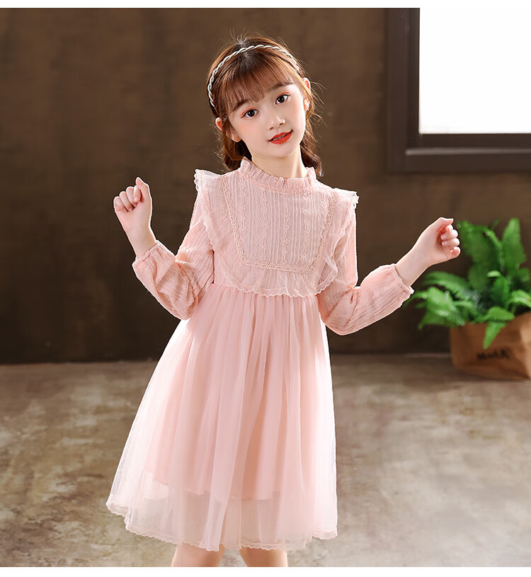 G.duck little yellow duck girls dress spring and autumn new spring and autumn little girl spring and autumn princess dress spring children's dress pink 140 cm