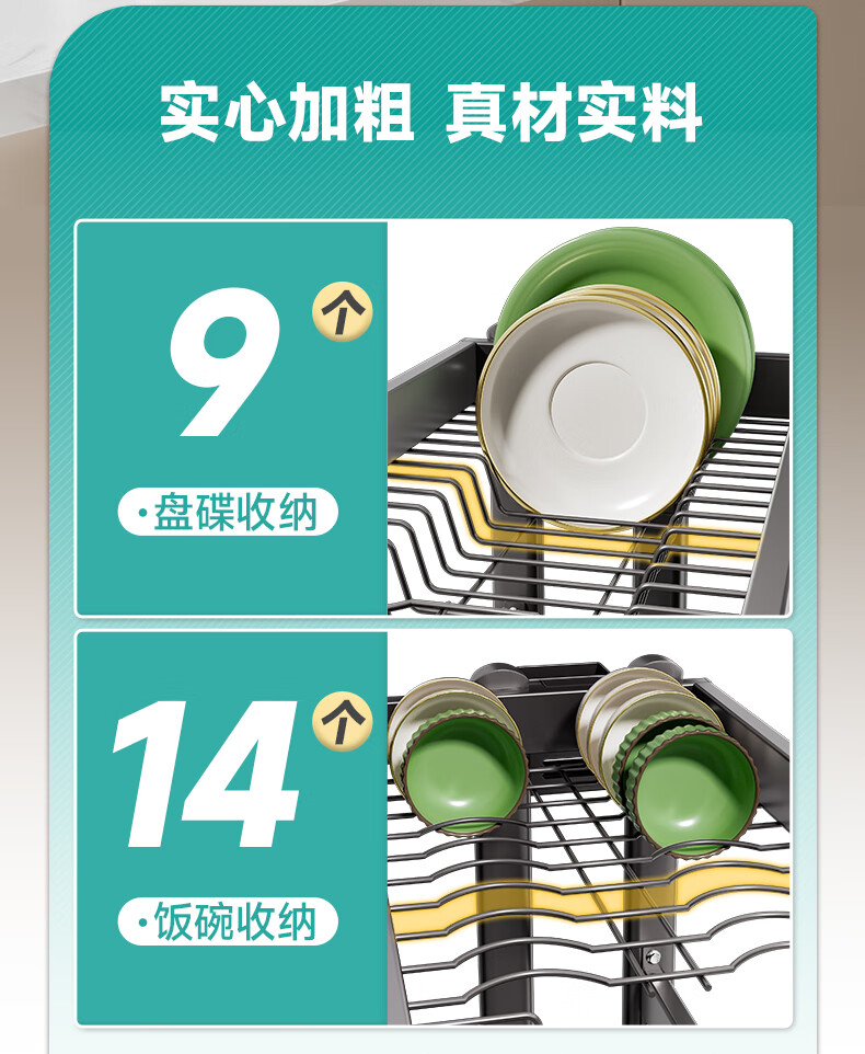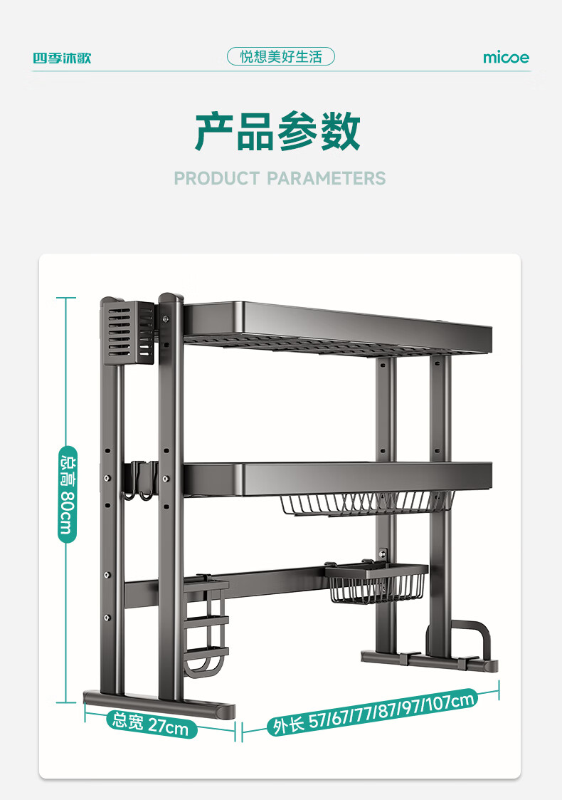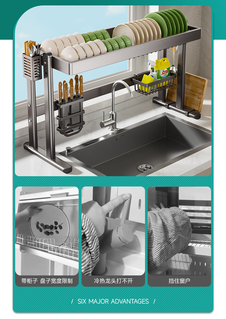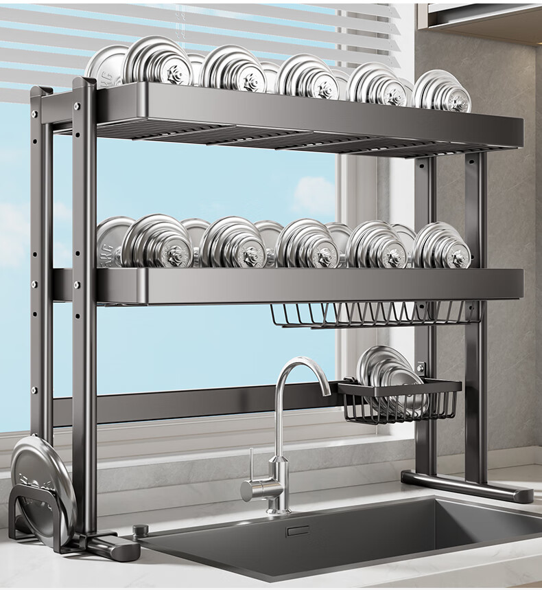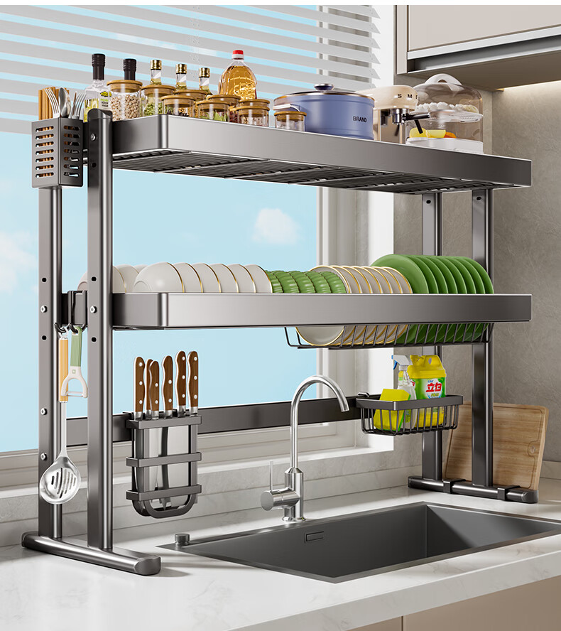 Four Seasons Muge Kitchen Storage Rack Countertop Sink Drain Basket Dishes Knife Chopping Board Chopstick Barrel Storage Pool Kitchen Storage Rack Thickened Gun Gray Double Layer 85 Long Complete Set