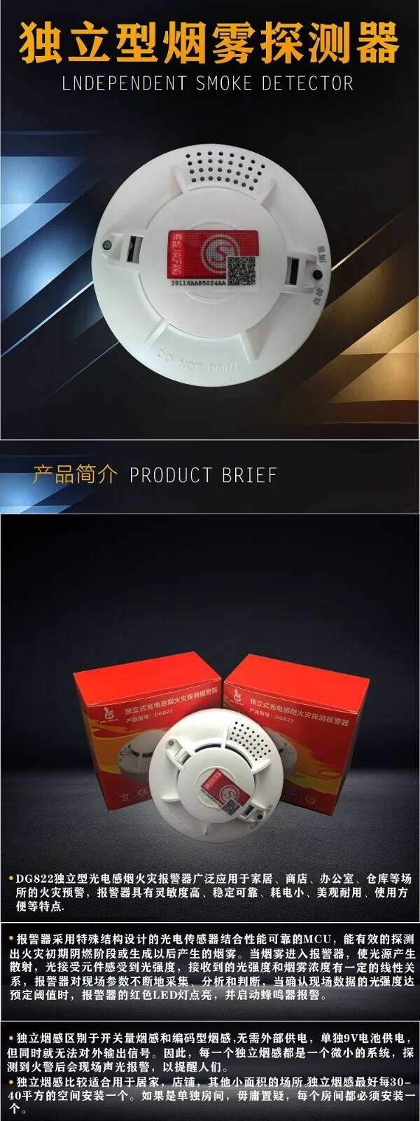 Independent photoelectric smoke fire detection alarm smoke detector smoke fire induction commercial NB networked smoke detector 9V battery powered independent DG822