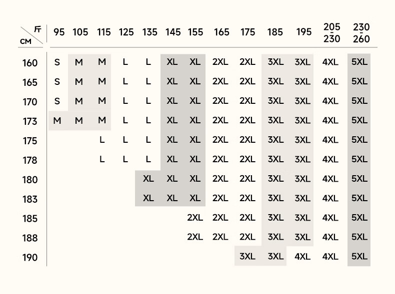 China (cm) 160-165/84-86 165-170 / 88-90 167-172 / 92-96 168-173 / 98-102 170-176 / 106-110
