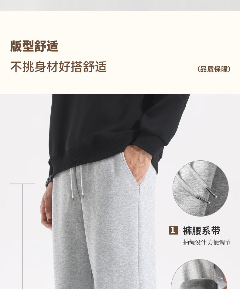 MINISO straight-leg pants for men spring and autumn new solid color trendy drape sports casual pants and sweatpants for men loose and versatile trousers black (solid color) XL 180 (weight 140-160Jin Jin is equal to 0.5 kg)