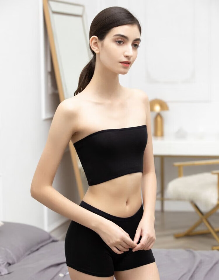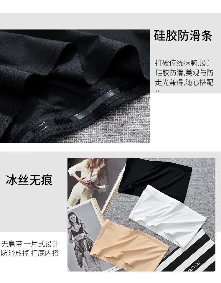 Modal tube top one-piece ice ribbon non-slip pad to cover the chest inner layer and strapless bra for girls to prevent exposure in summer. Ice silk upgraded version (with non-slip silicone strip) white