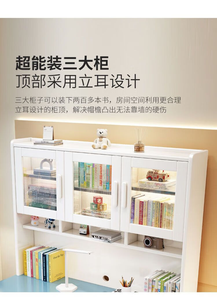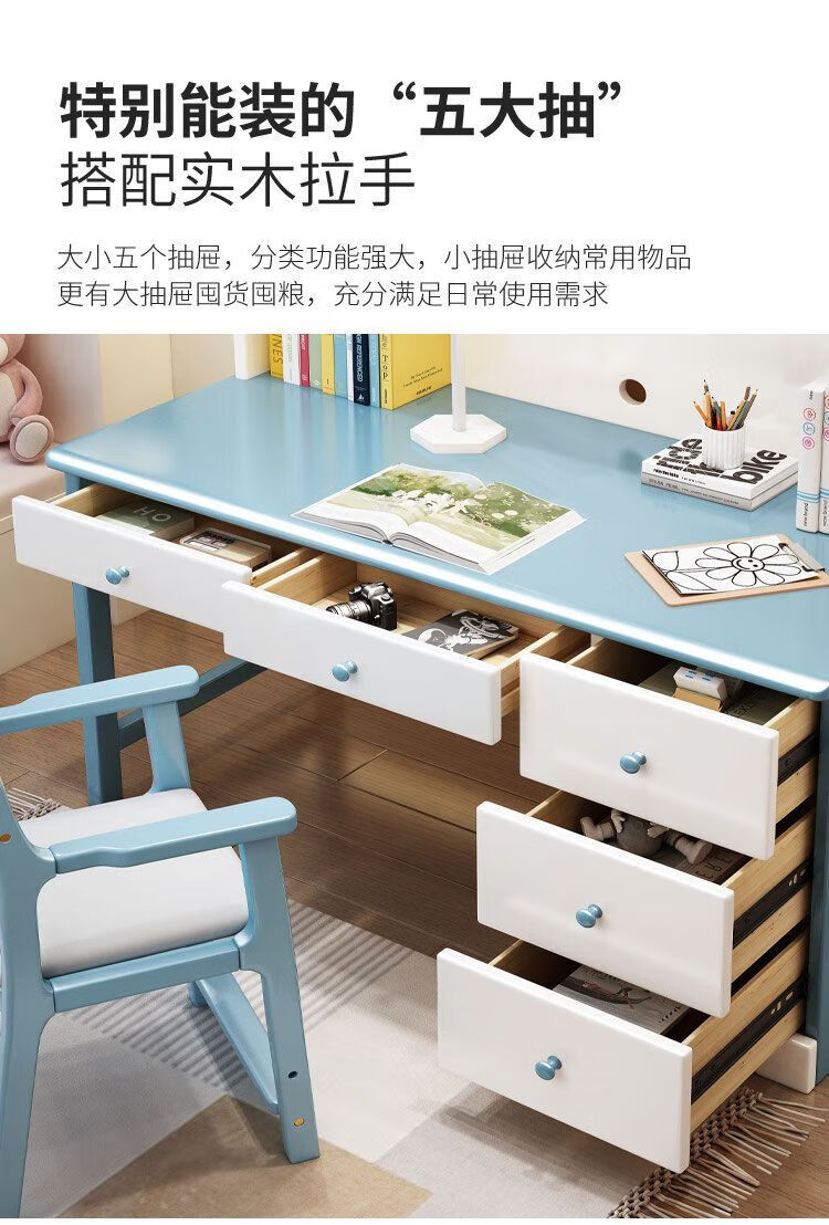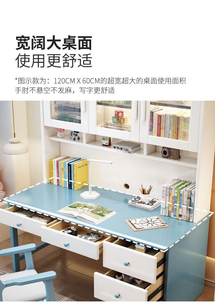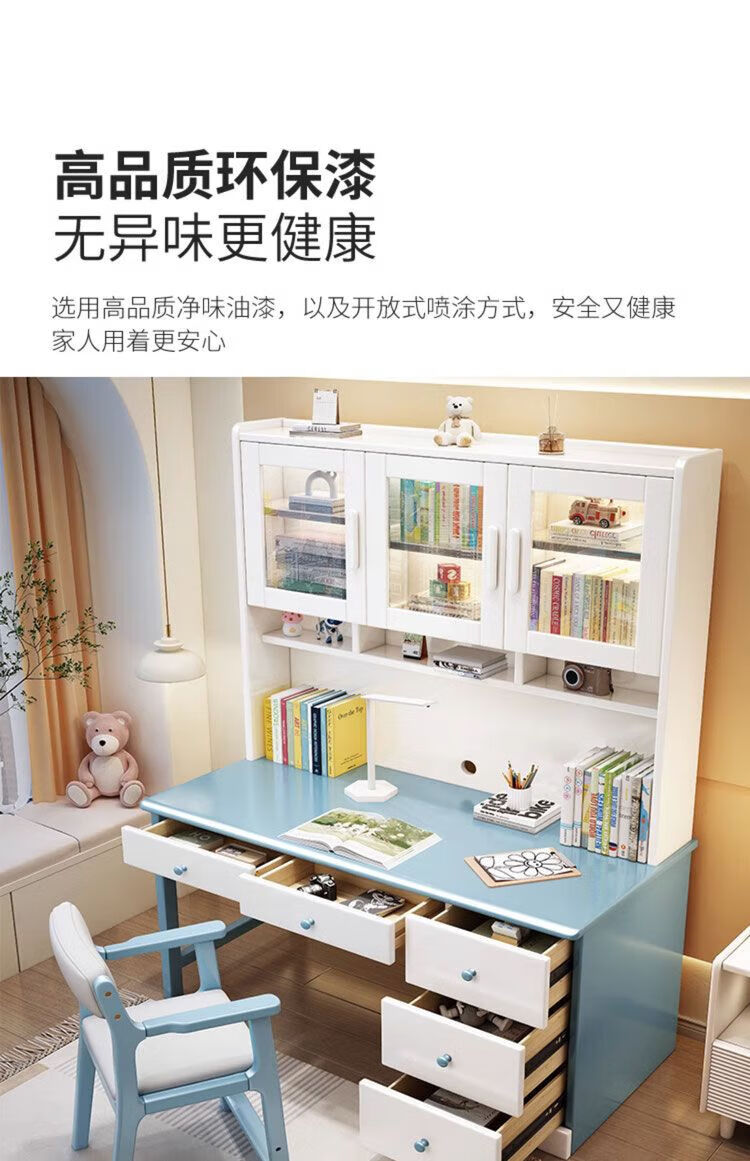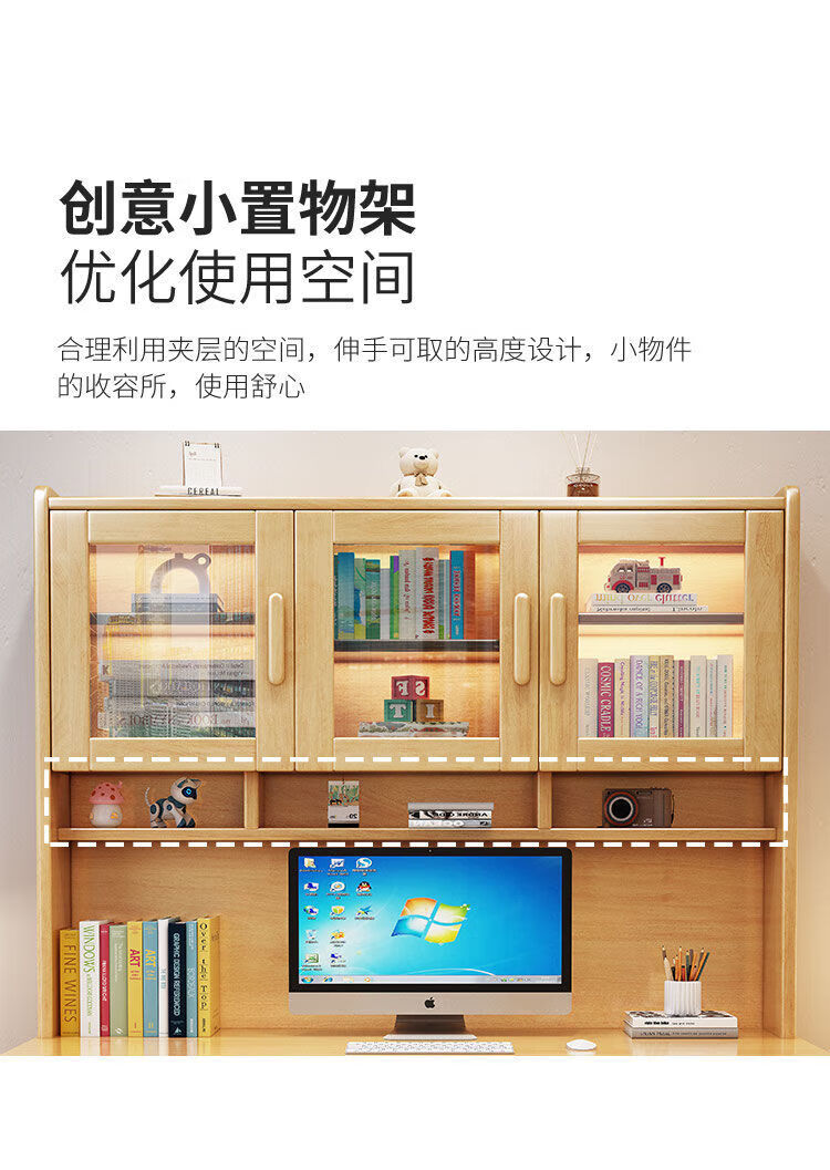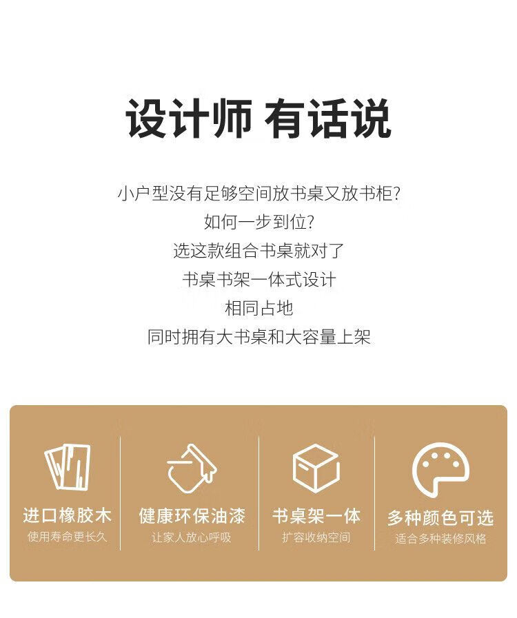 Solid wood desk computer desk bookshelf bookcase integrated combination children's study table and chair bedroom student writing table home YAYJ616# solid wood color single table 100x60x186cm