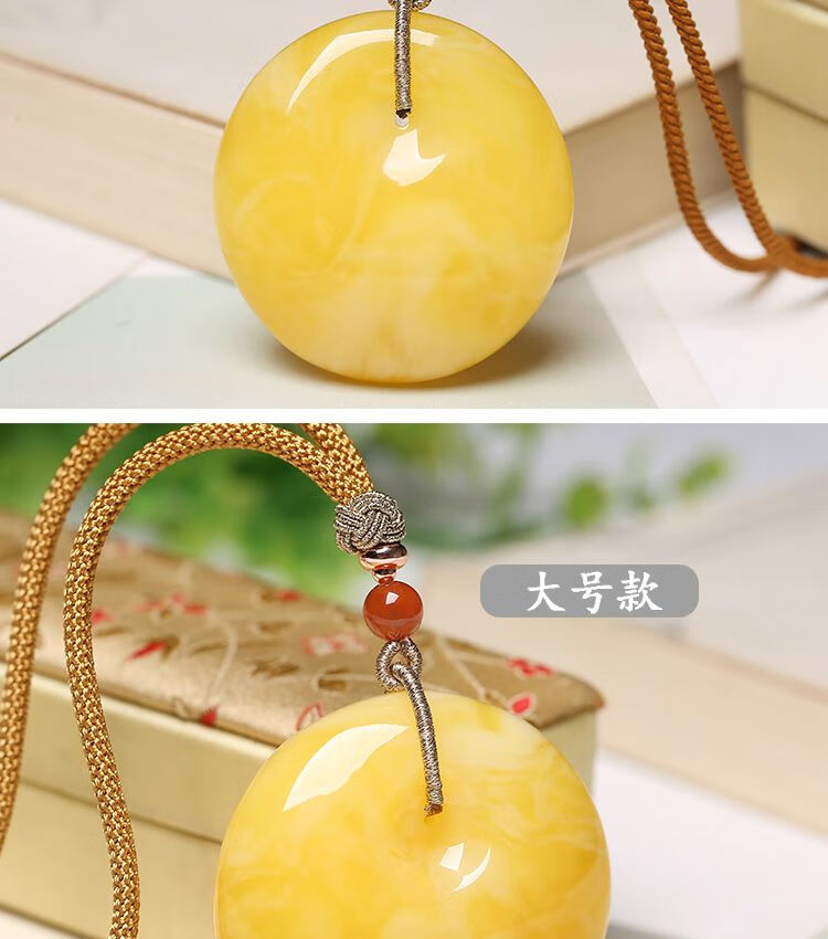 Jinshitong natural chicken fat yellow beeswax pendant safety buckle male and female couple original ore amber princess buckle necklace pendant beeswax princess buckle small model (36*36)